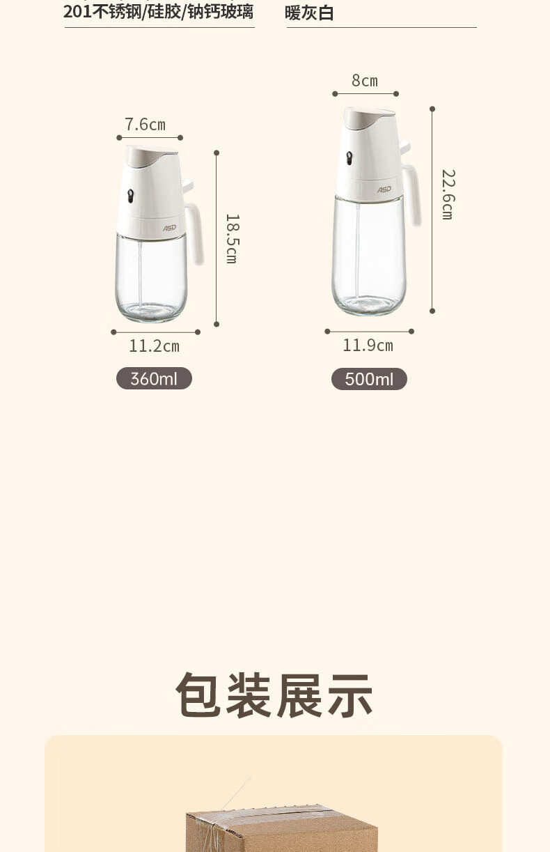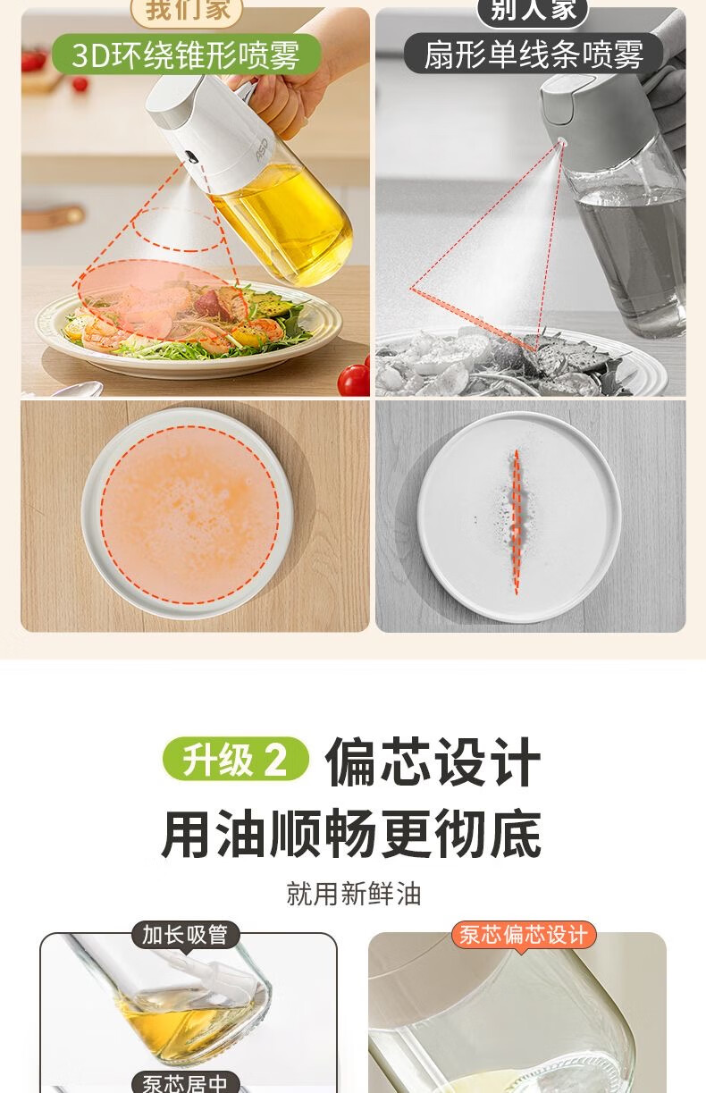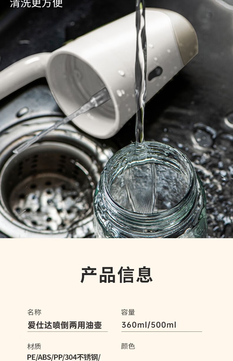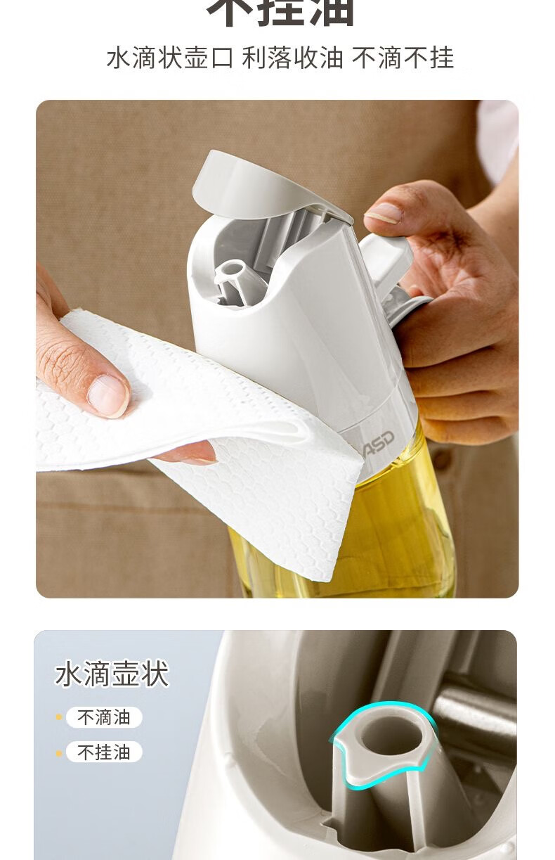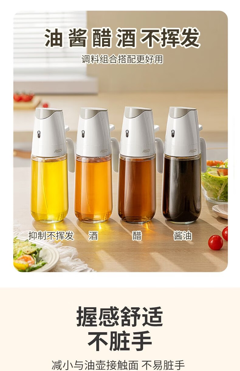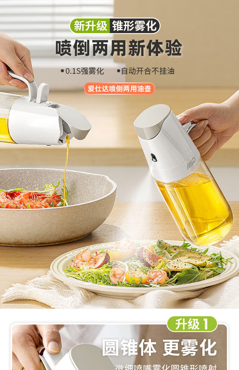 爱仕达油壶喷雾倒油喷油一体两用雾化食用油玻璃油壶厨房家用控油不挂油