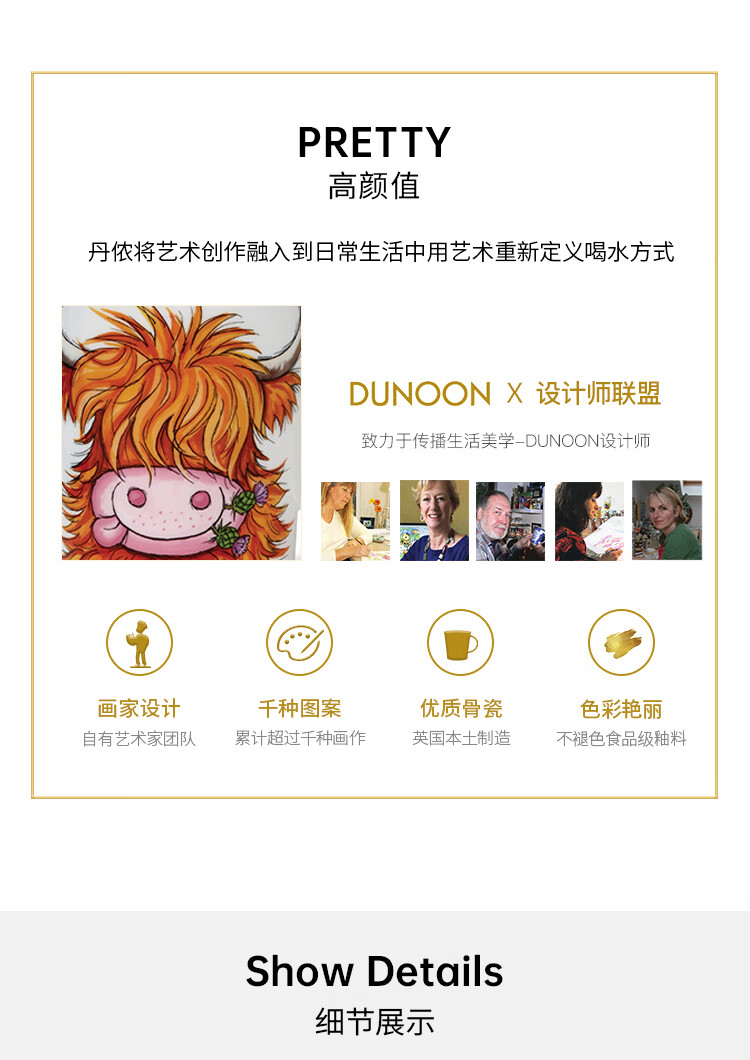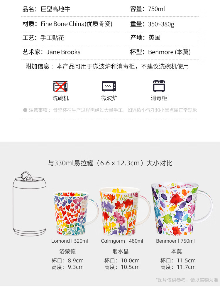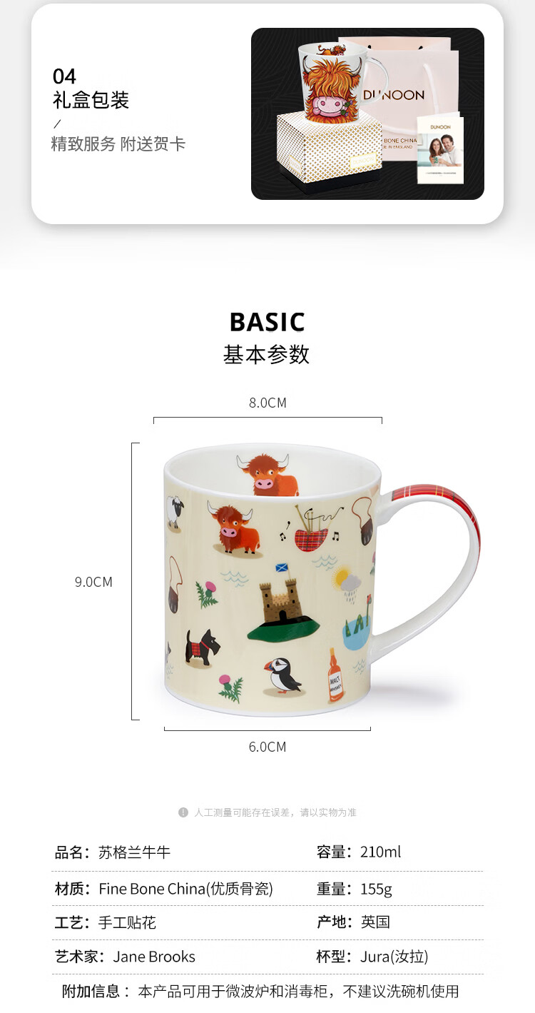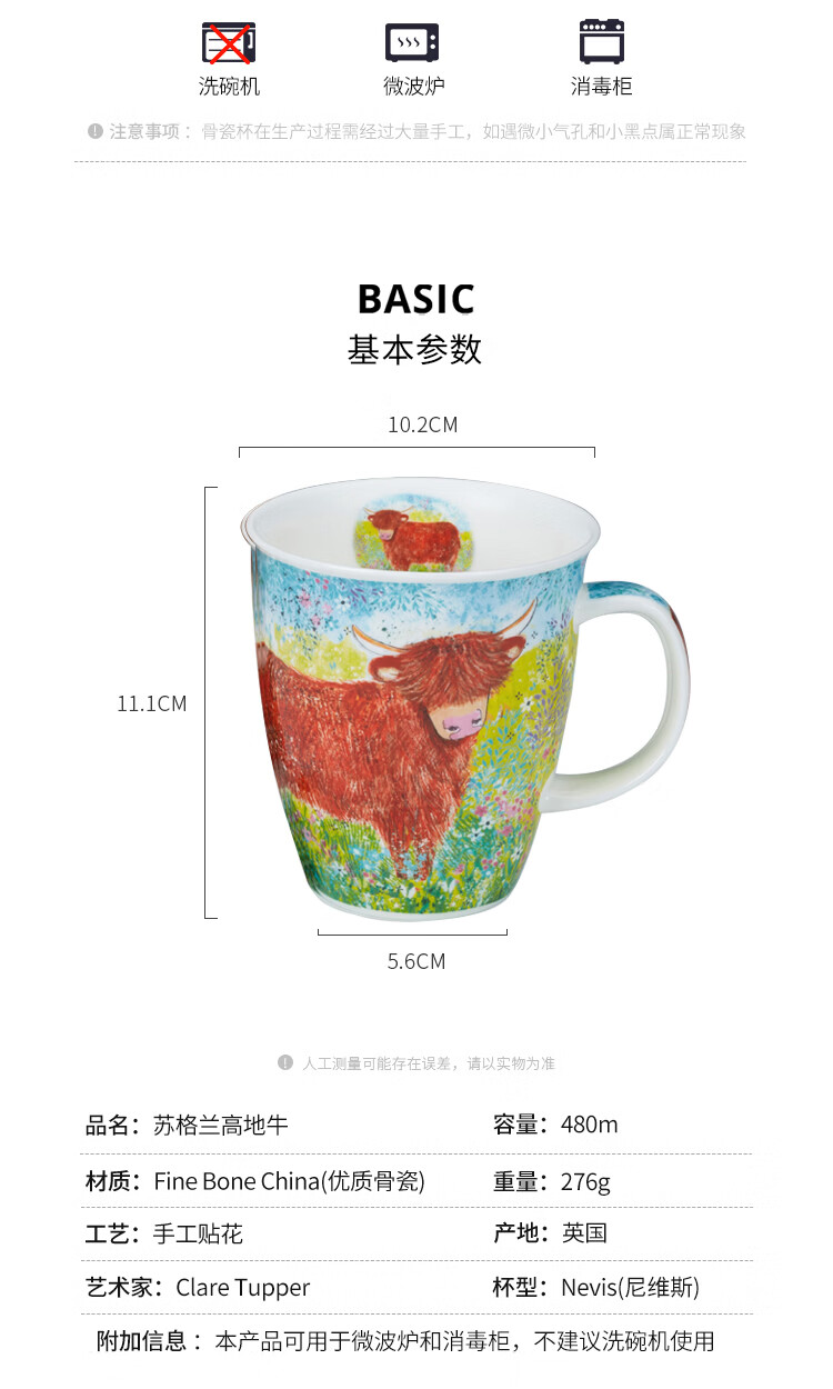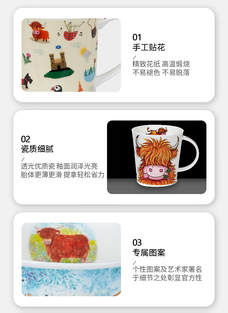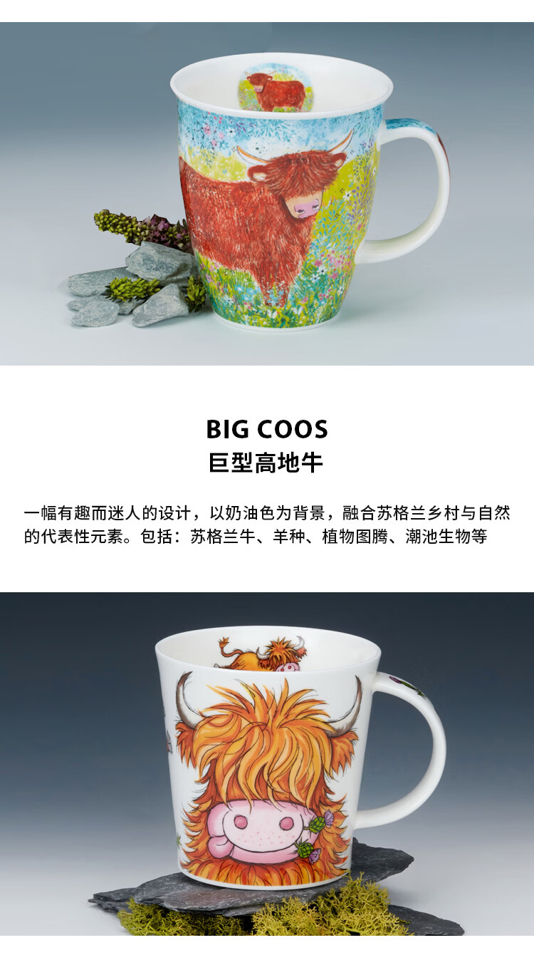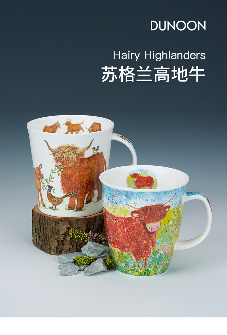 丹侬(DUNOON)骨瓷马克杯大容量英国杯子 苏格兰高地牛咖啡杯陶瓷牛奶杯牛牛杯 苏格兰高地牛 480ml