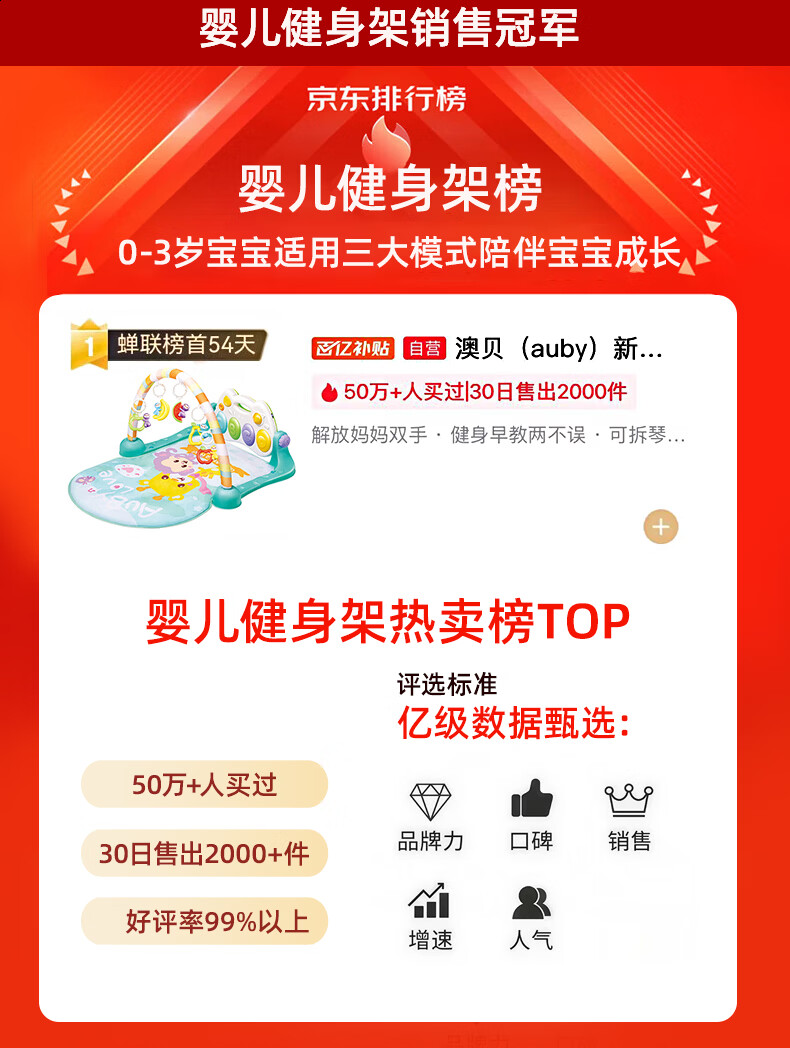 澳贝(auby)新生儿礼盒婴幼儿玩具好动小猴健身架宝宝脚踏踩钢琴见面礼物满月