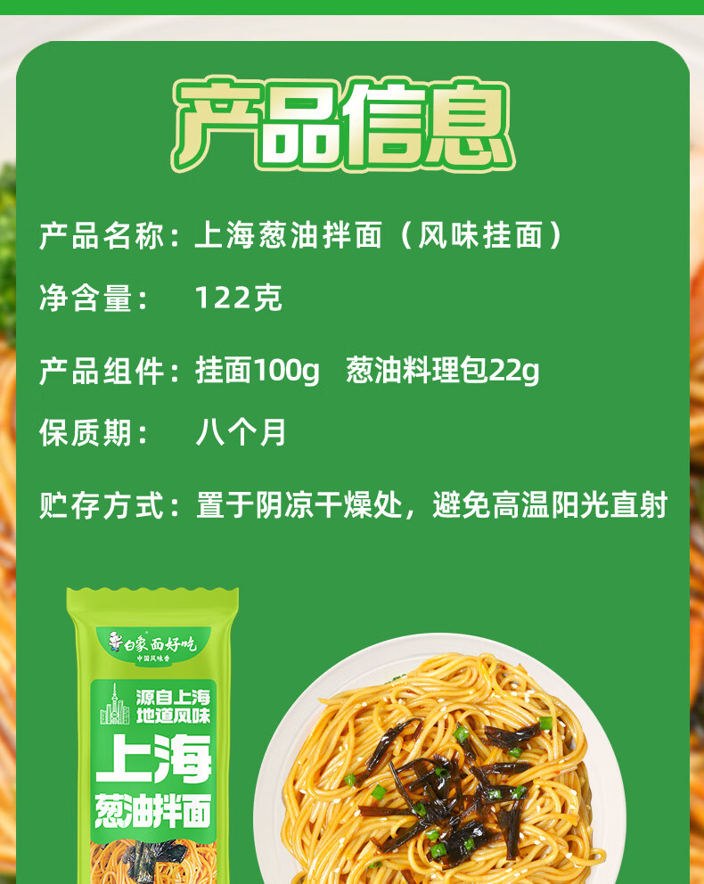 白象 葱油拌面122g*6包 【非油炸面条】上海风味方便速食面条
