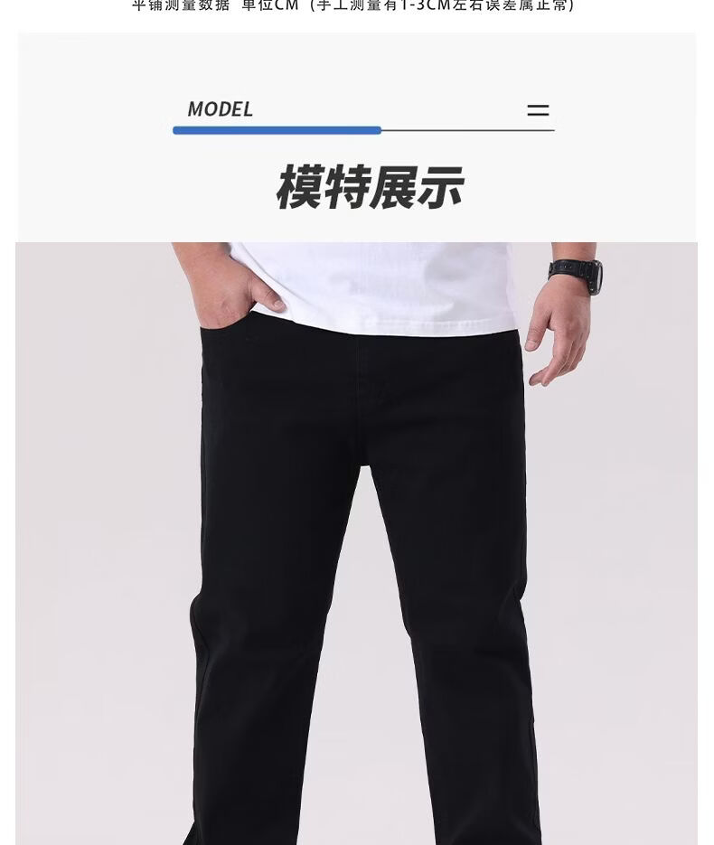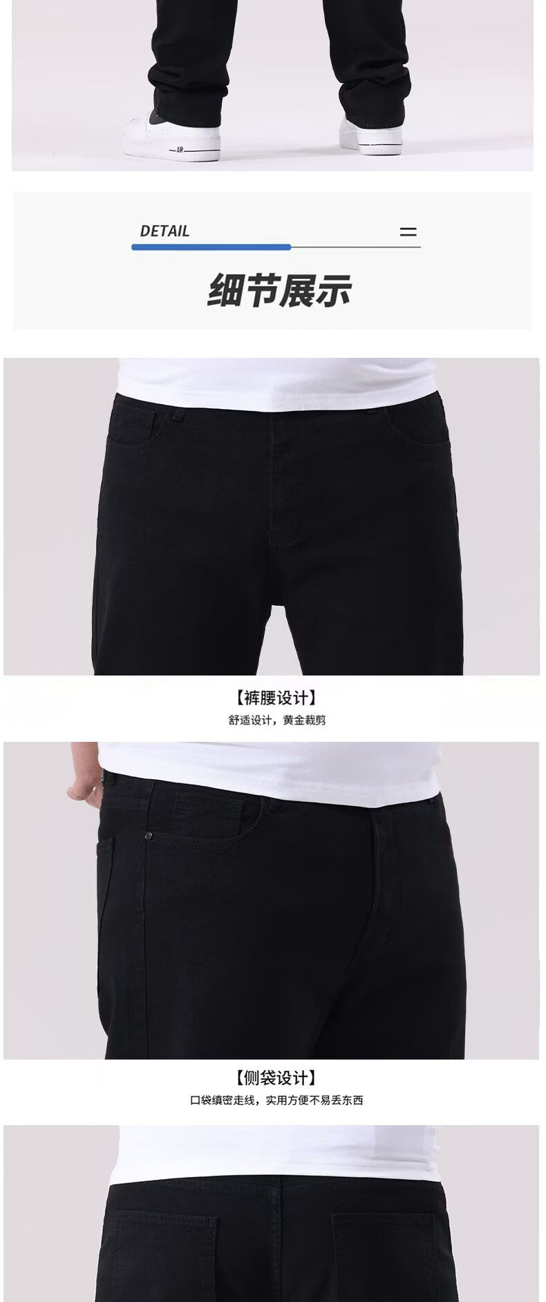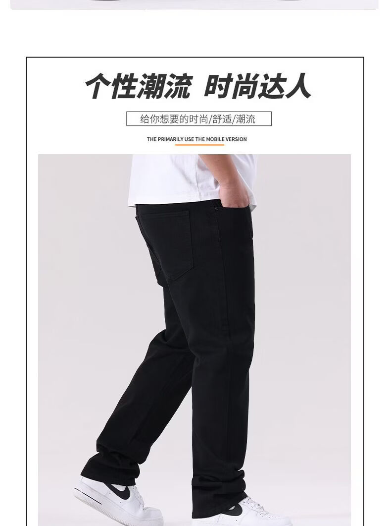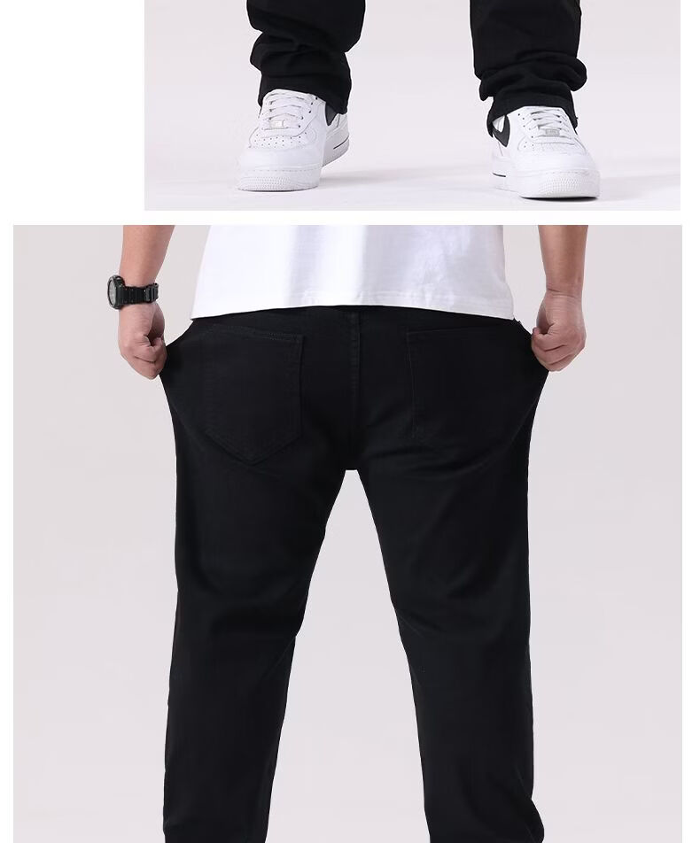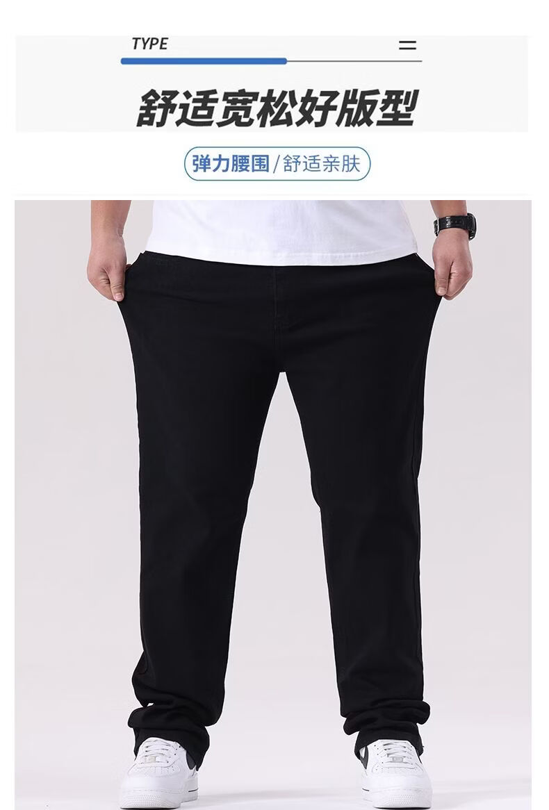 啄木鸟弹力牛仔裤男胖子加肥牛仔裤子肥佬加大码直筒休闲宽松男牛仔裤子 黑色 6XL
