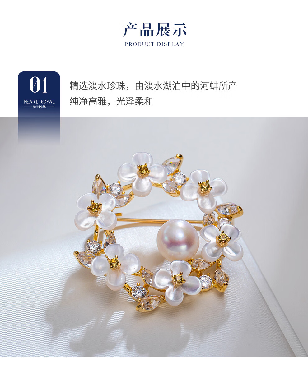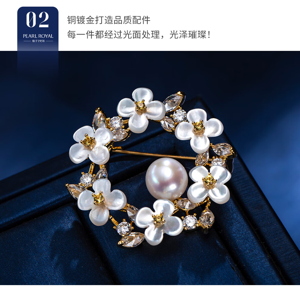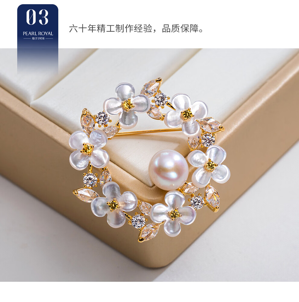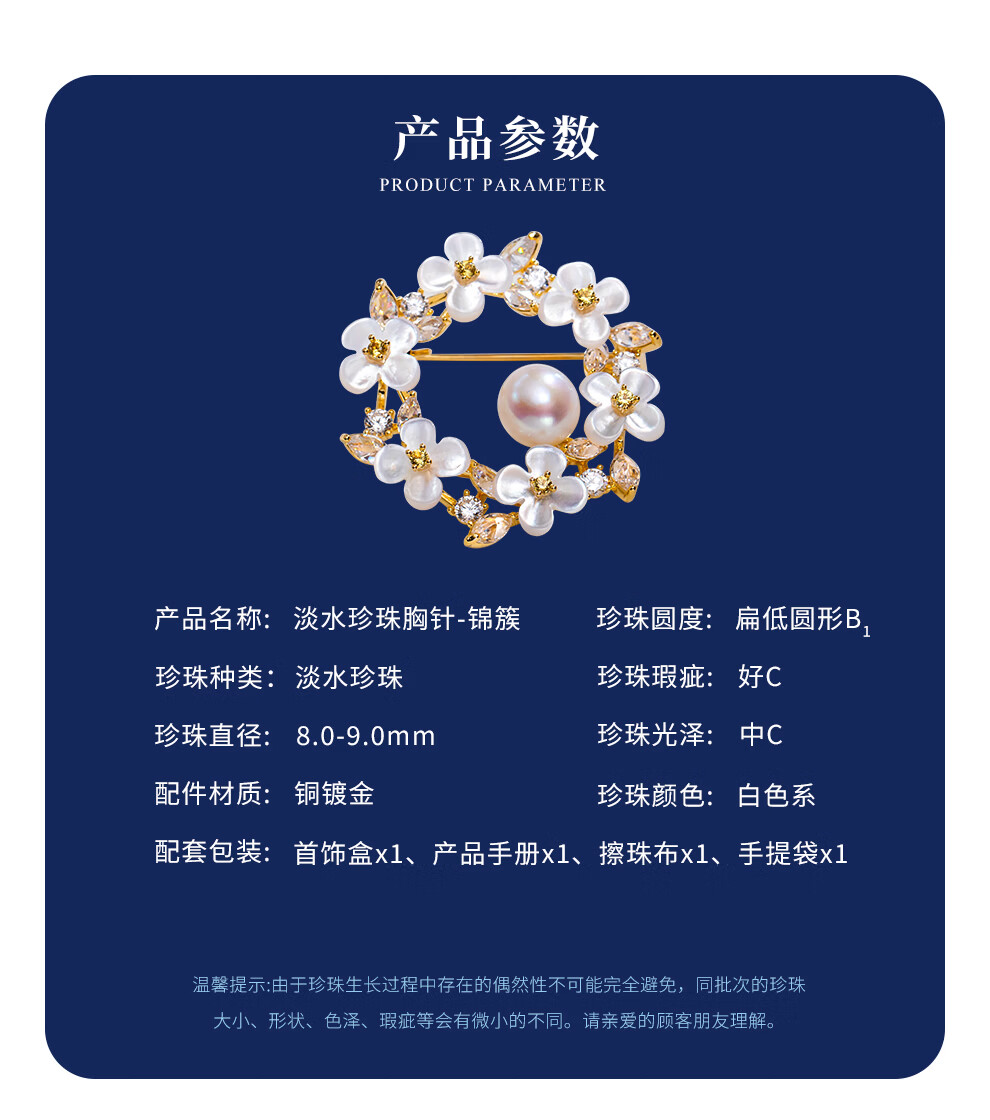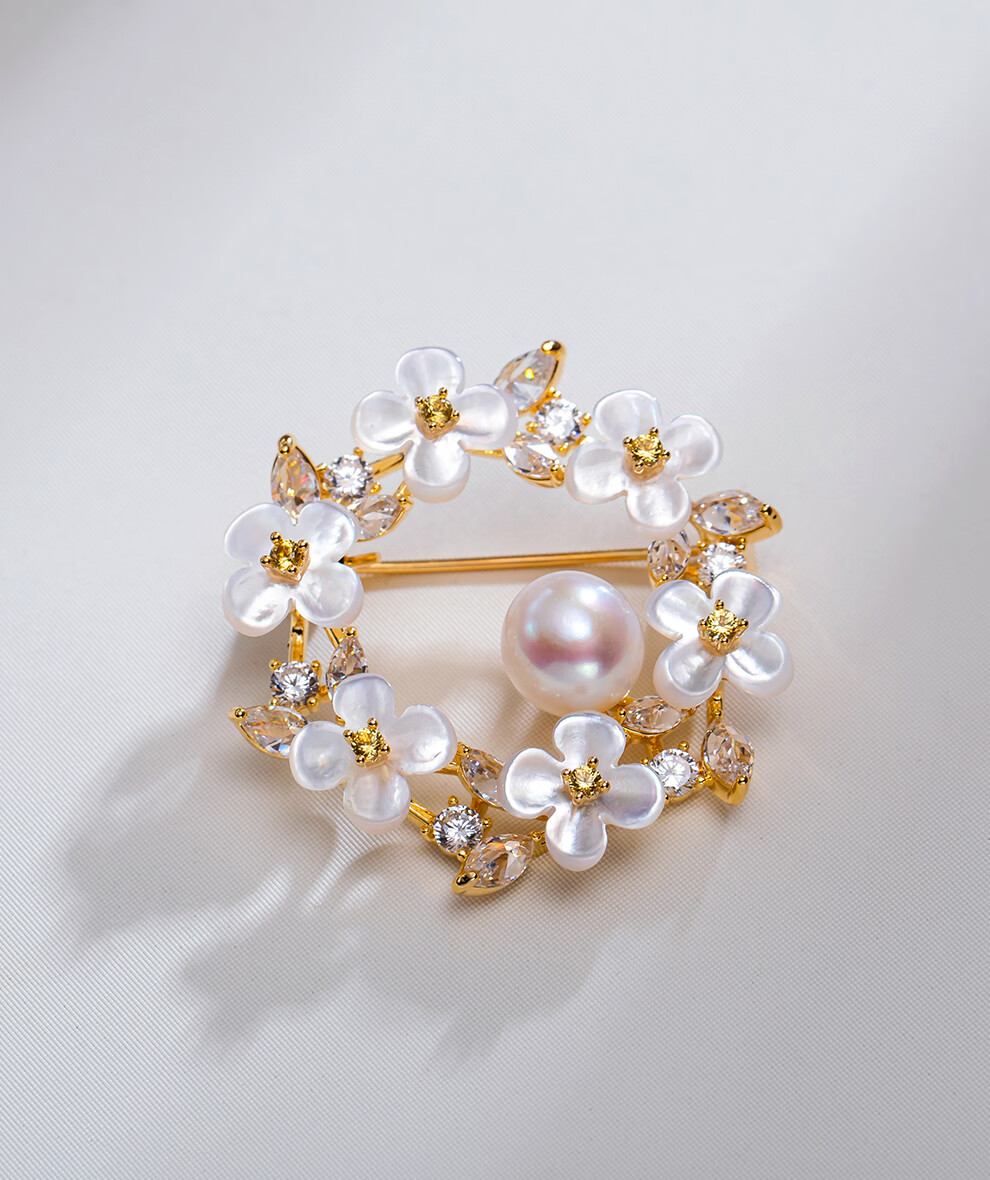 南珠宫锦簇淡水珍珠胸针精致优雅节日礼物送妈妈 8.0-9.0mm 淡水珍珠胸针