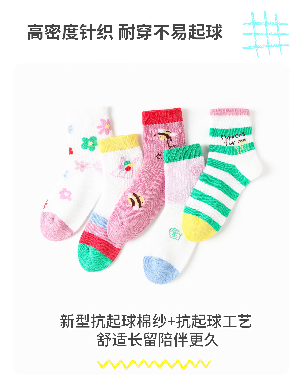 斑比女童袜子春夏款网眼透气棉袜中大童宝宝夏季无骨可爱儿童袜子 BB2615 春夏款儿童袜子 5双 0-1岁 建议脚码16码以内【12-14】