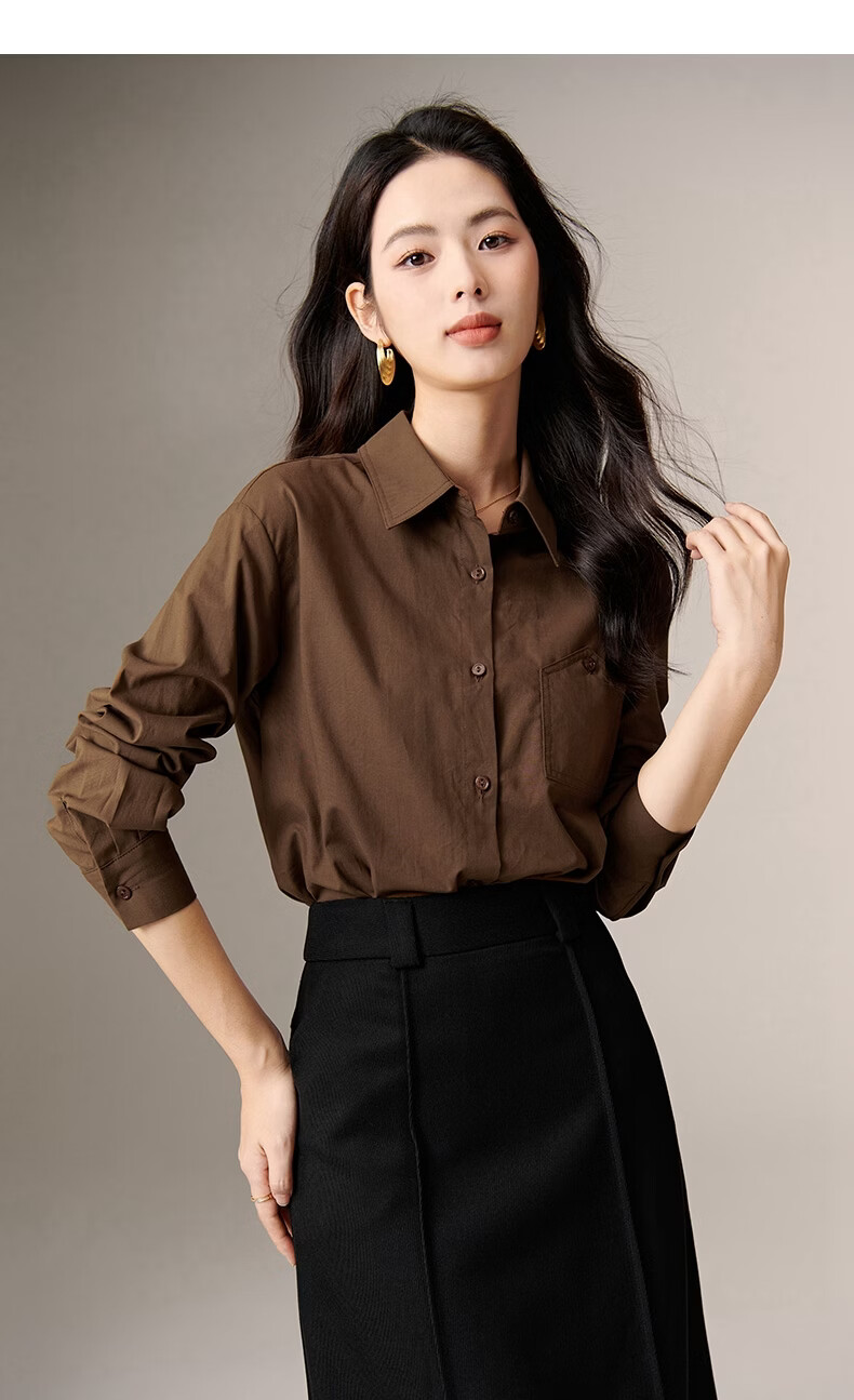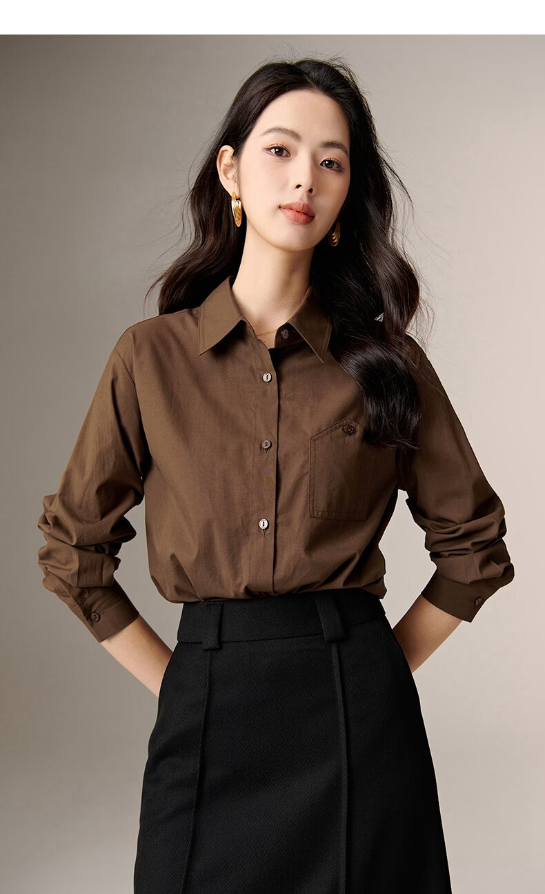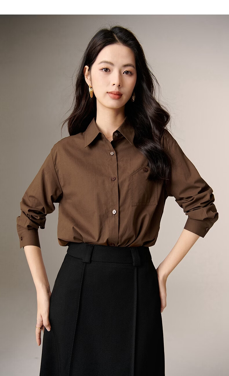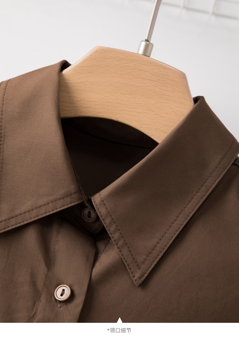 晚白100%纯棉衬衫女2026春款法式经典百搭职场通勤舒适显瘦大码衬衣 深咖色 XL