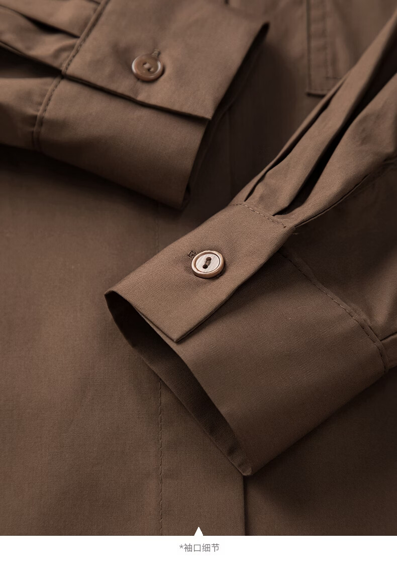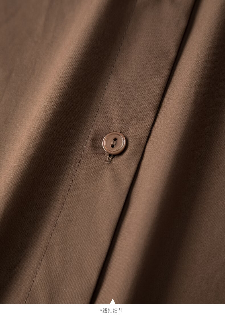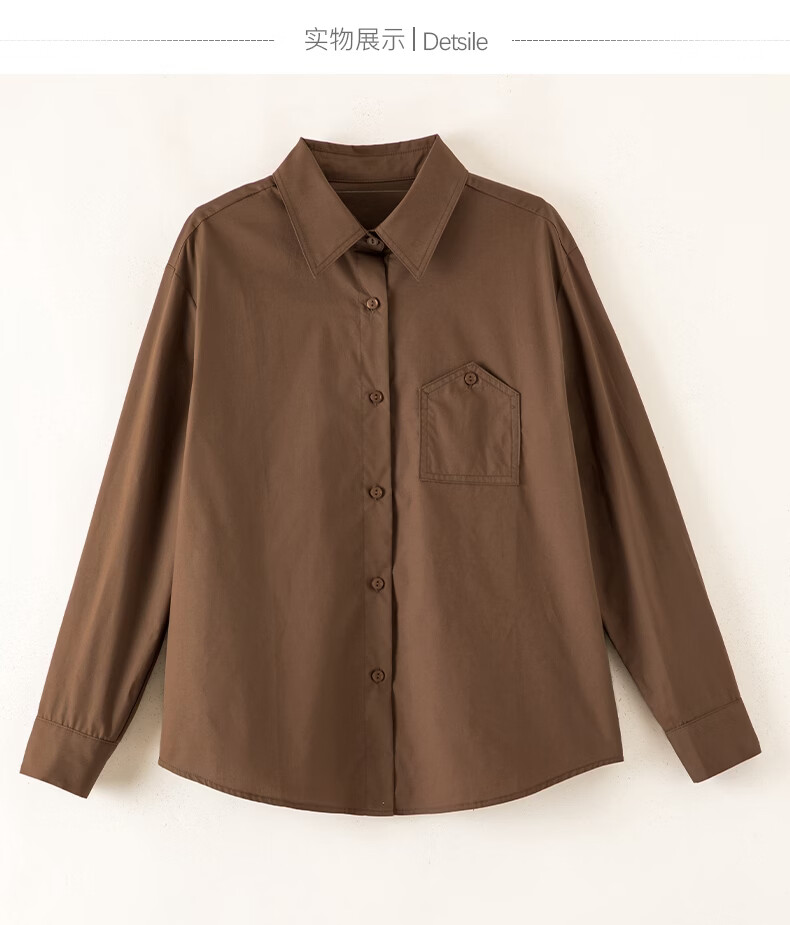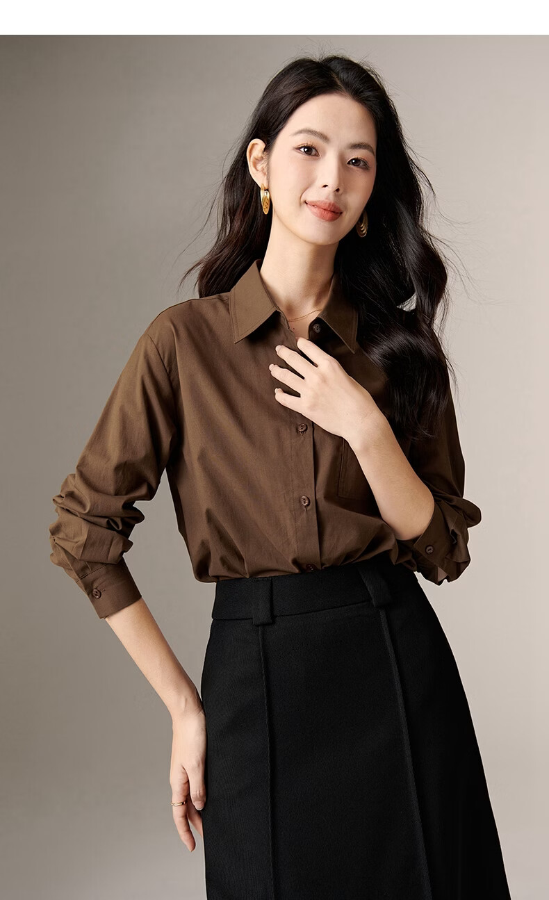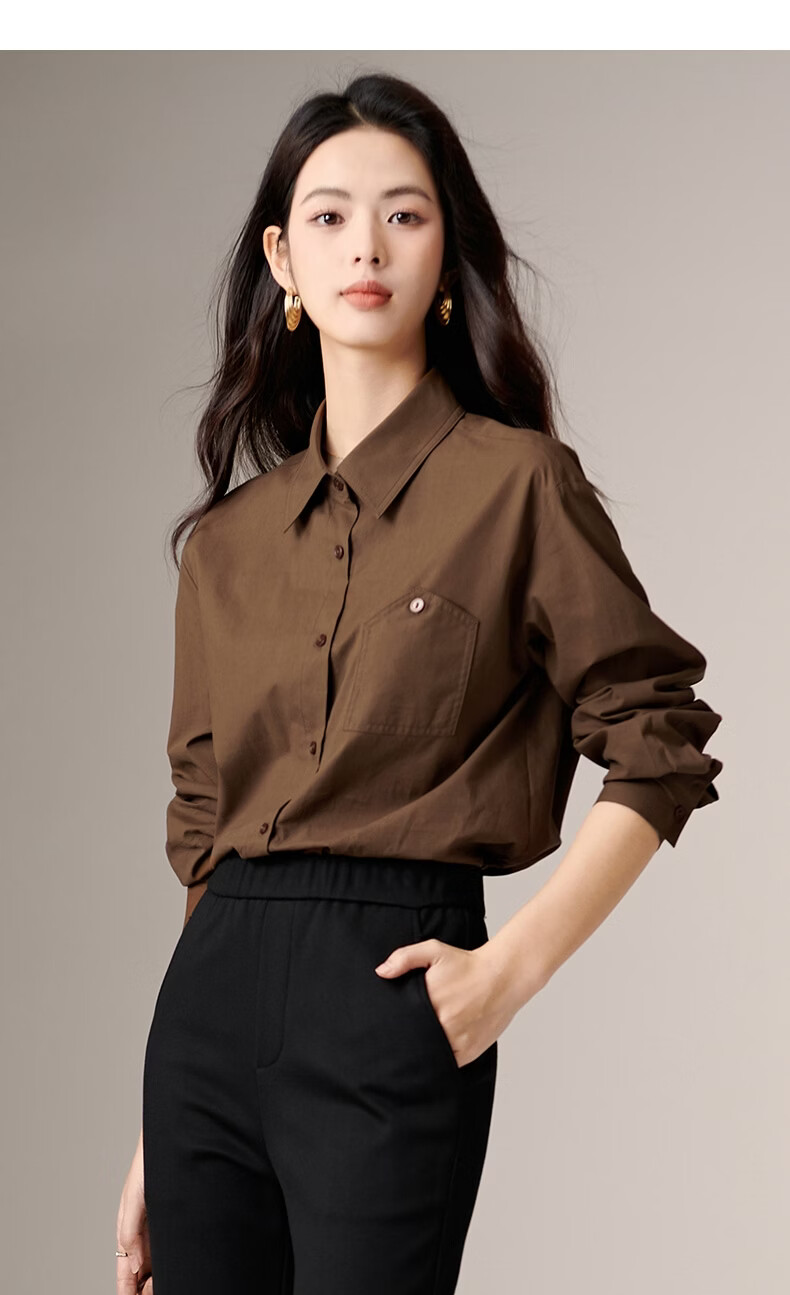 晚白100%纯棉衬衫女2026春款法式经典百搭职场通勤舒适显瘦大码衬衣 深咖色 XL