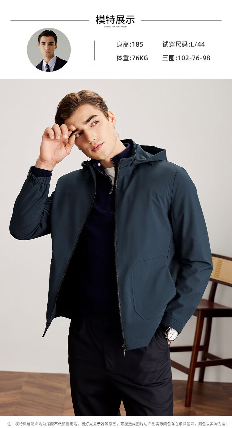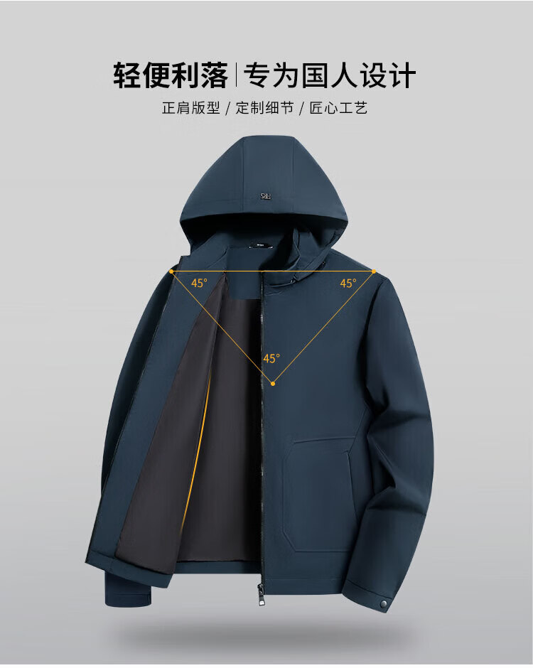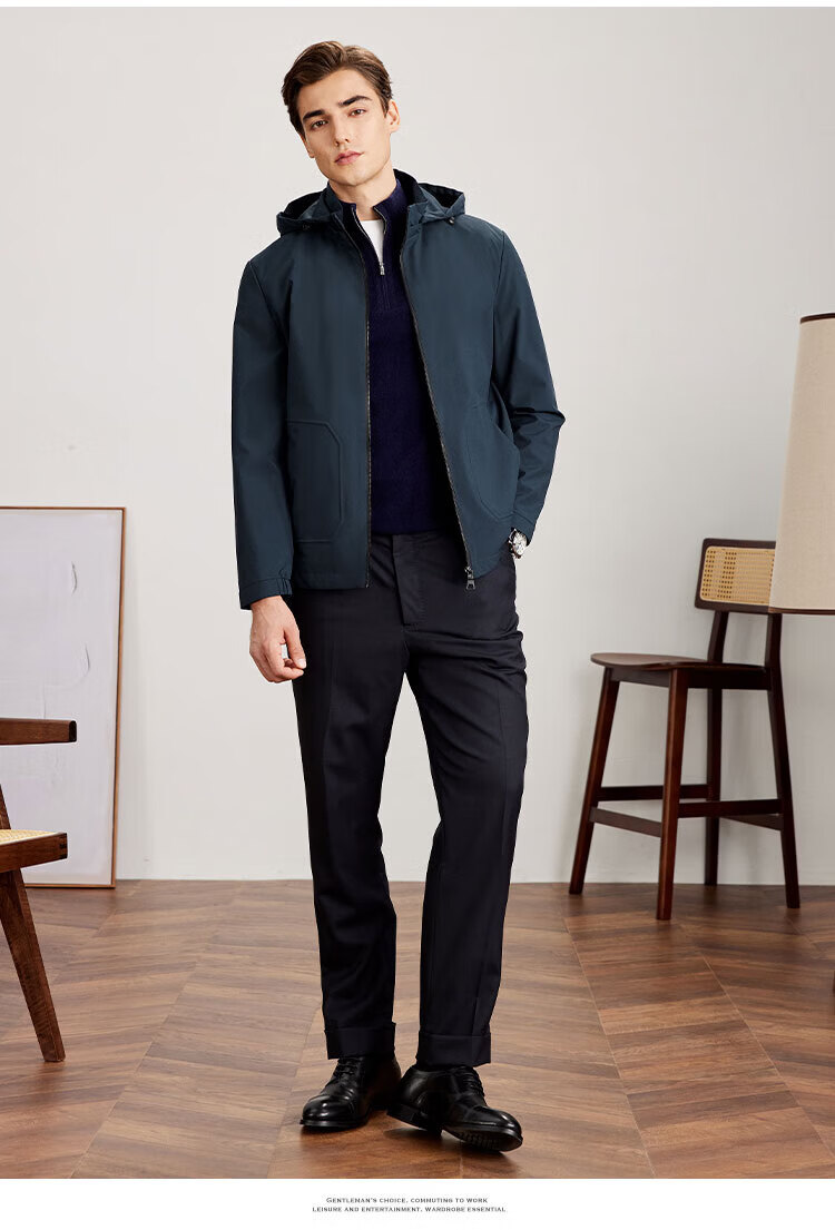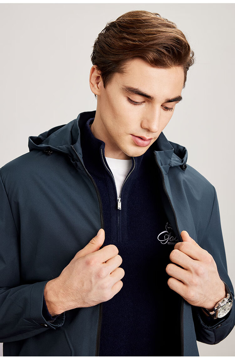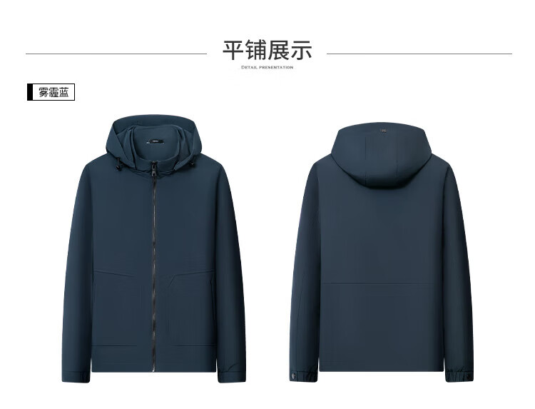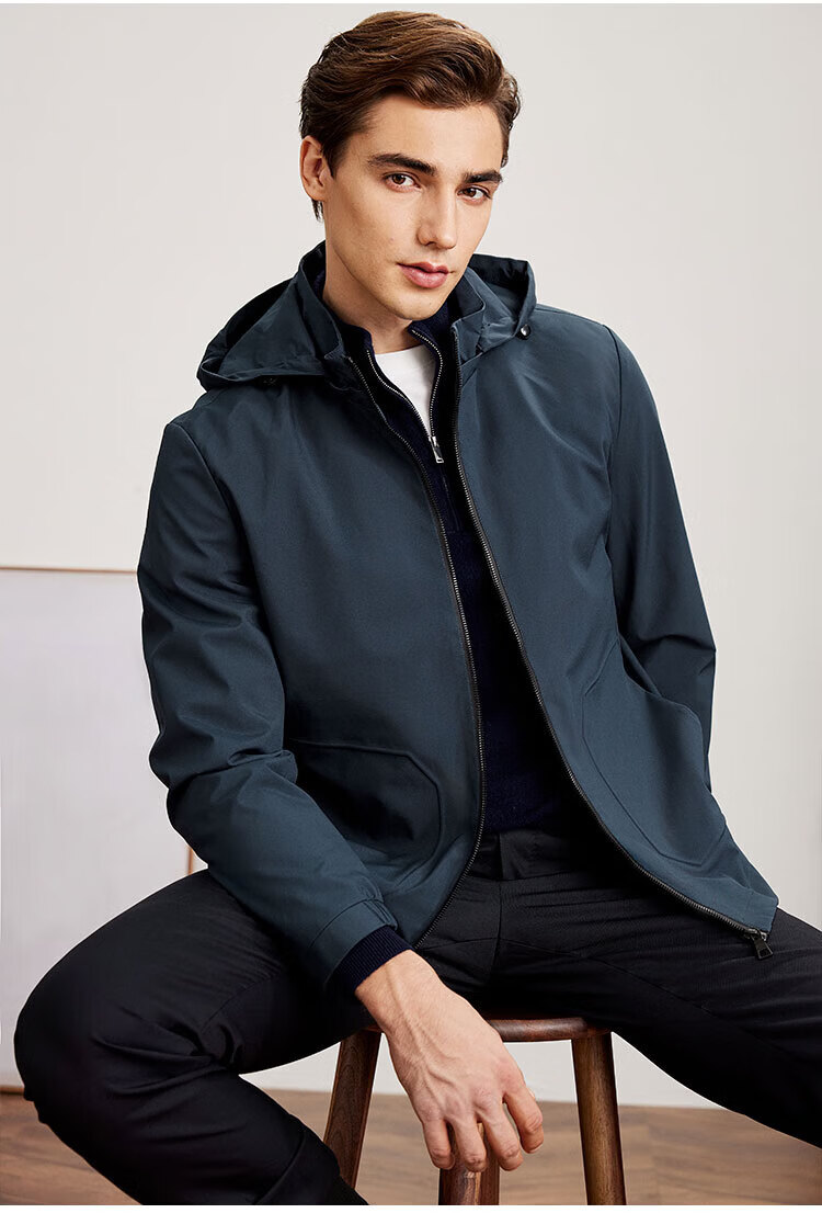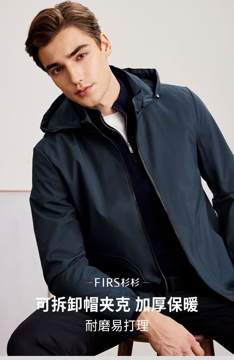 杉杉(FIRS)连帽夹克男春秋商务休闲工装上衣防风抗皱运动冲锋衣加厚保暖外套 雾霾蓝 M (170) 88A