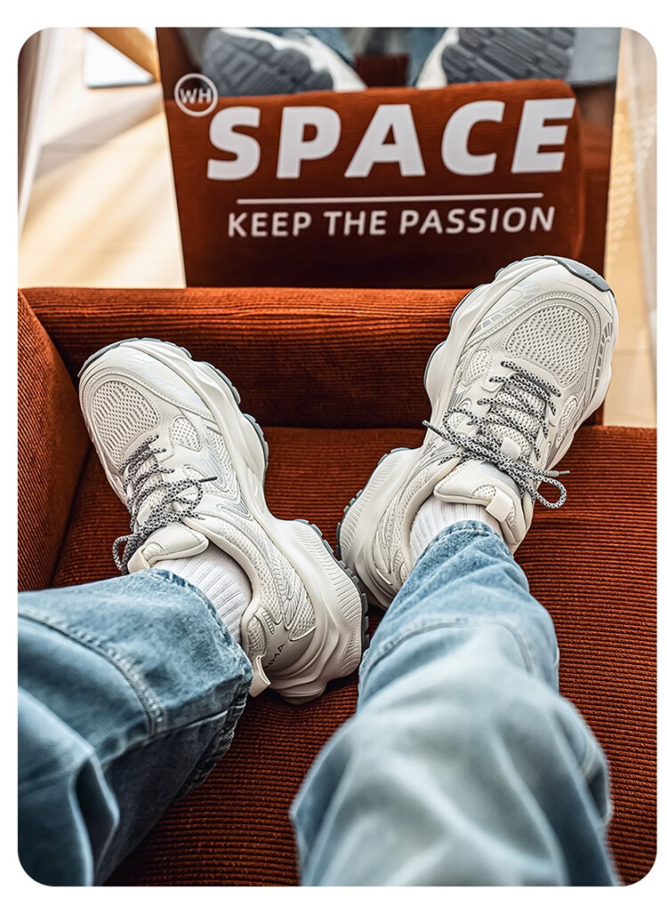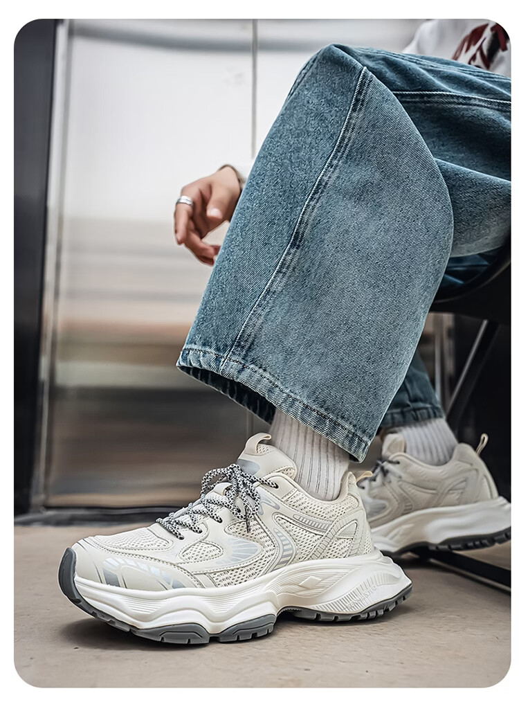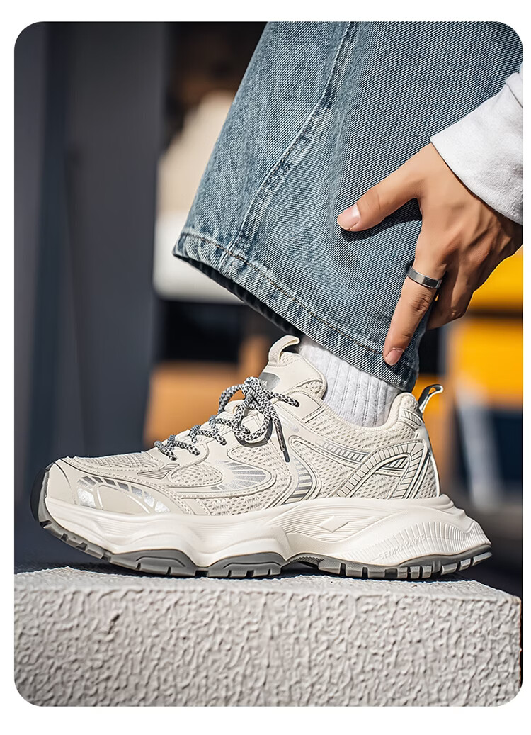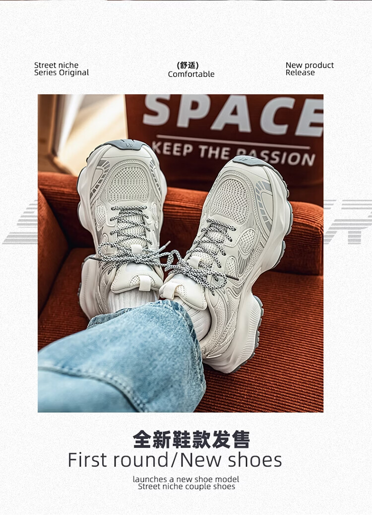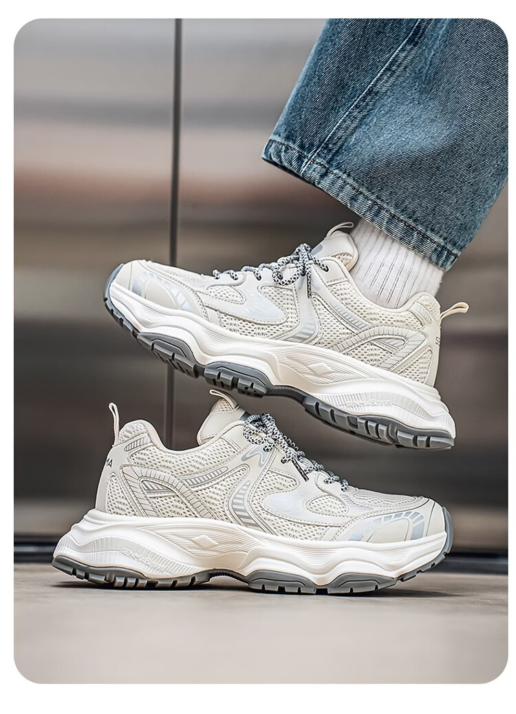 森馬运动鞋男青少年2026春季百搭潮流休闲网面舒适跑步小众设计老爹鞋 米色【基础款】 39 标准码数/现货秒发