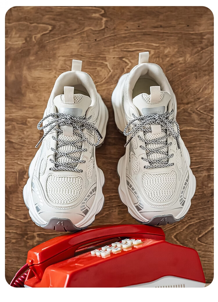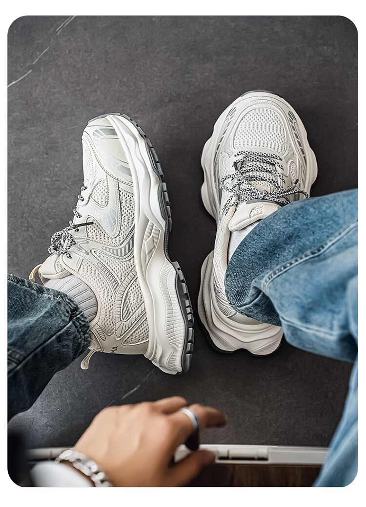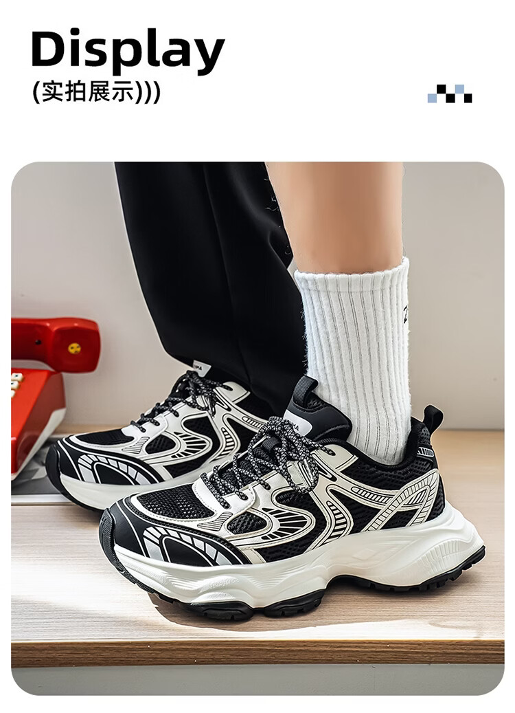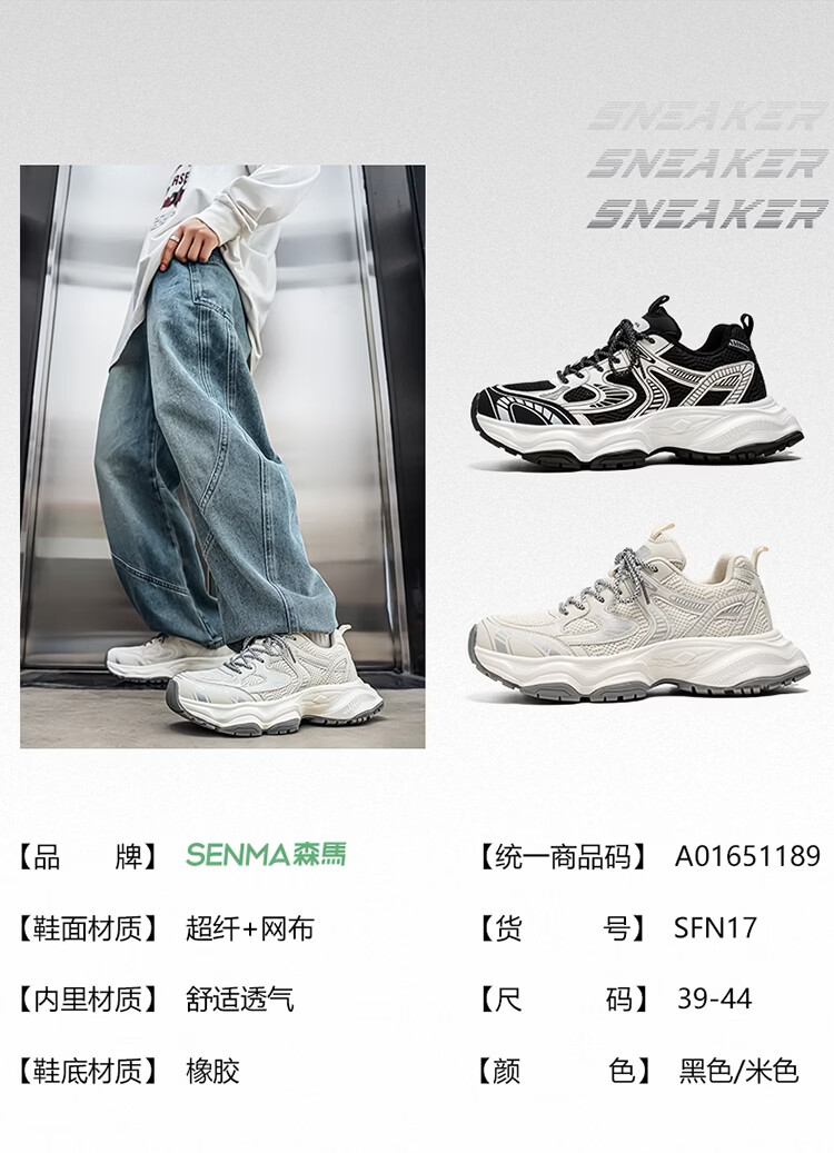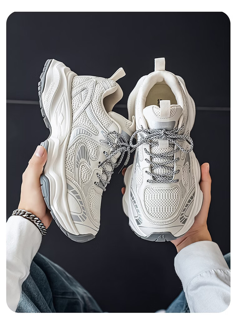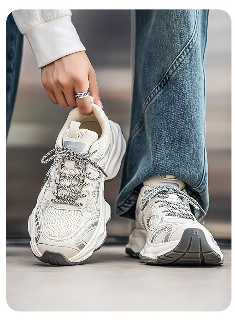 森馬运动鞋男青少年2026春季百搭潮流休闲网面舒适跑步小众设计老爹鞋 米色【基础款】 39 标准码数/现货秒发