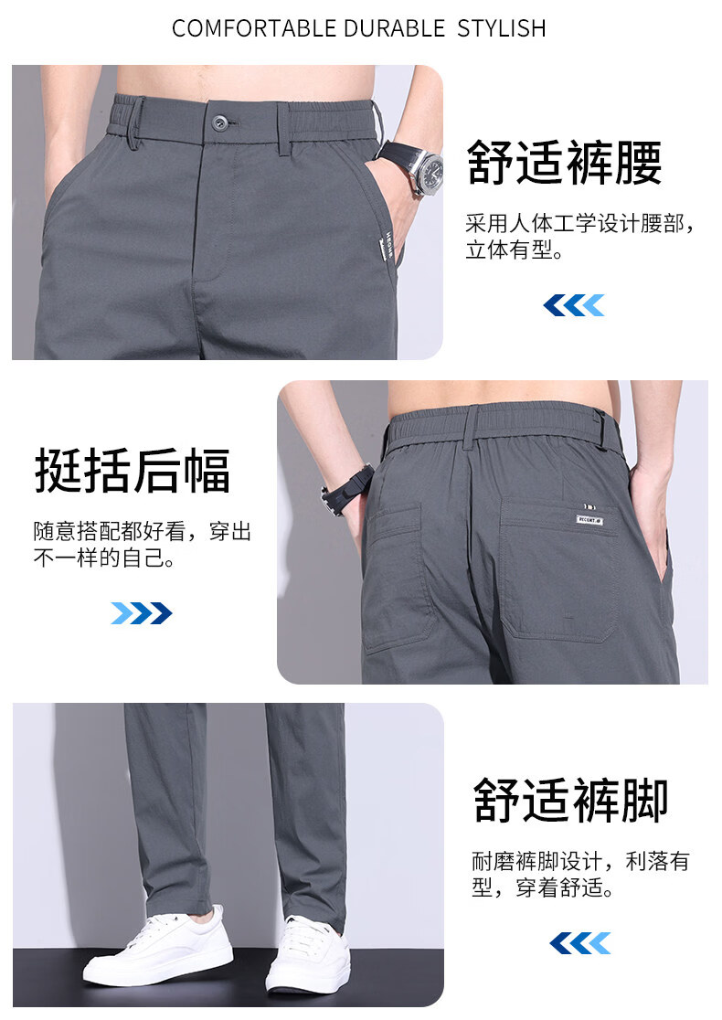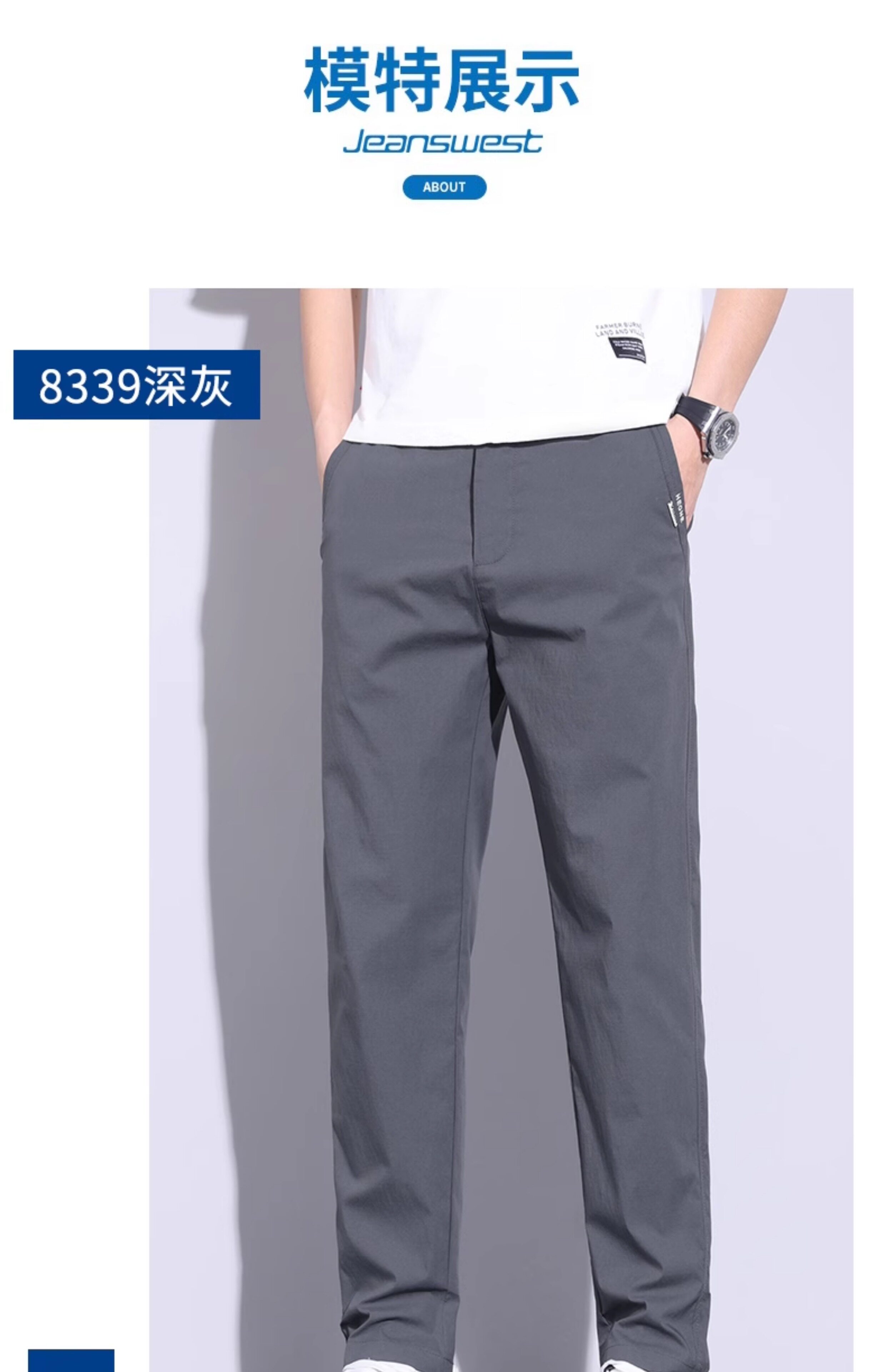 真维斯(Jeanswest)真维斯冰丝休闲裤子男士潮牌修身西裤2025夏季薄款百搭直筒长裤子 8339深灰色 28