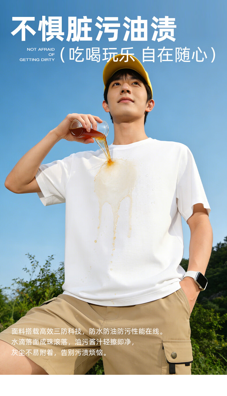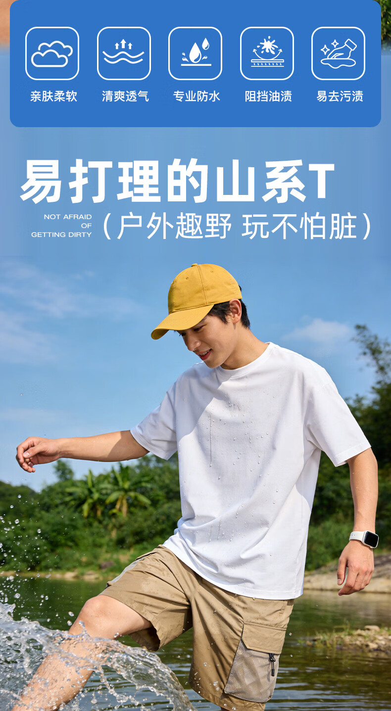 真维斯(Jeanswest)户外三防短袖T恤男款夏季新款圆领透气卡通印花宽松百搭运动上衣 白色 掉落的元素 M