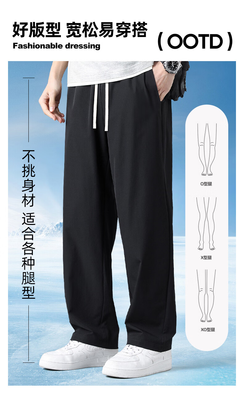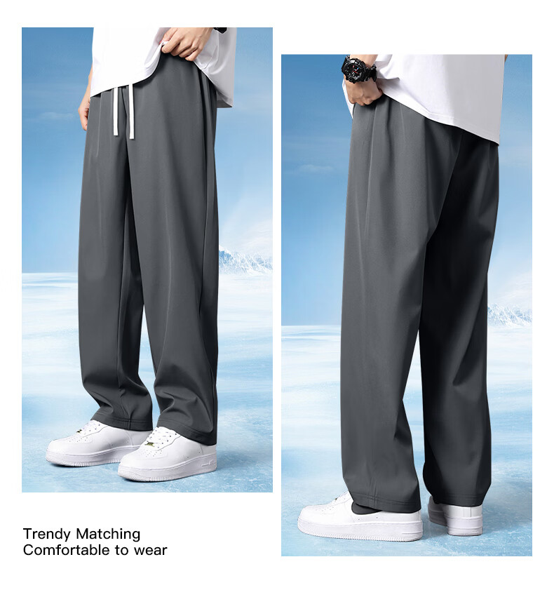 真维斯(Jeanswest)防晒直筒长裤男款夏季2026新款薄款速干冰丝透气休闲裤学生运动裤 深灰 小莲花_K M