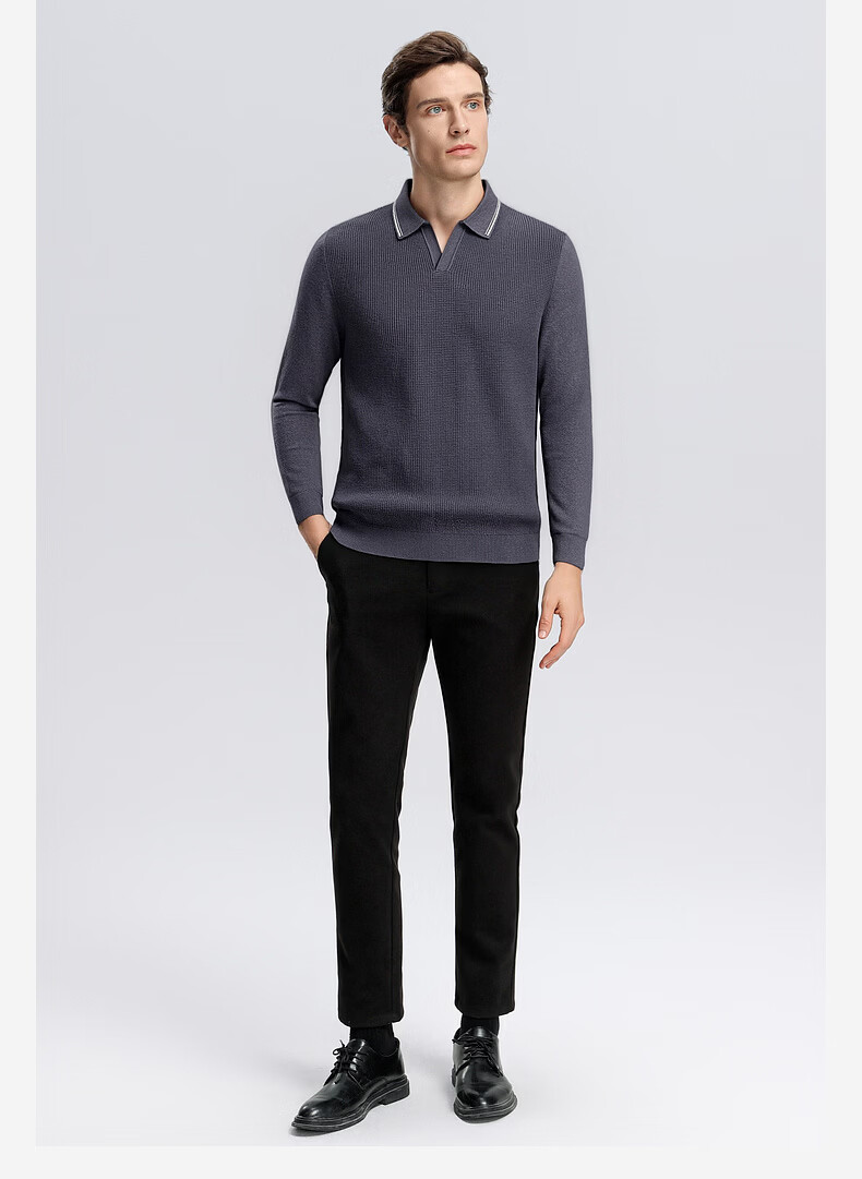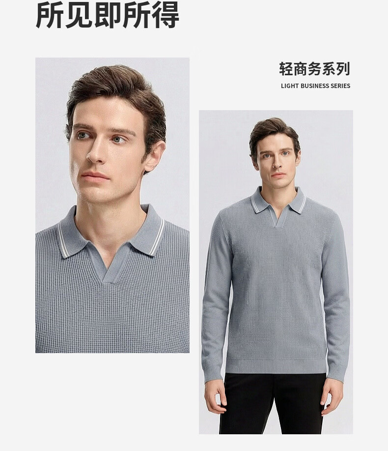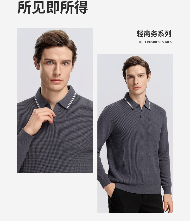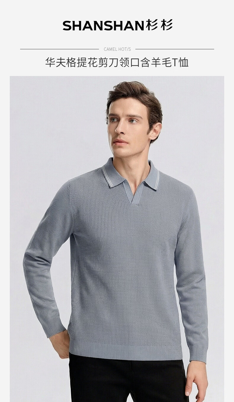 SHANSHAN杉杉男士长袖T恤2026春季新款翻领休闲百搭上衣商务内搭针织衫男 深灰色 2XL /185