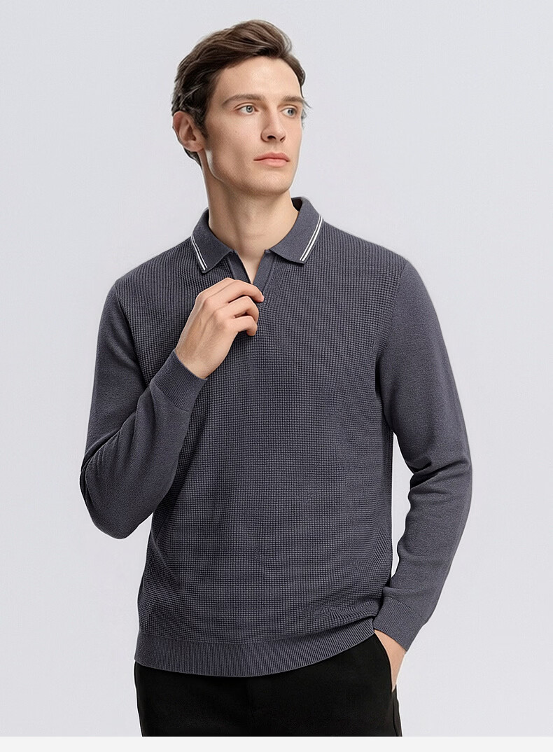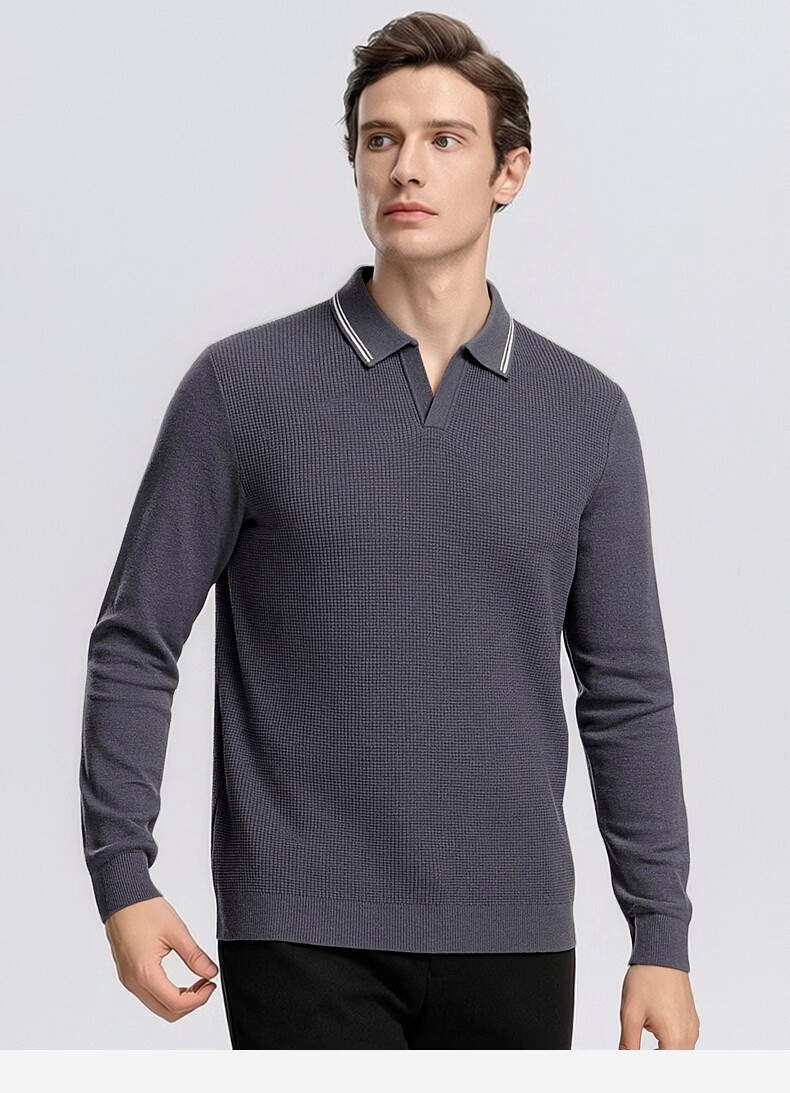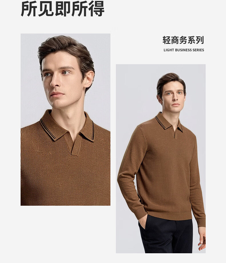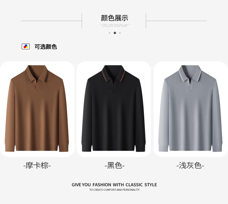 SHANSHAN杉杉男士长袖T恤2026春季新款翻领休闲百搭上衣商务内搭针织衫男 深灰色 2XL /185