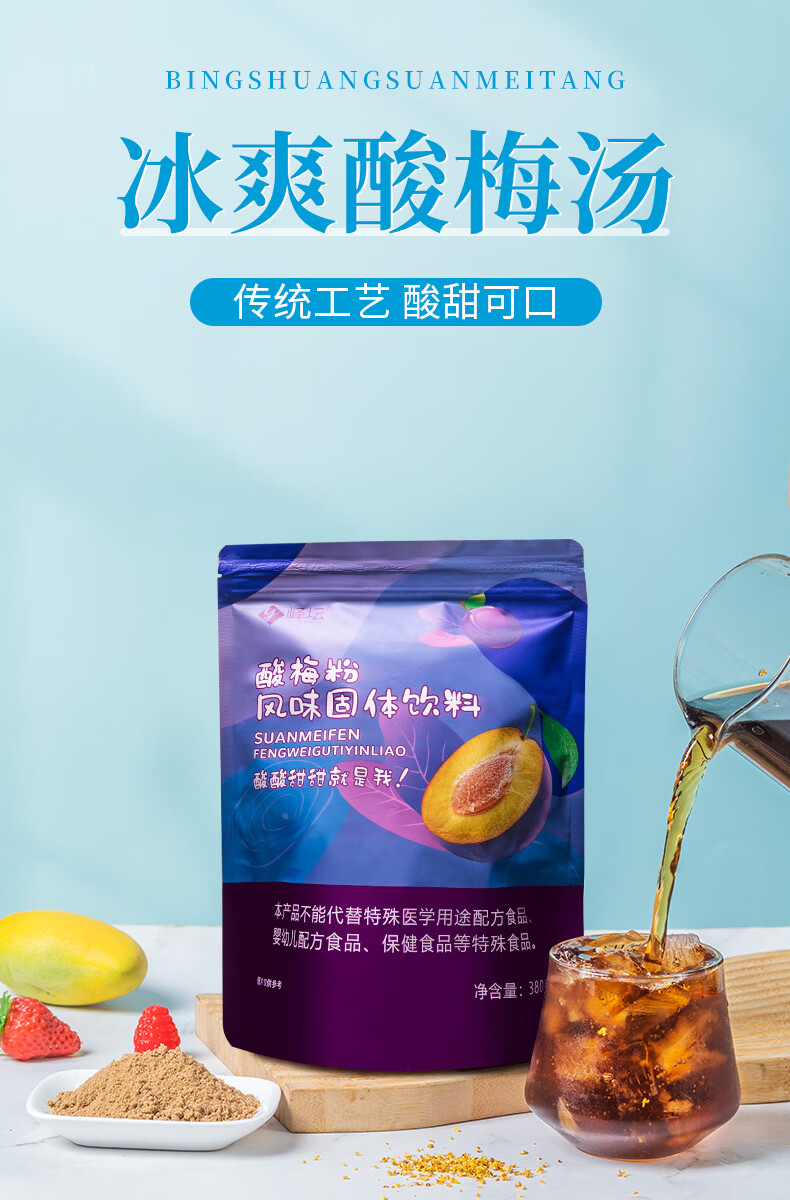 峄坛酸梅粉乌梅酸梅汁果汁冲饮固体饮料酸梅汤粉家用商用拍2单送杯勺 酸梅粉380克/袋