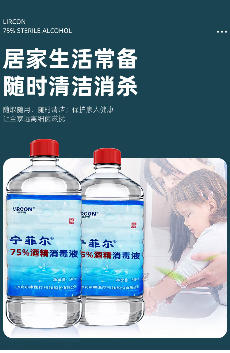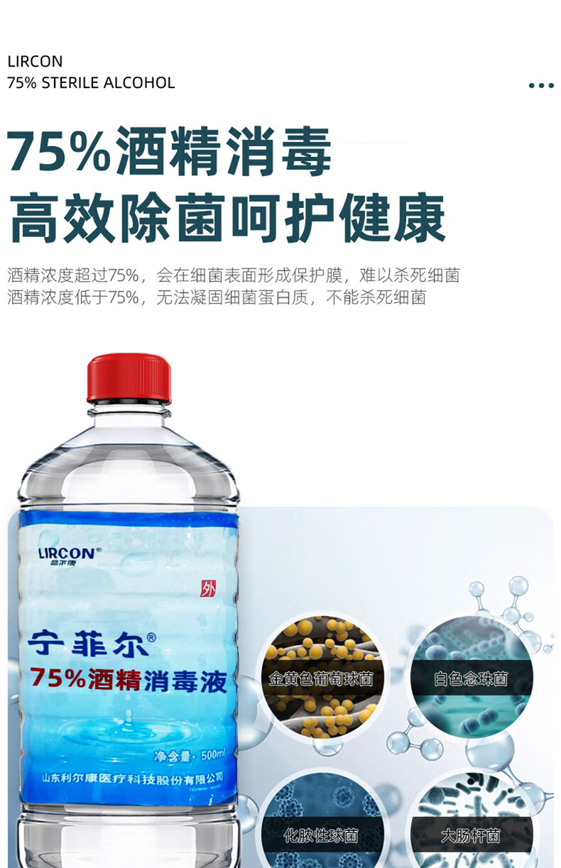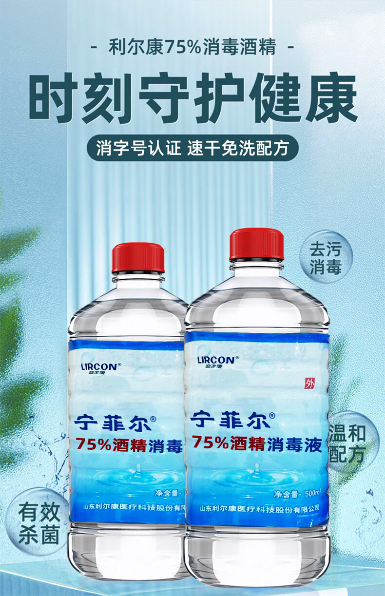 利尔康75%医用酒精消毒液皮肤伤口宠物物品杀菌灭病毒免洗手速干小瓶