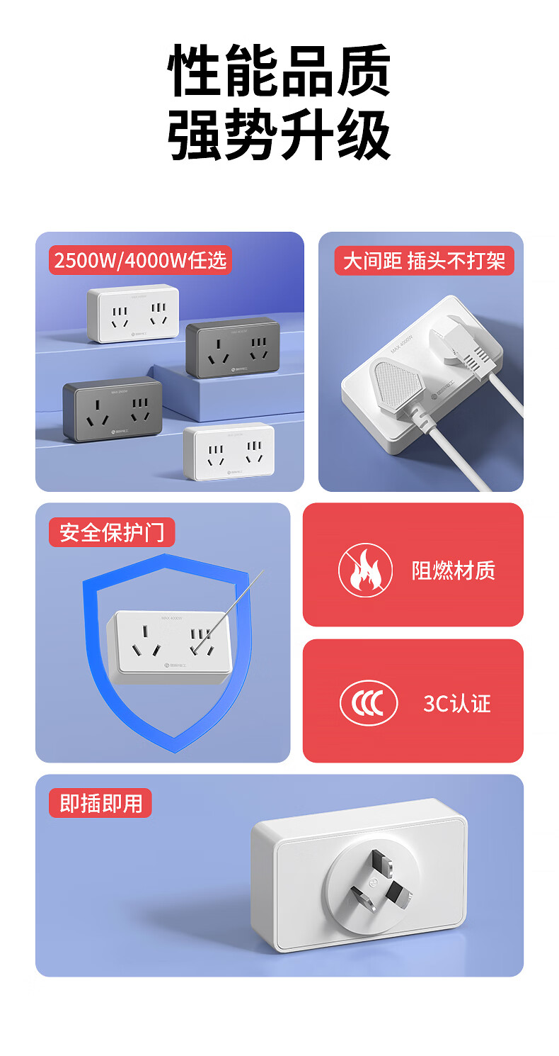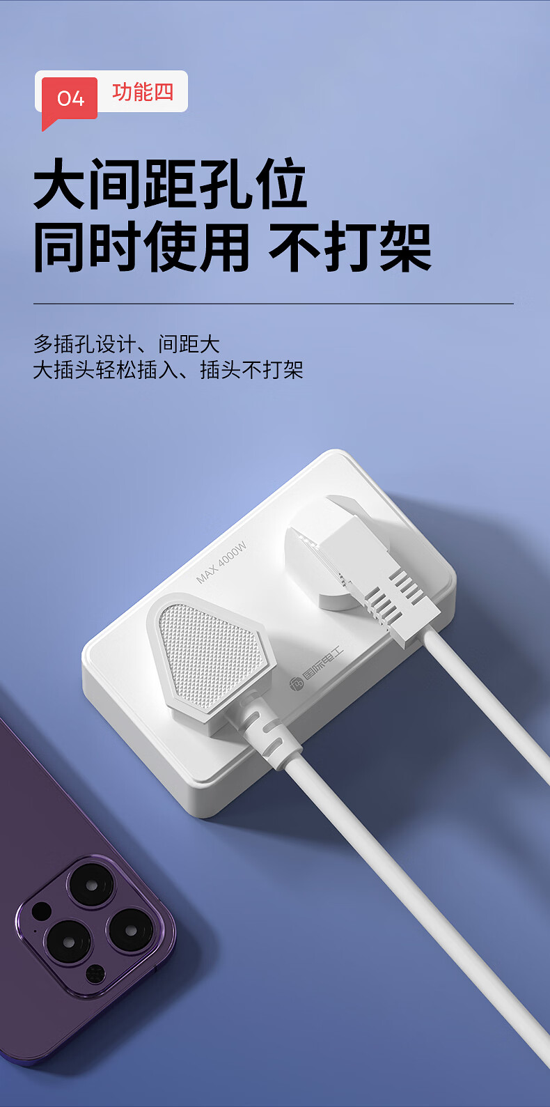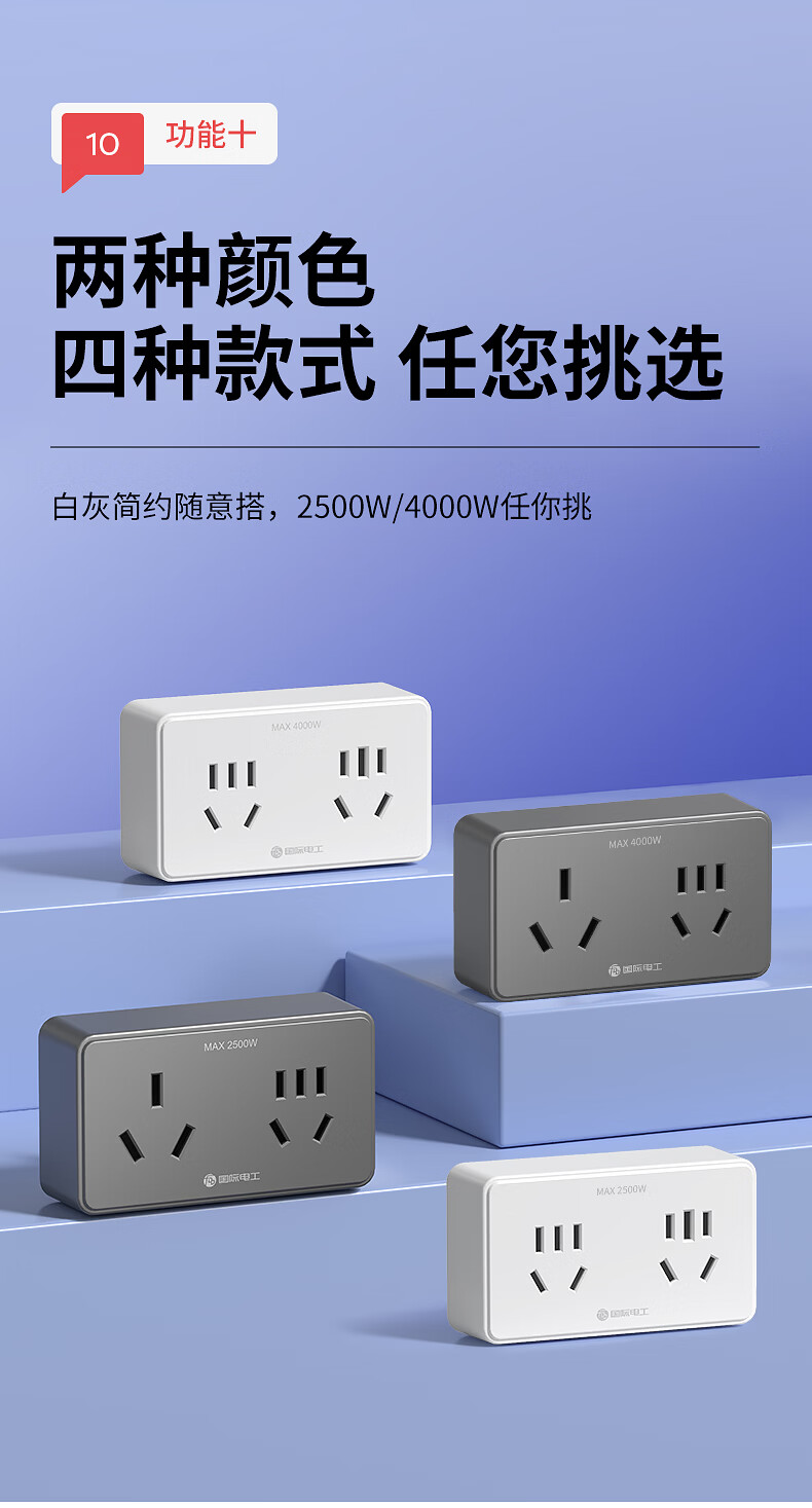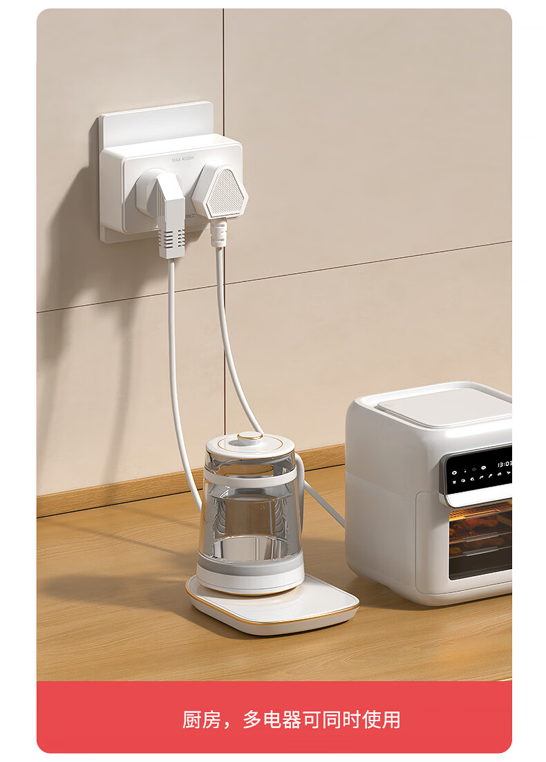国际电工(FDD)原位扩展插座86型家用厨房分控带开关插排多功能USB快充拓展排插 白色带USB-三开21孔-向左扩展(2.1A)