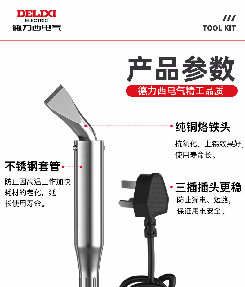 德力西电气双温大功率电烙铁家用小型电烙铁焊接维修电锡笔专业级电焊笔 80w尖头4件套【双温调节大功率】