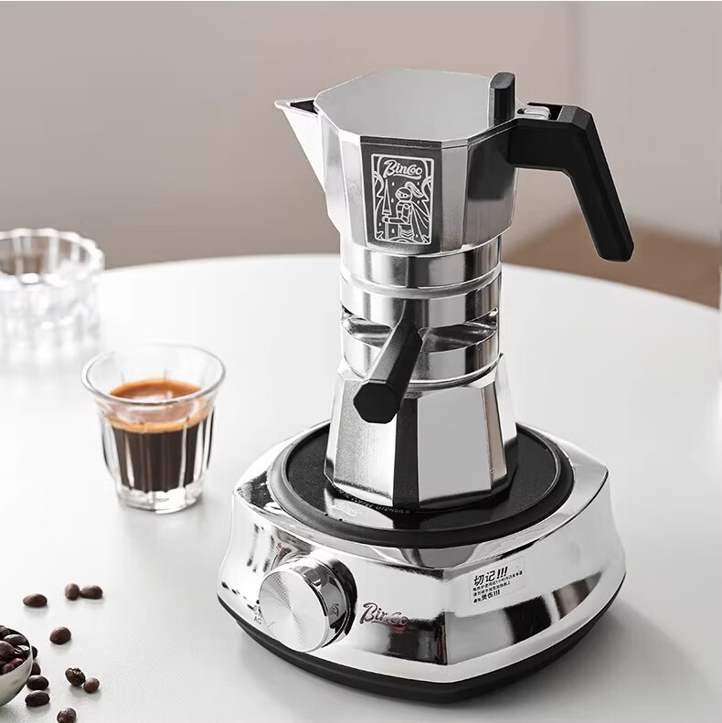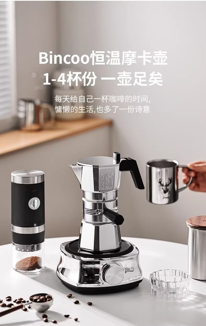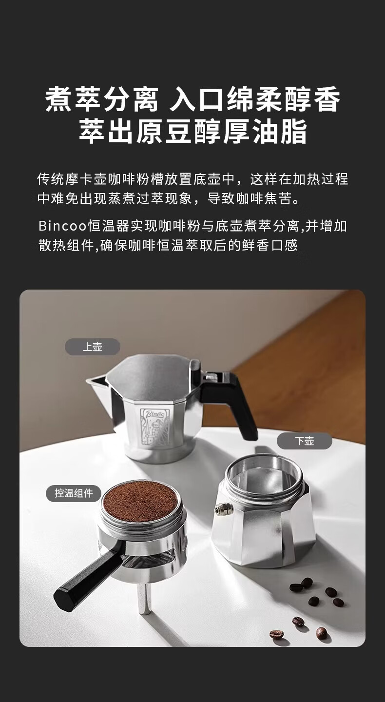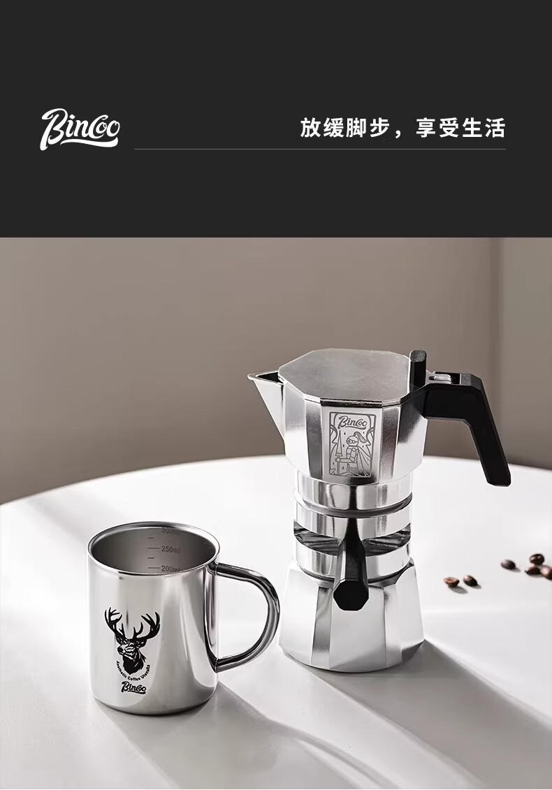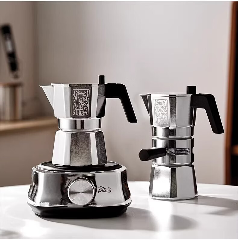 Bincoo恒温双阀摩卡壶煮咖啡壶意式浓缩家用户外露营咖啡机套装 银色120ml+布粉器+滤纸100张 双阀