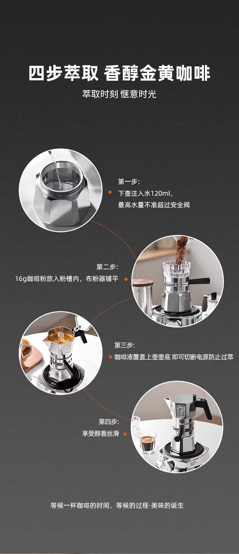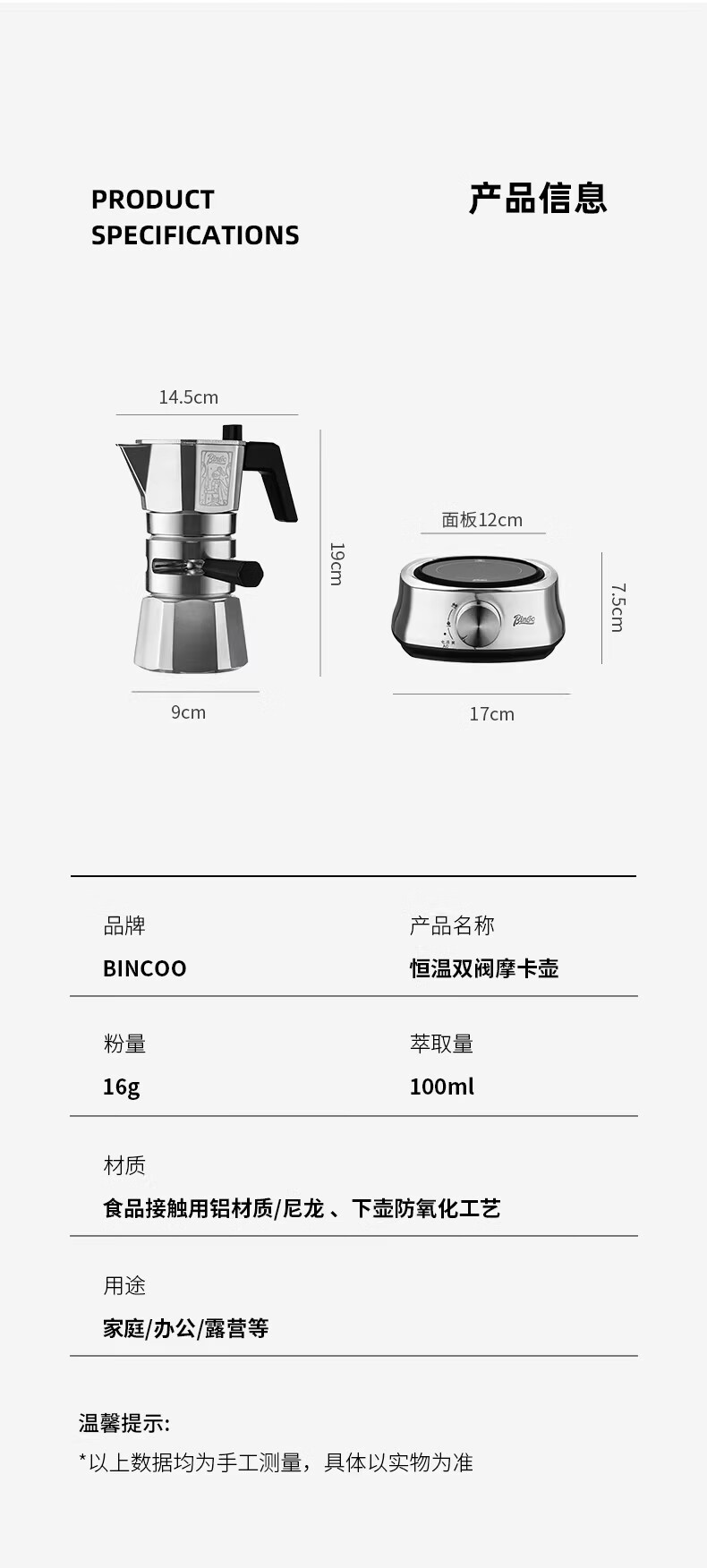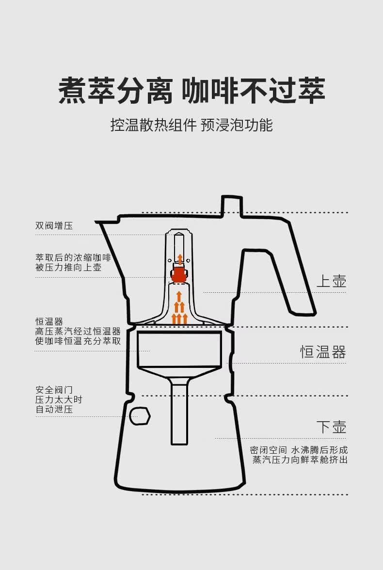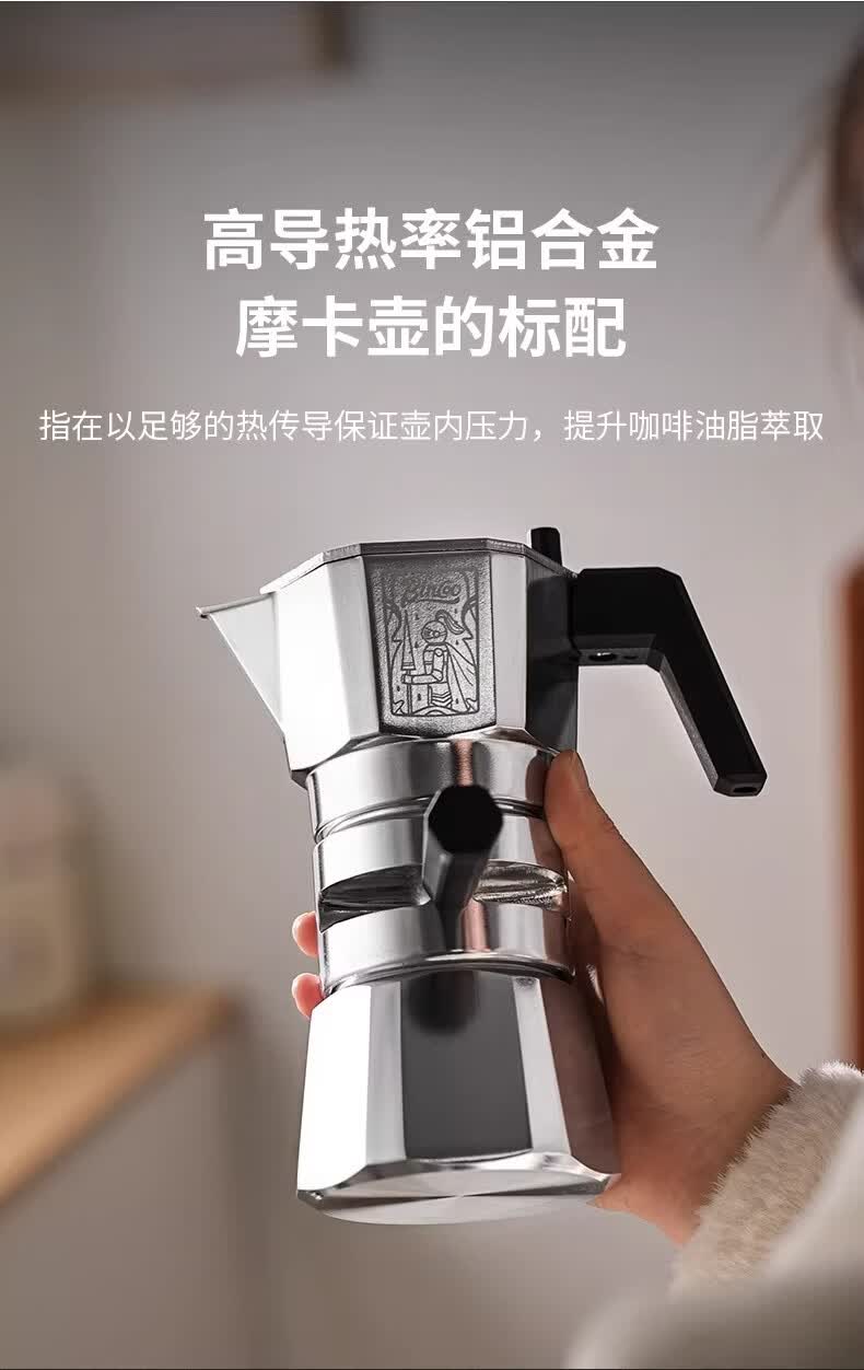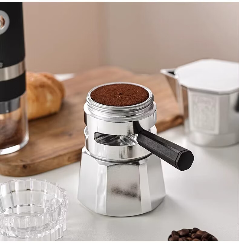 Bincoo恒温双阀摩卡壶煮咖啡壶意式浓缩家用户外露营咖啡机套装 银色120ml+布粉器+滤纸100张 双阀