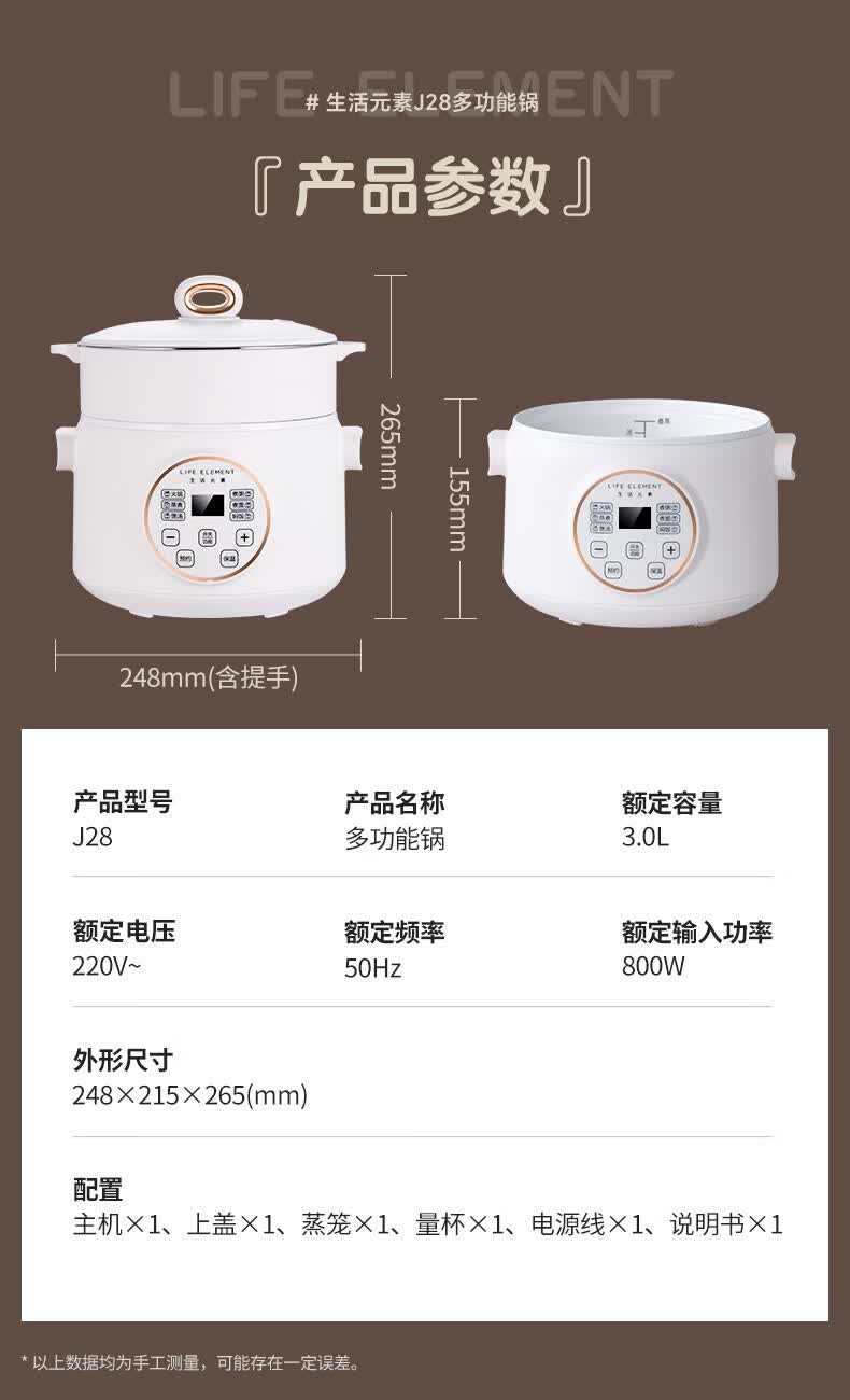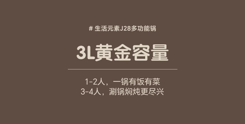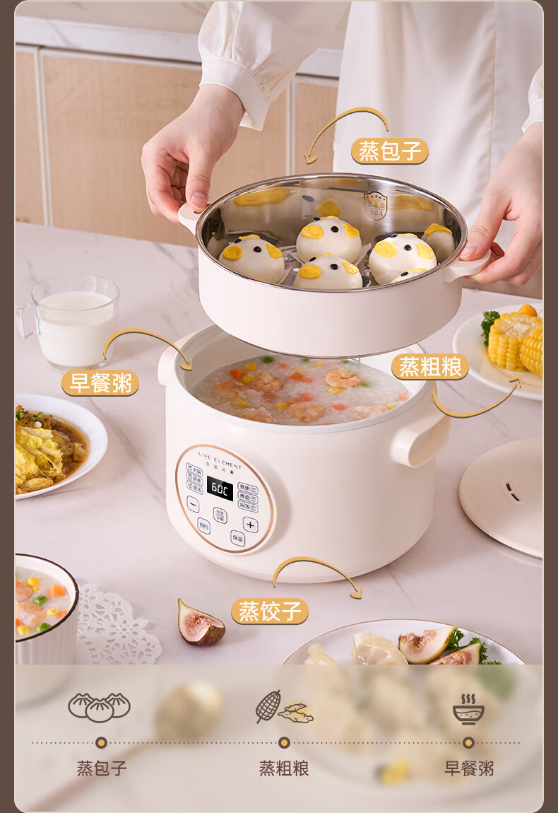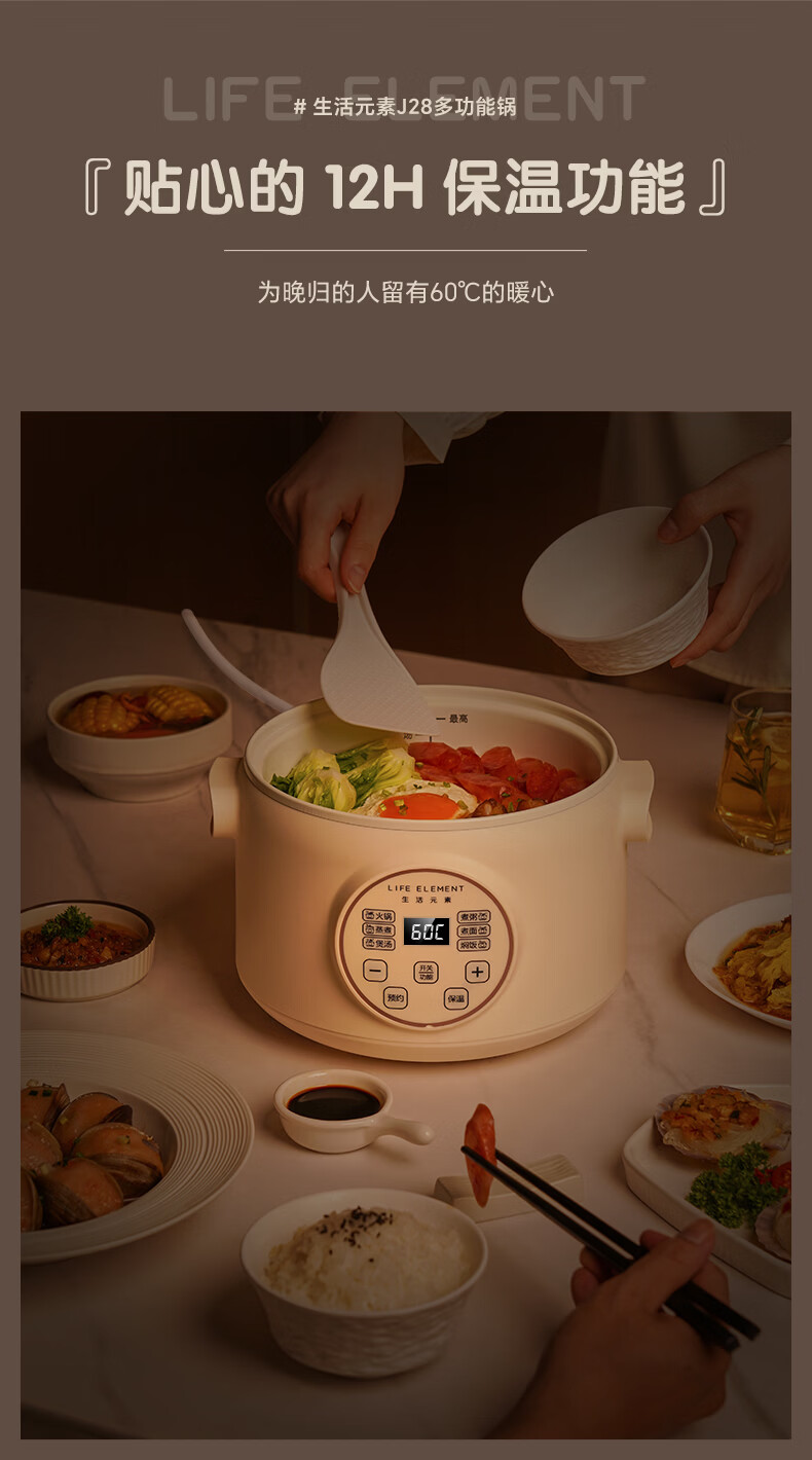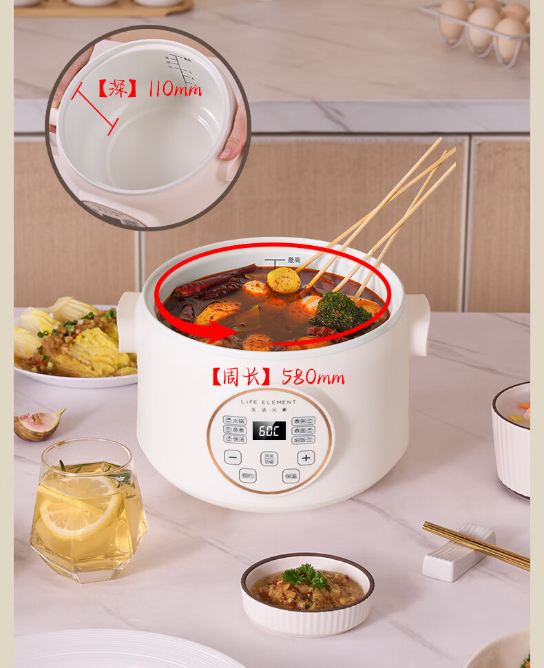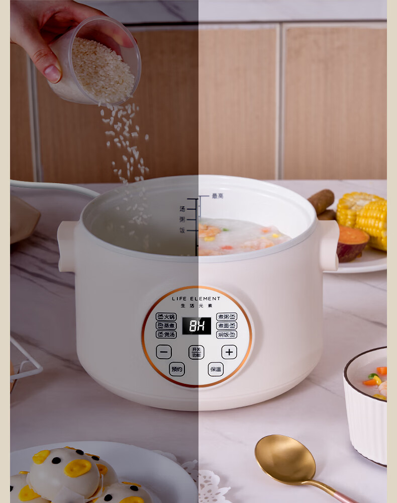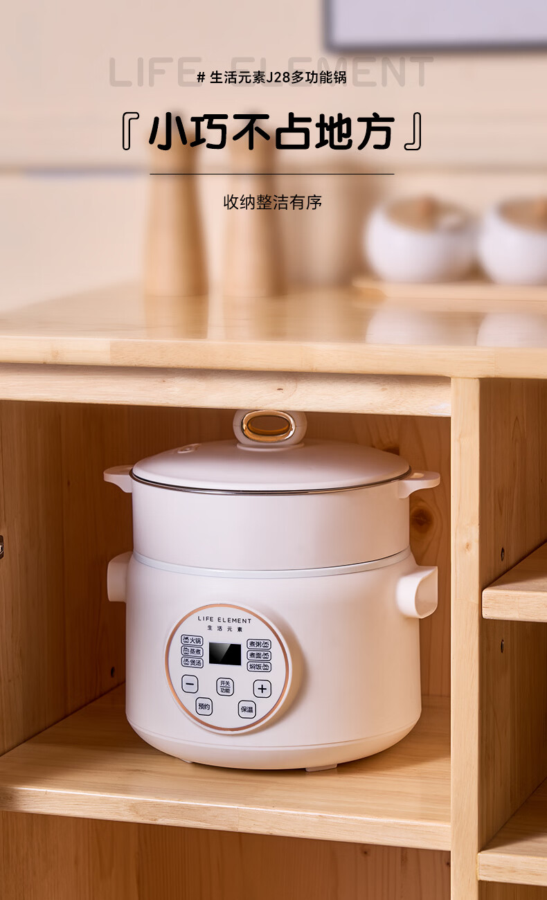 生活元素(LIFE ELEMENT)多功能锅 可涮/煮/炖 6大功能触控 定时/预约 800W大功率 3L容量 适合2-4人 小煮锅电饭煲-J28