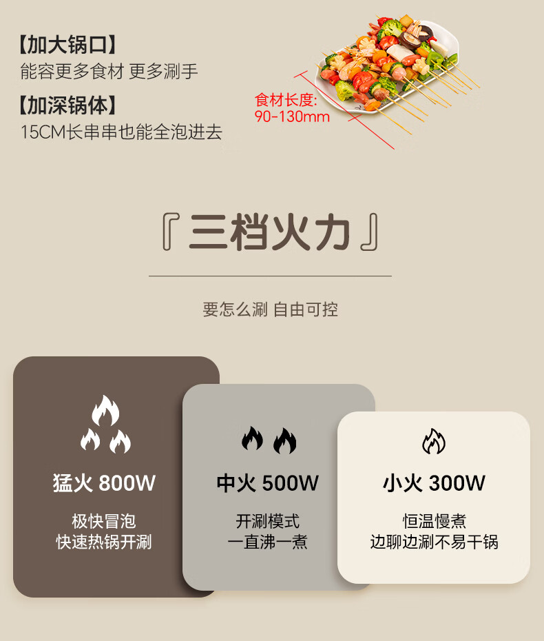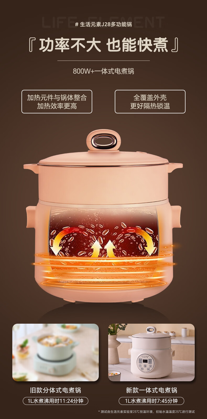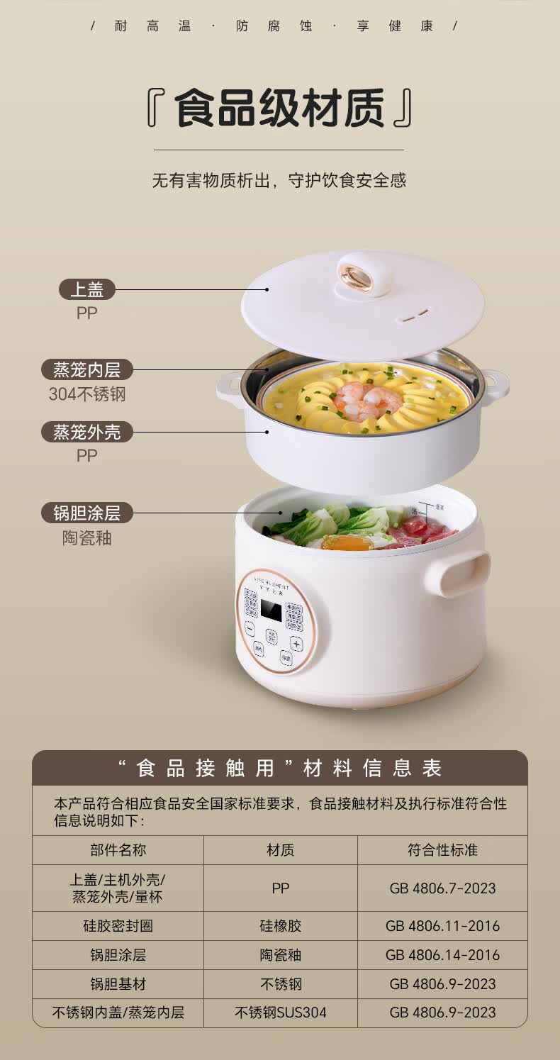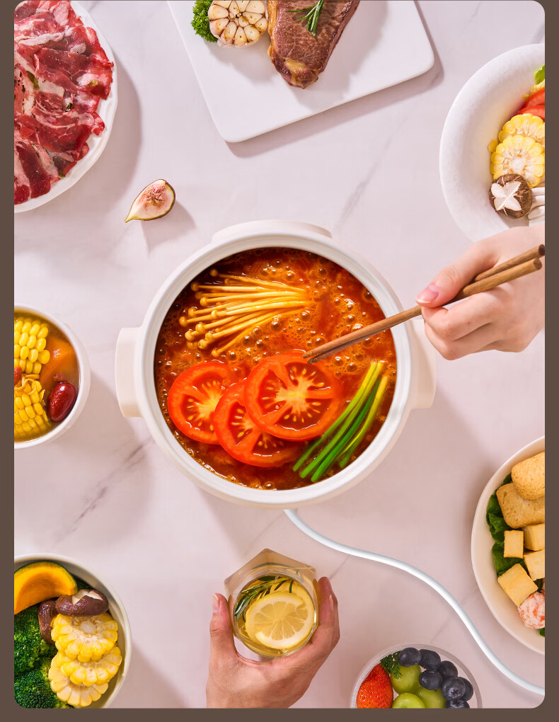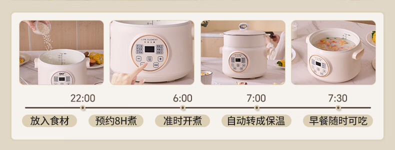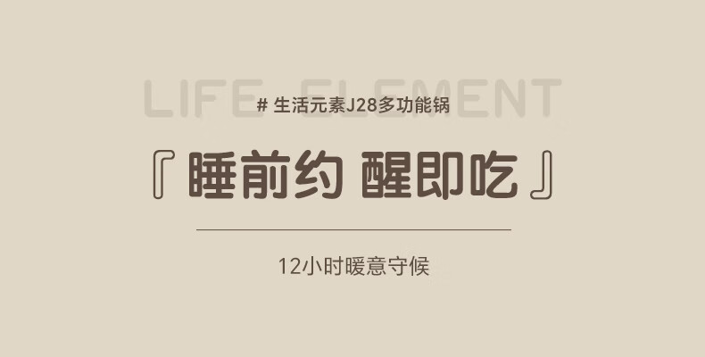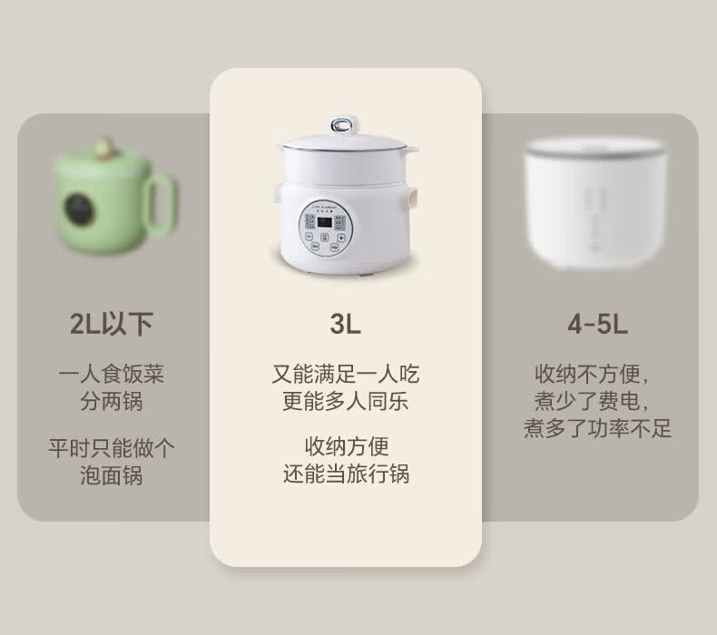 生活元素(LIFE ELEMENT)多功能锅 可涮/煮/炖 6大功能触控 定时/预约 800W大功率 3L容量 适合2-4人 小煮锅电饭煲-J28