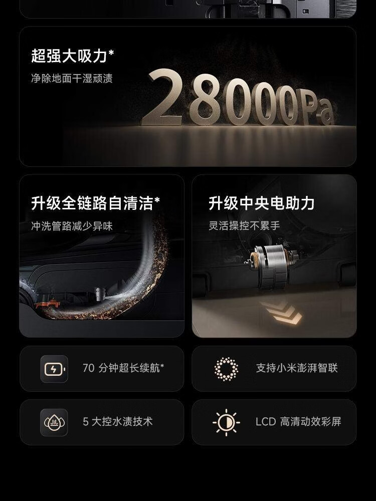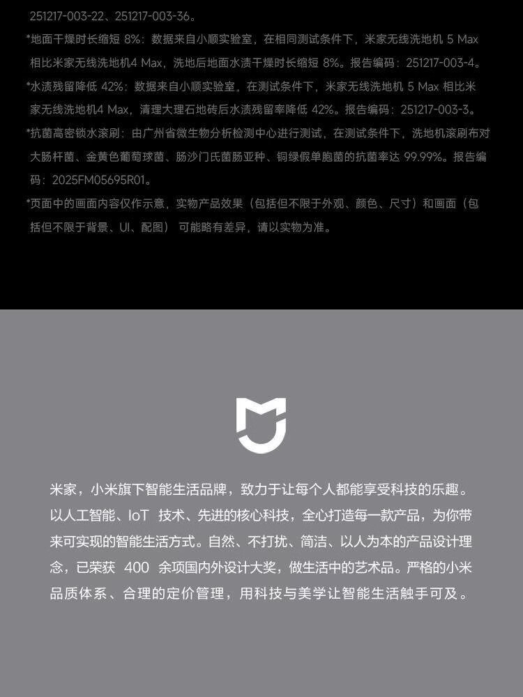 米家【年度旗舰】小米无线洗地机5 Max 蒸汽泡沫热水多合一 全链路自清洁 28kPa大吸力 家用洗拖吸一体 米家无线洗地机5 Max