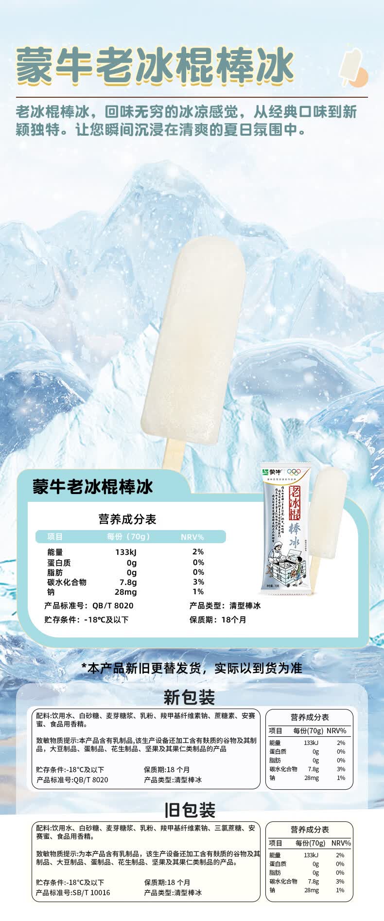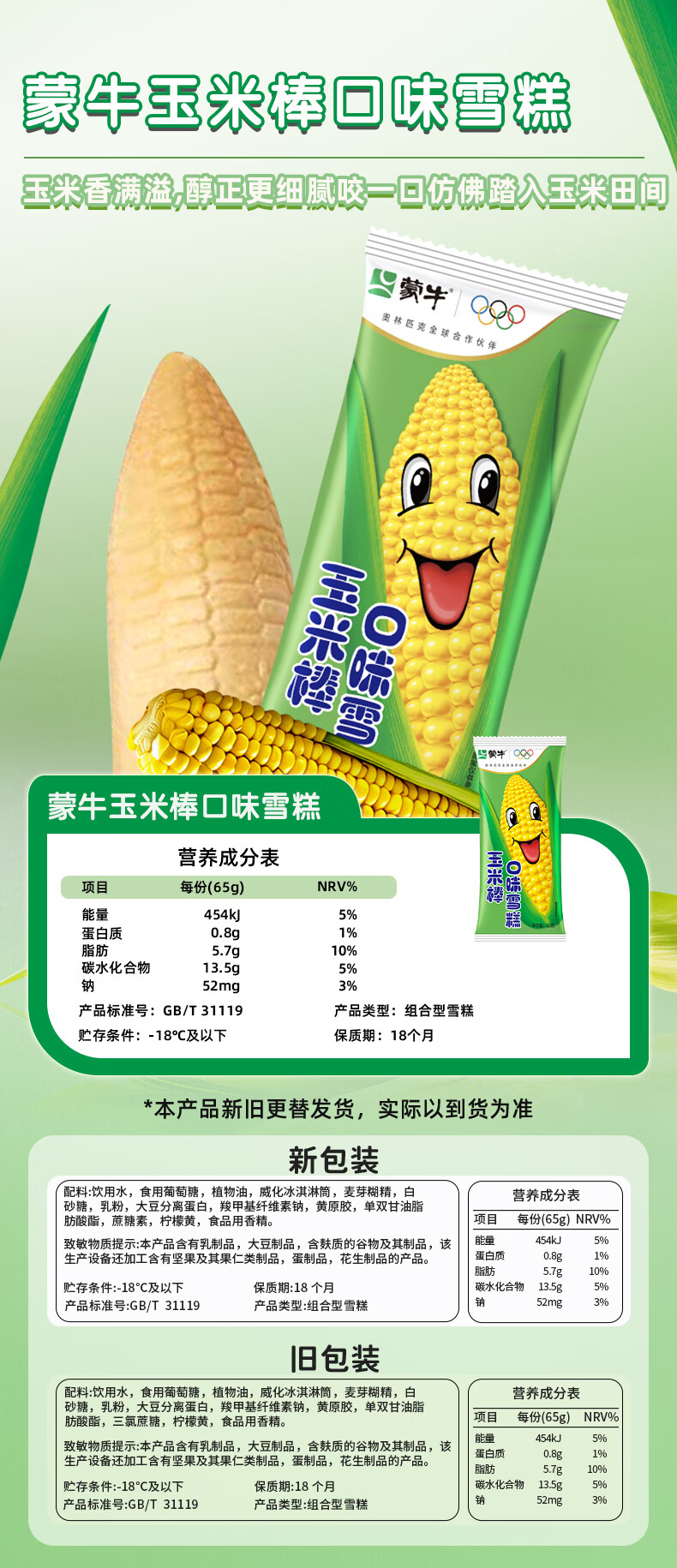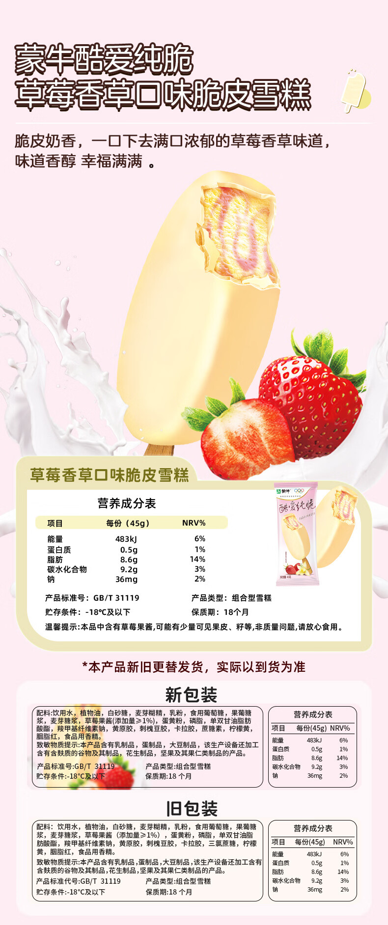 蒙牛【多种口味任选】冰+绿色心情随变冰淇淋雪糕棒冰 经典香草5迷你草莓4支