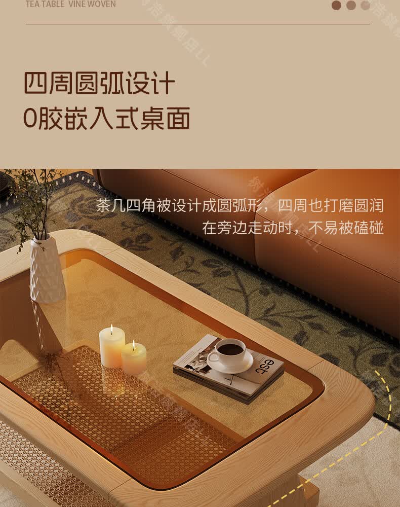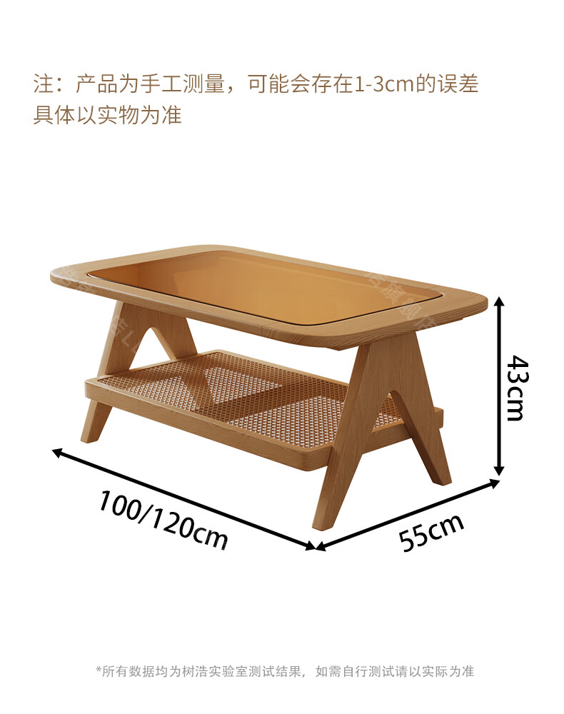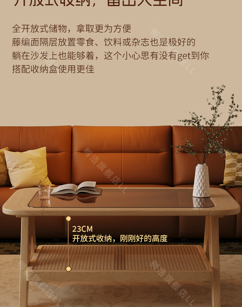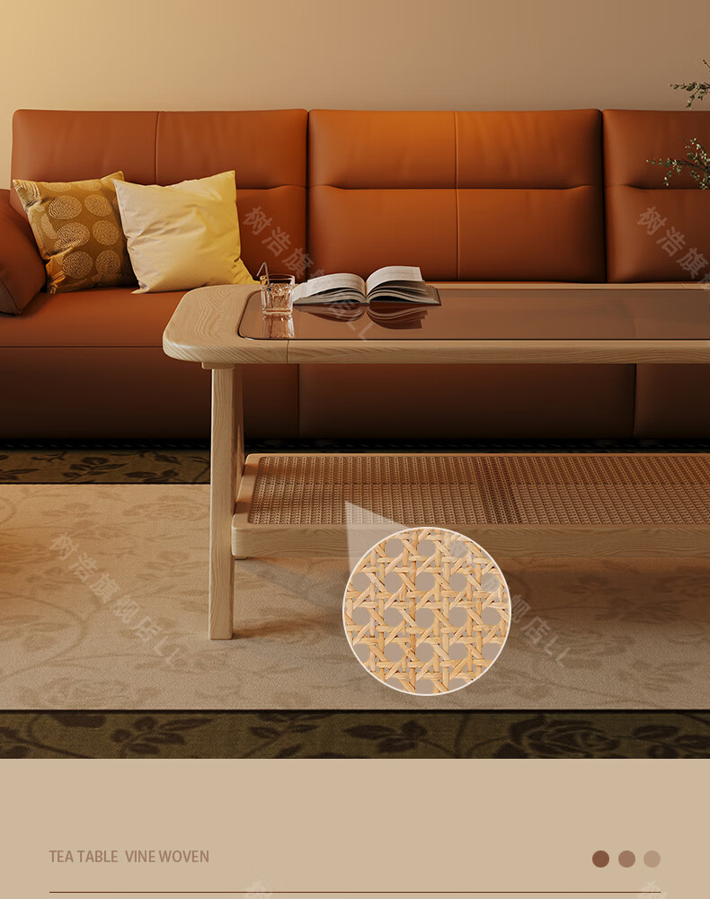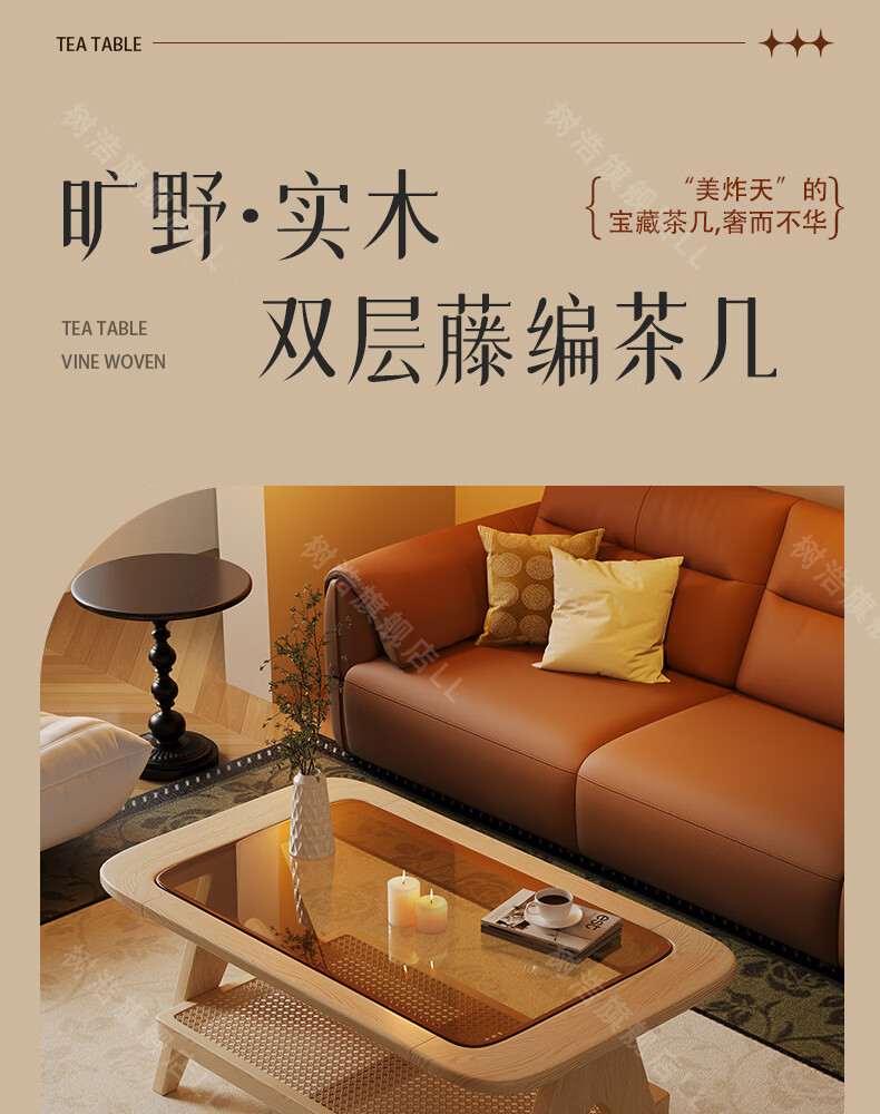 树浩茶几客厅茶桌茶台家用边桌小户型置物架简约电脑桌出租房吃饭桌子 【实木款/藤编工艺/钢化茶色玻璃】100cm胡桃色