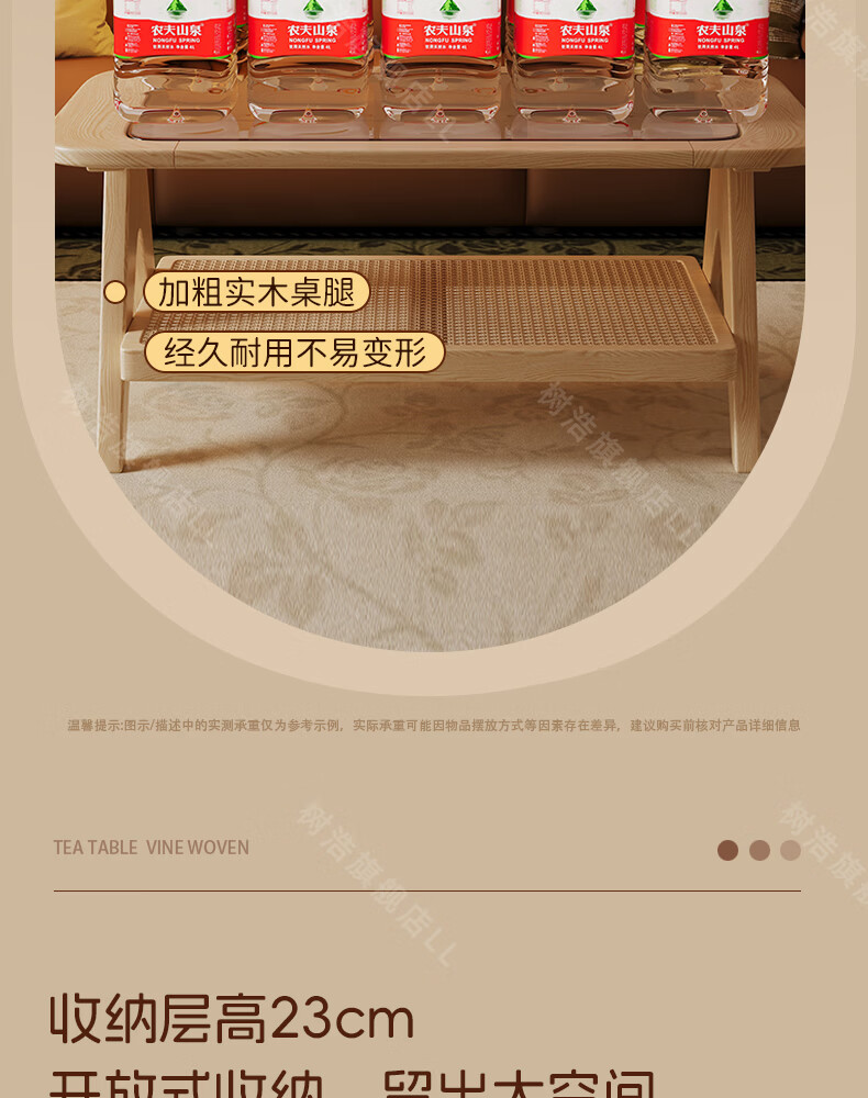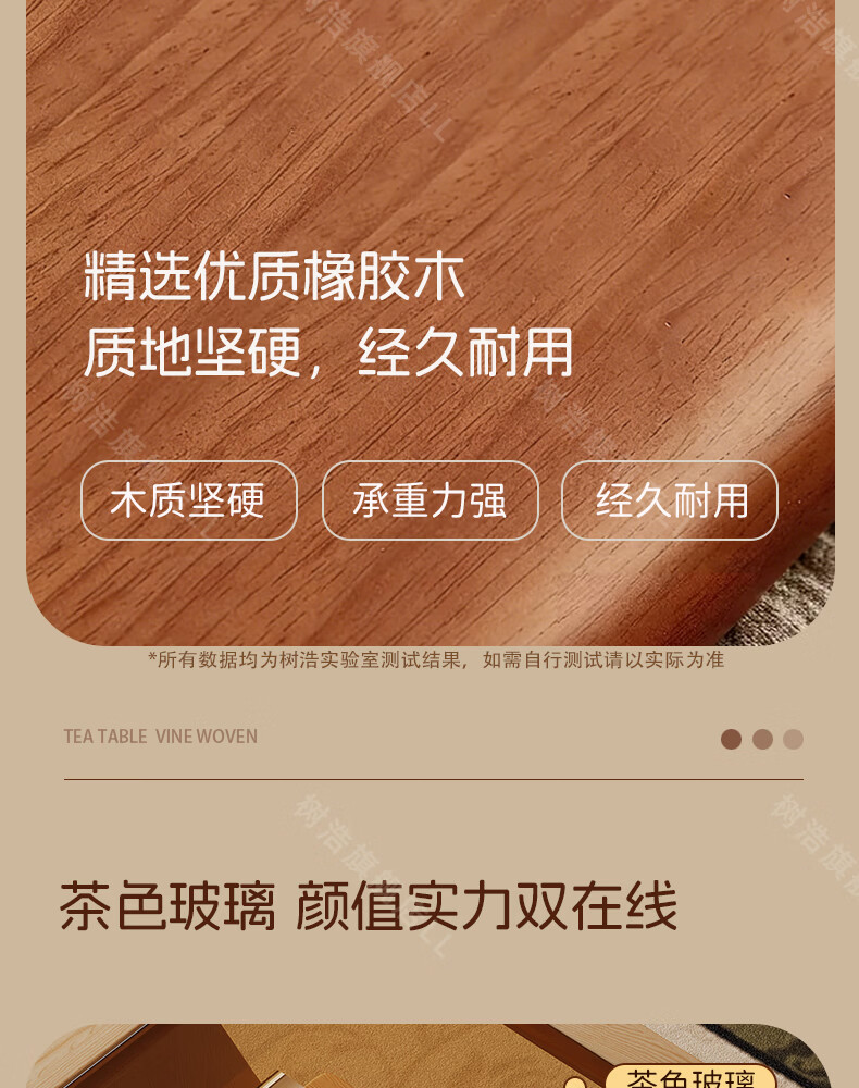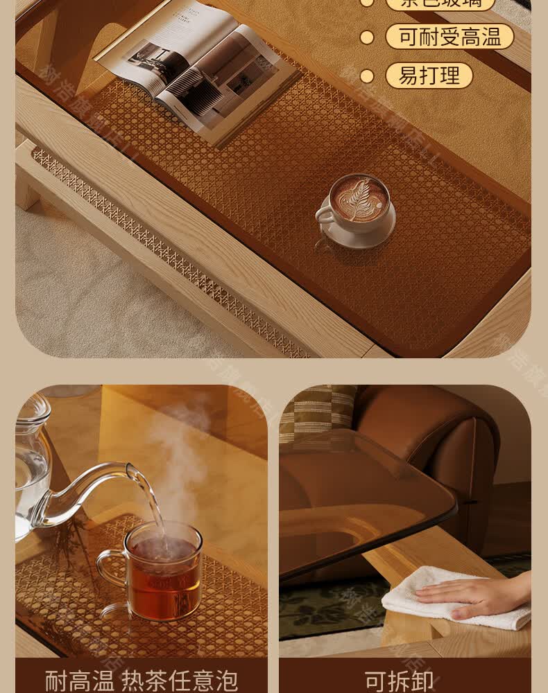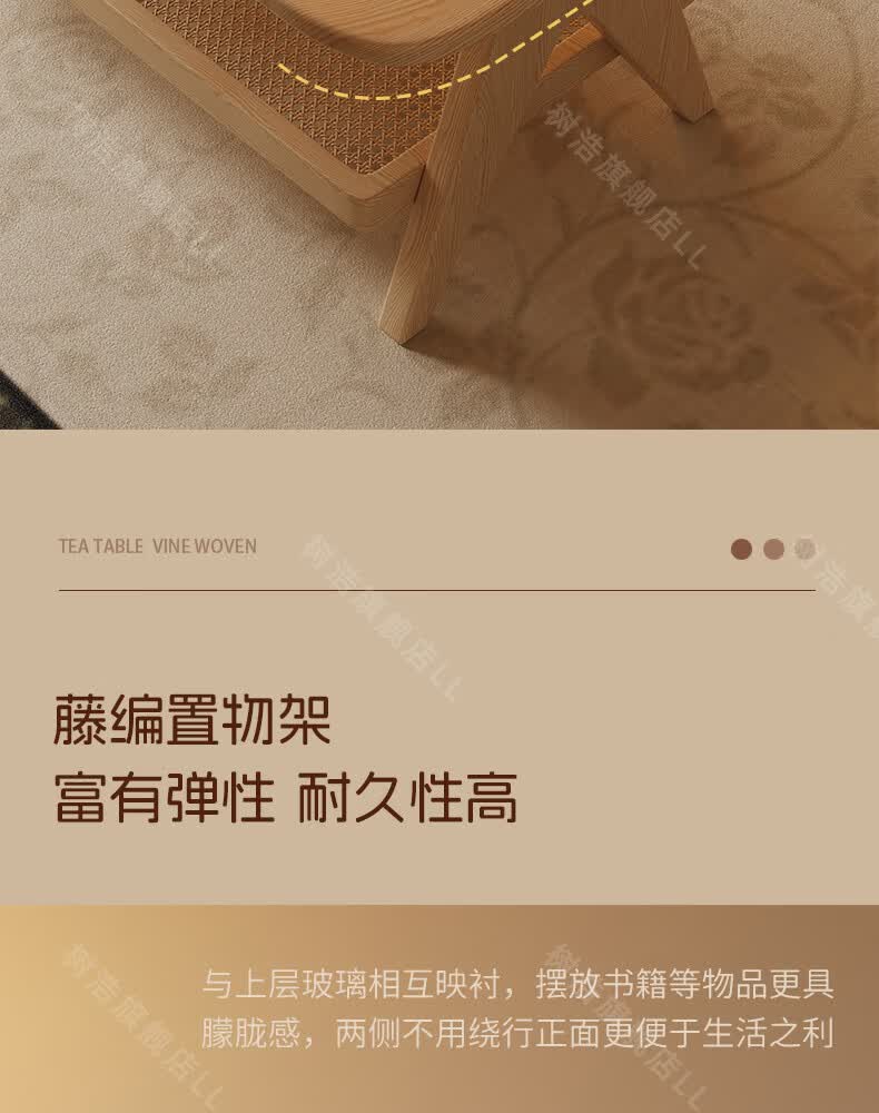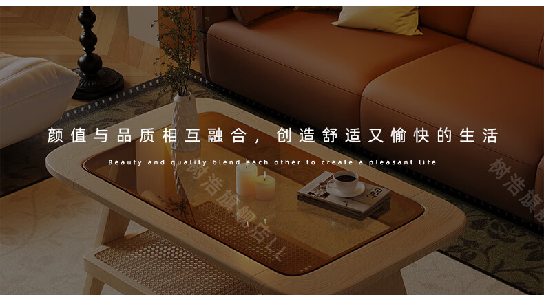 树浩茶几客厅茶桌茶台家用边桌小户型置物架简约电脑桌出租房吃饭桌子 【实木款/藤编工艺/钢化茶色玻璃】100cm胡桃色