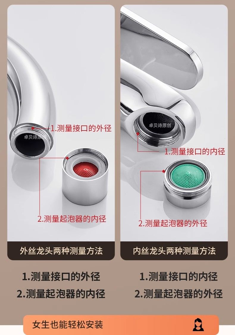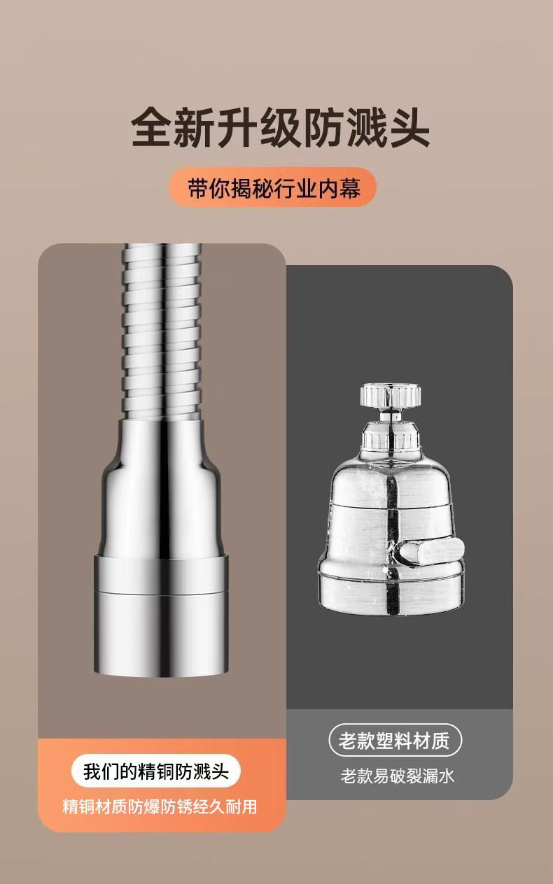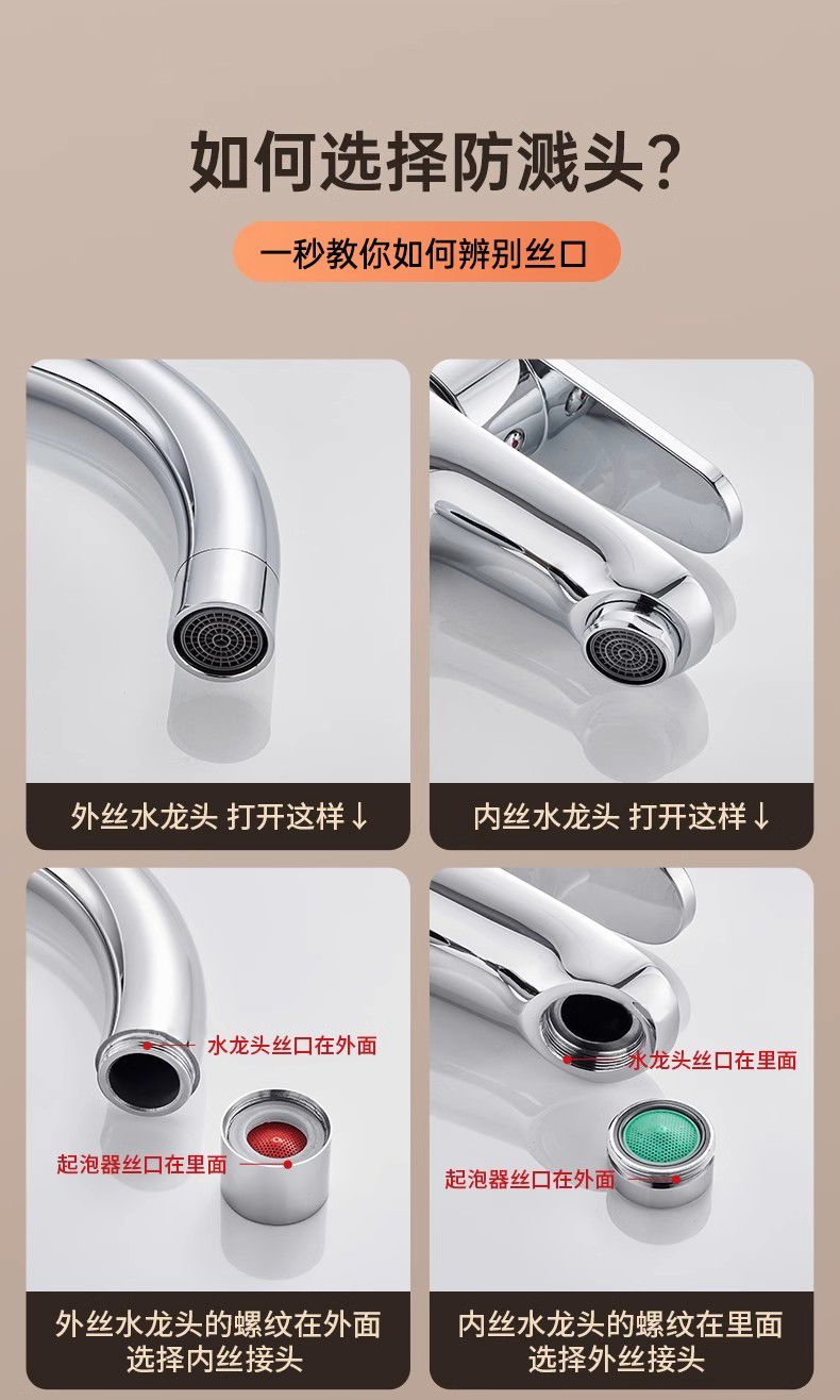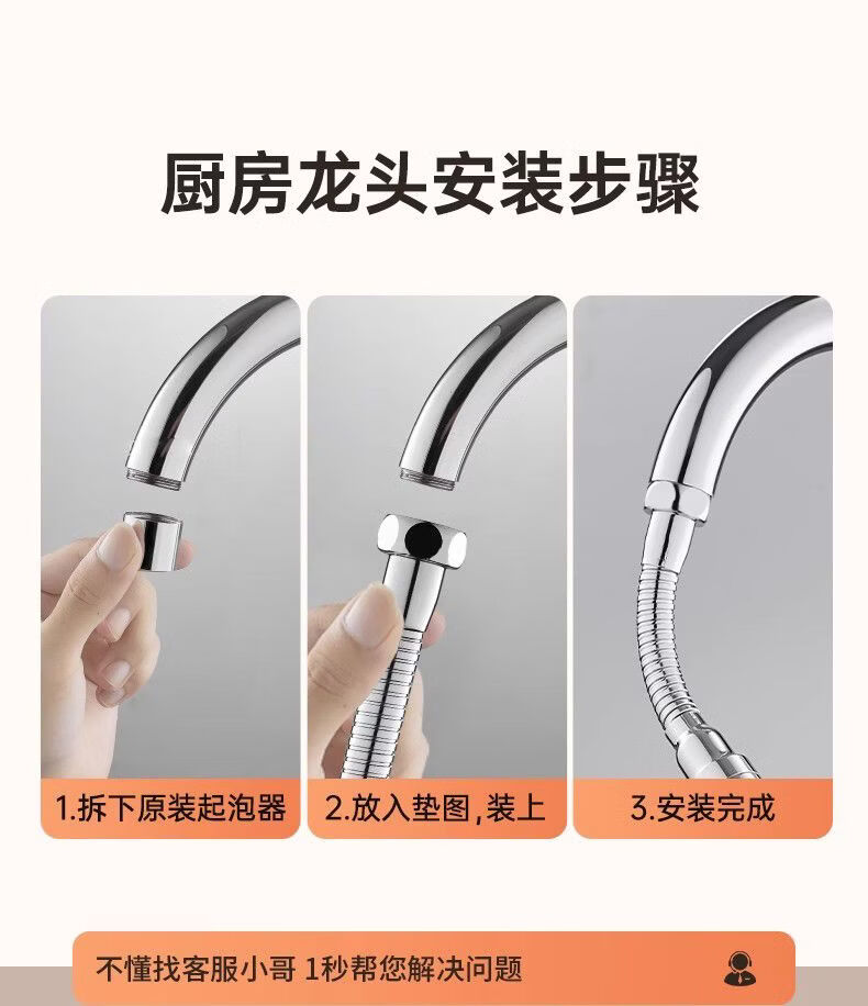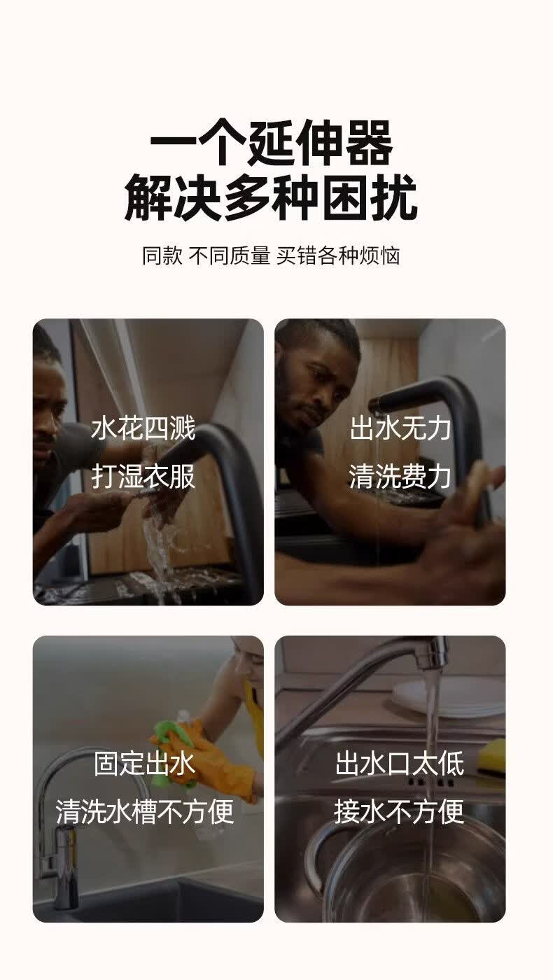 一靓水龙头套嘴防溅水神器内丝外丝通用外接花洒加长万向延伸器接头 两档【22mm内丝】精工尺寸 万向无死角清洗