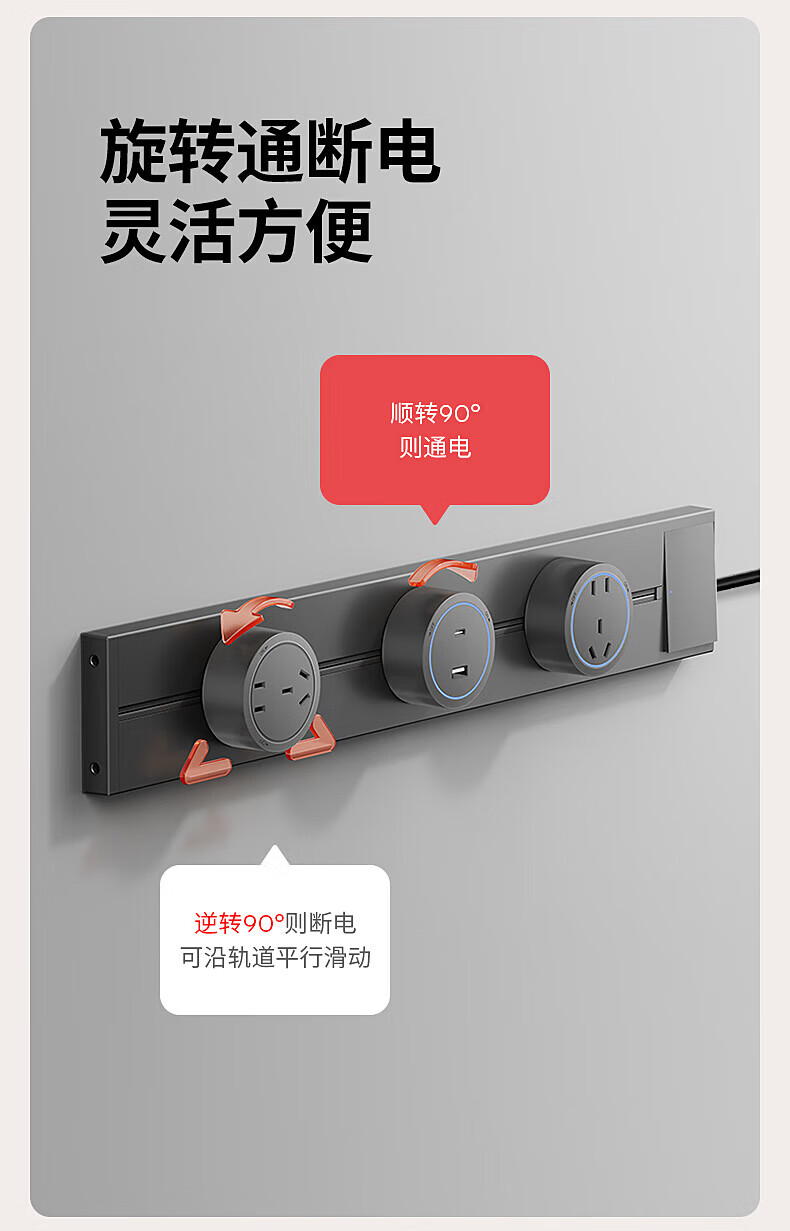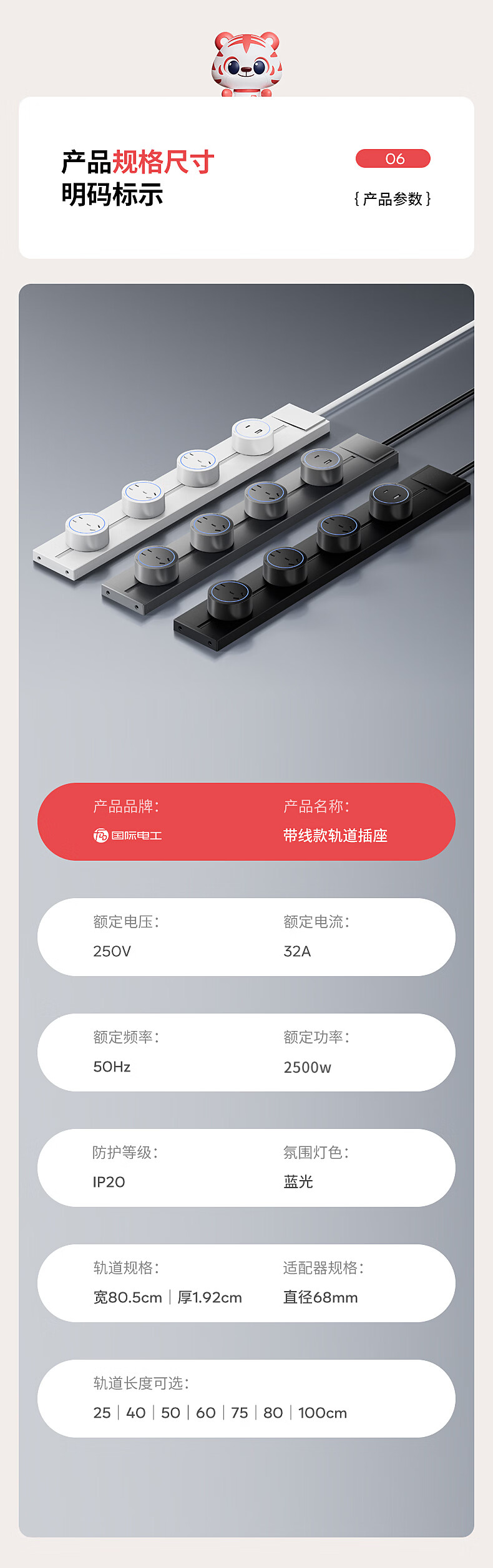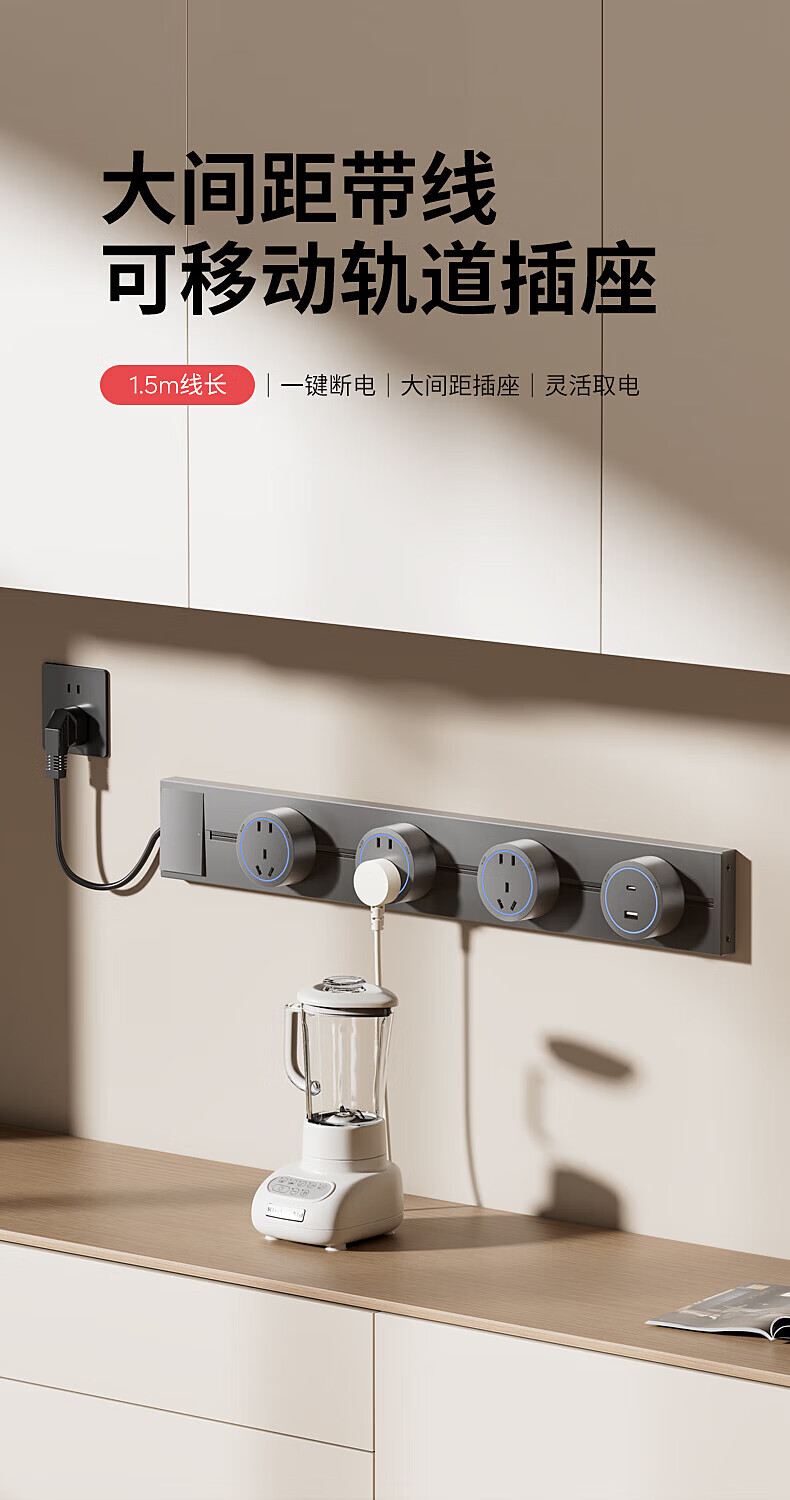 国际电工轨道插座带开关可移动滑动滑轨插排厨房家用明装带线电源导轨排插 白色带线+【一键总控】 40厘米+2个五孔+1.5米线