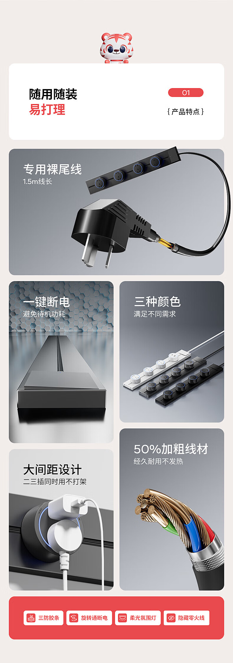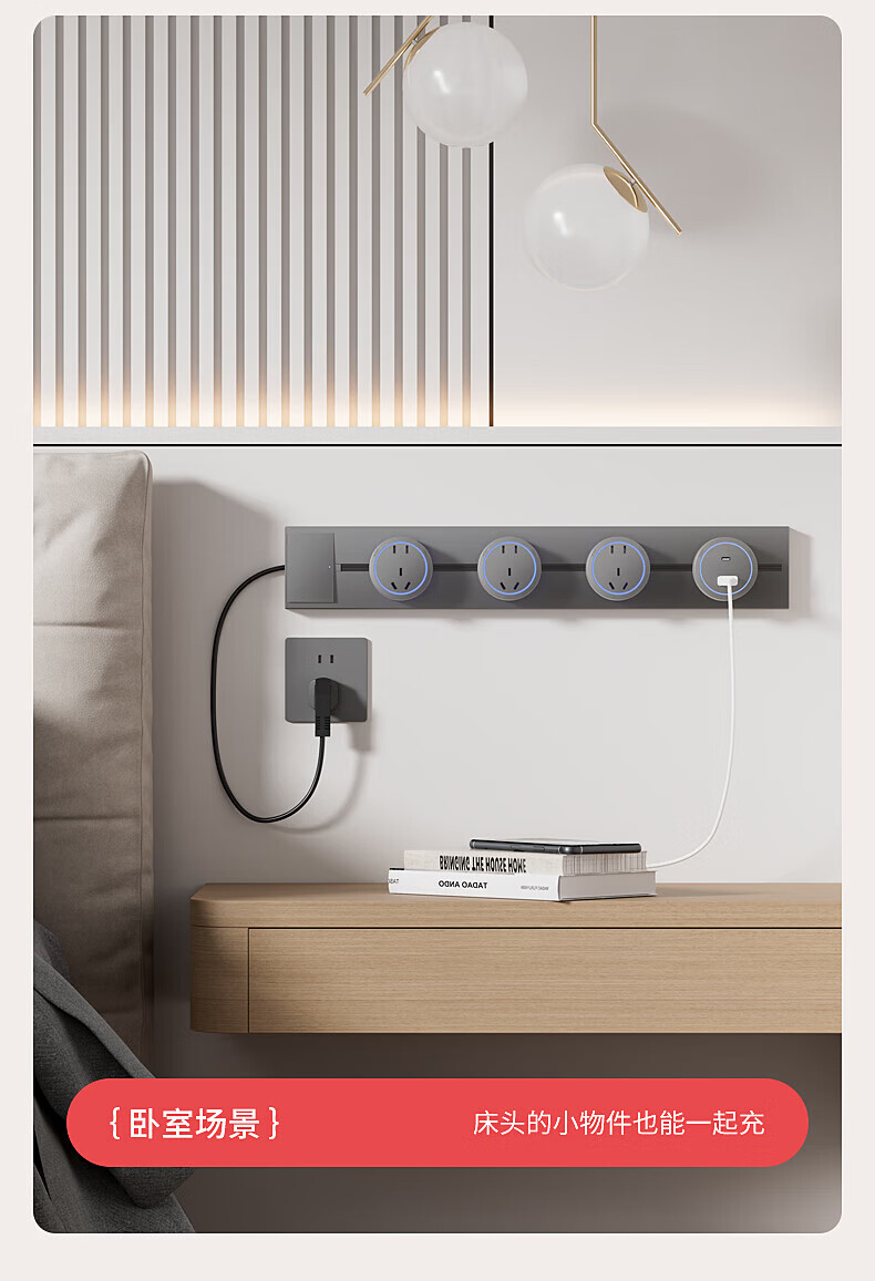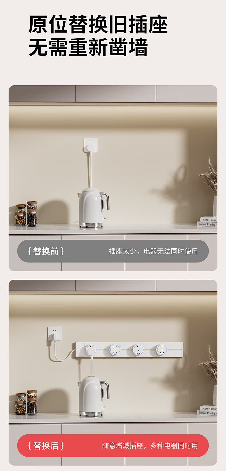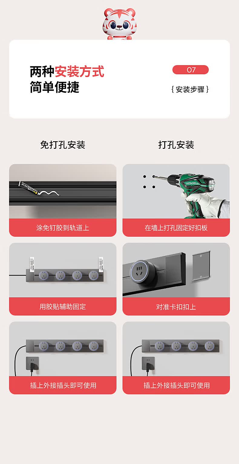 国际电工轨道插座带开关可移动滑动滑轨插排厨房家用明装带线电源导轨排插 白色带线+【一键总控】 40厘米+2个五孔+1.5米线