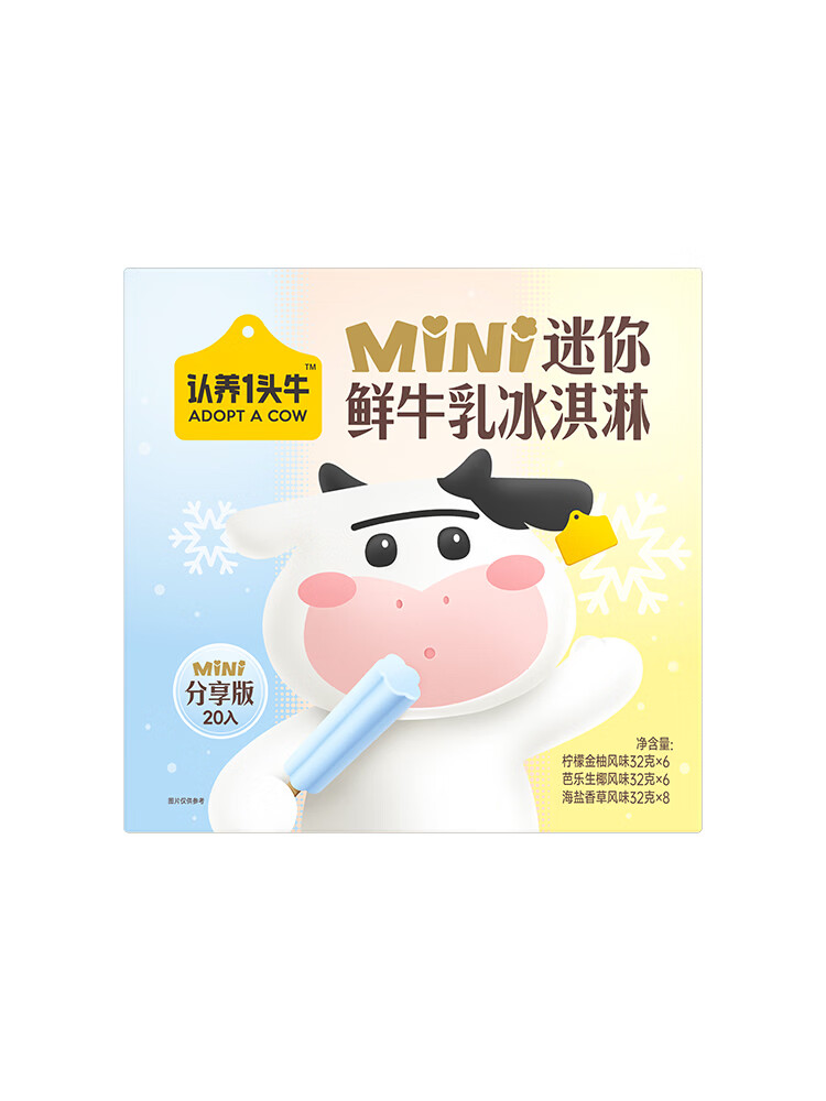 认养一头牛冰淇淋迷你冰爽芭乐生椰海盐香草柠檬金柚20支