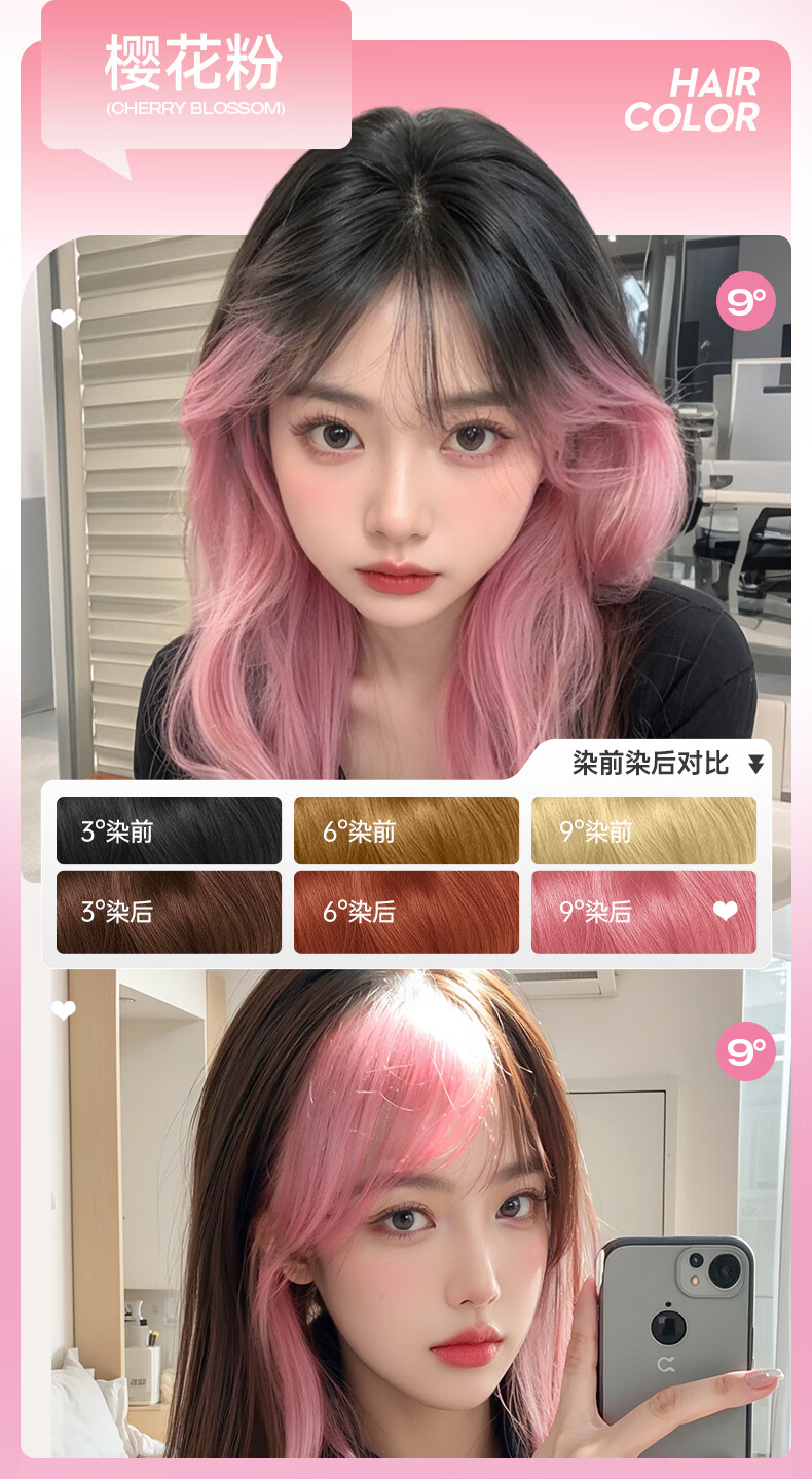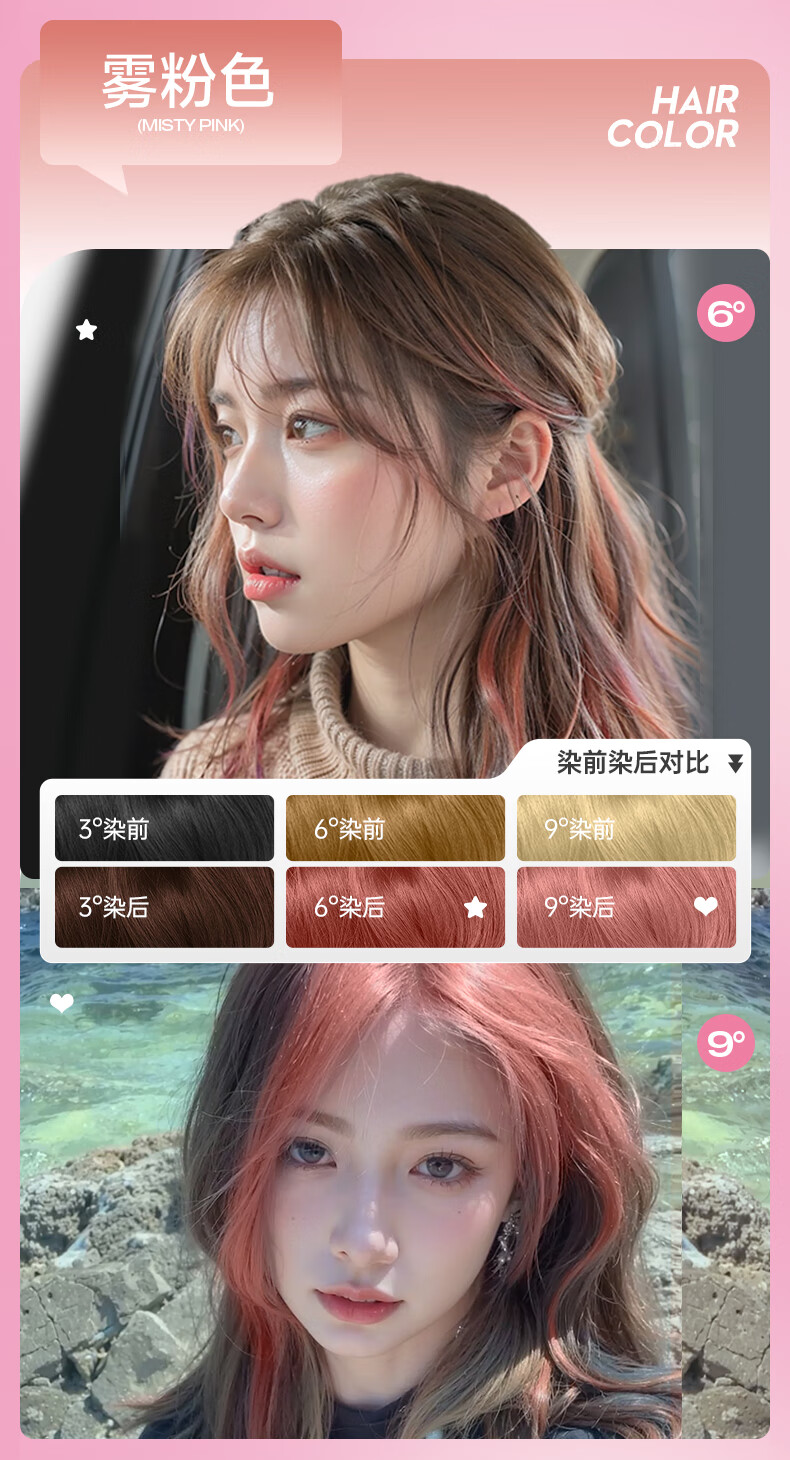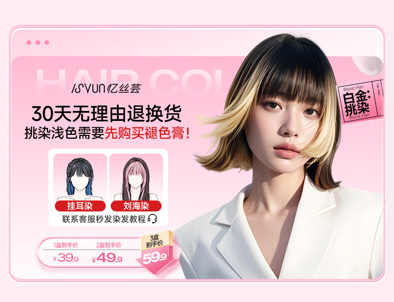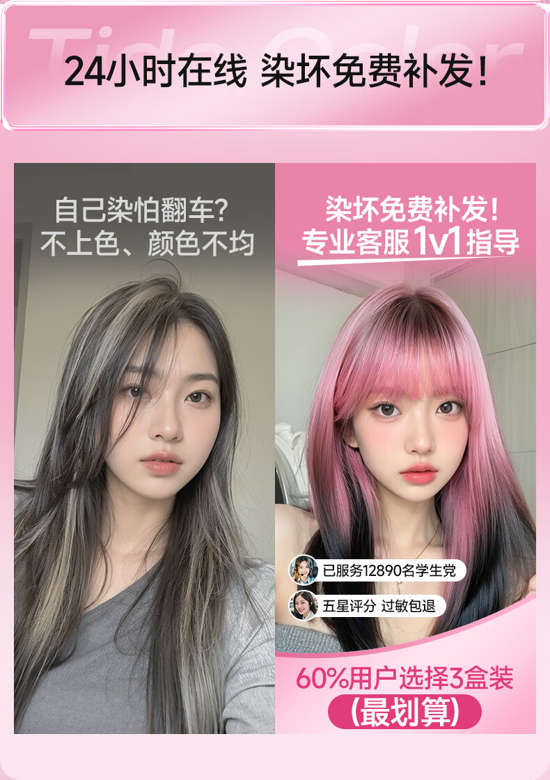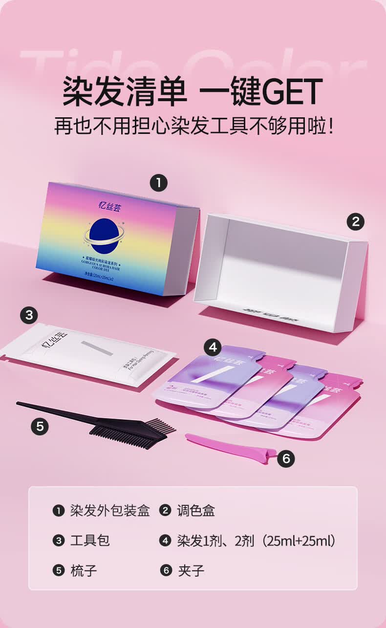 忆丝芸染发膏挑染挂耳染发剂漂发剂褪色膏蓝色粉色绿色植物男女士专用 雾粉色(7度)D-9