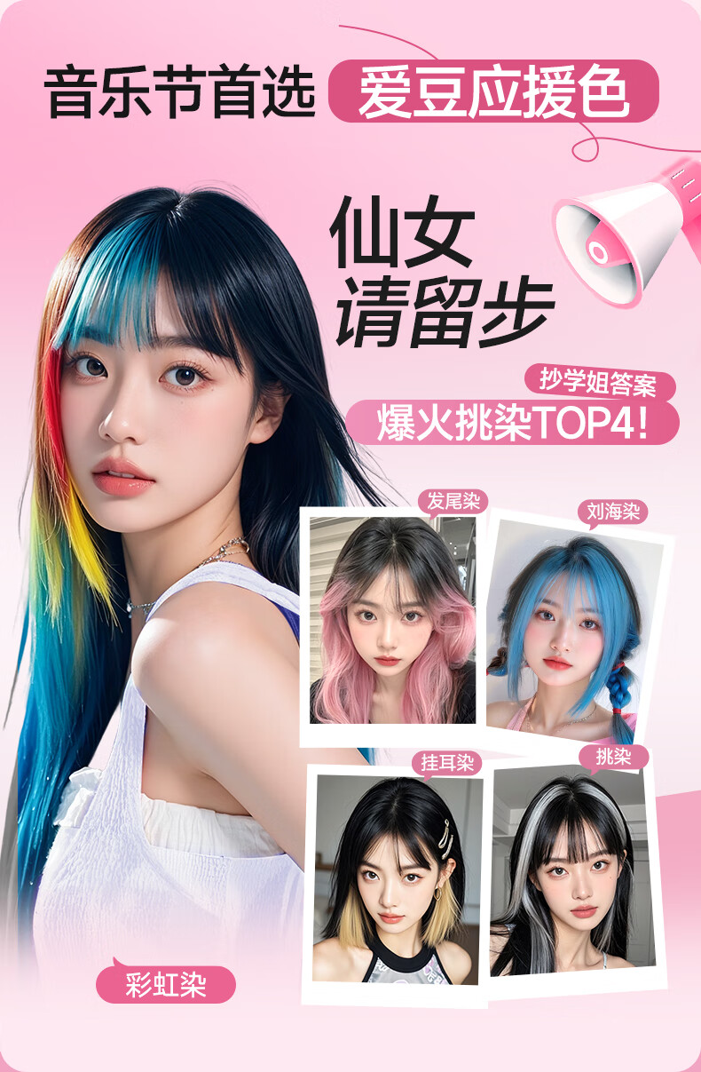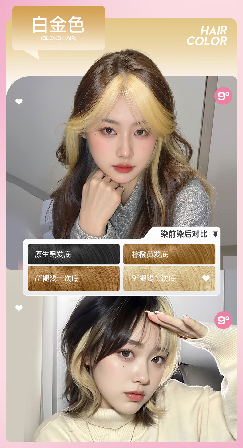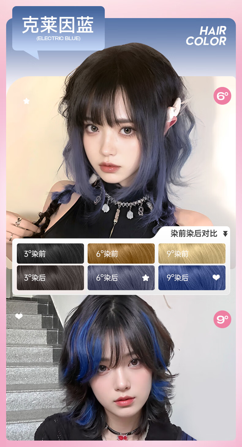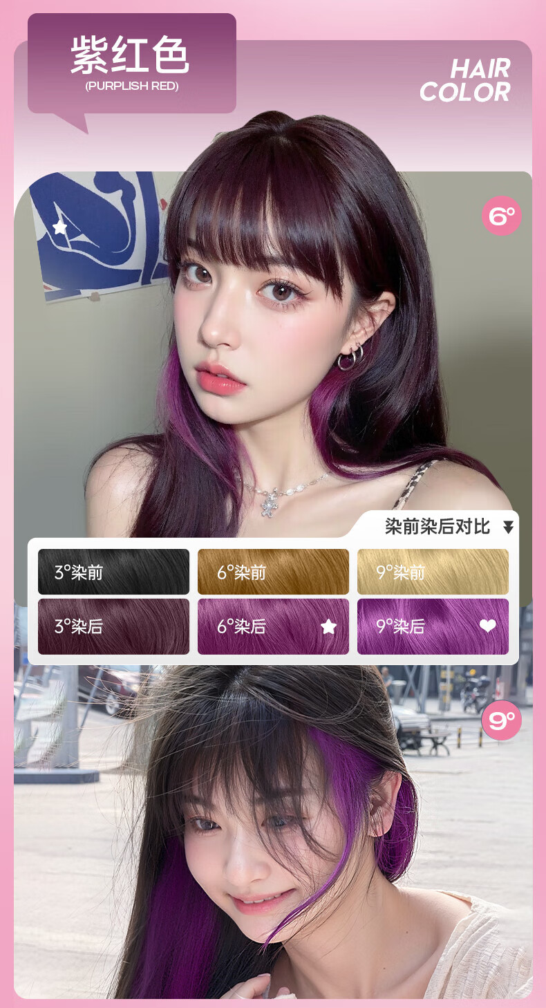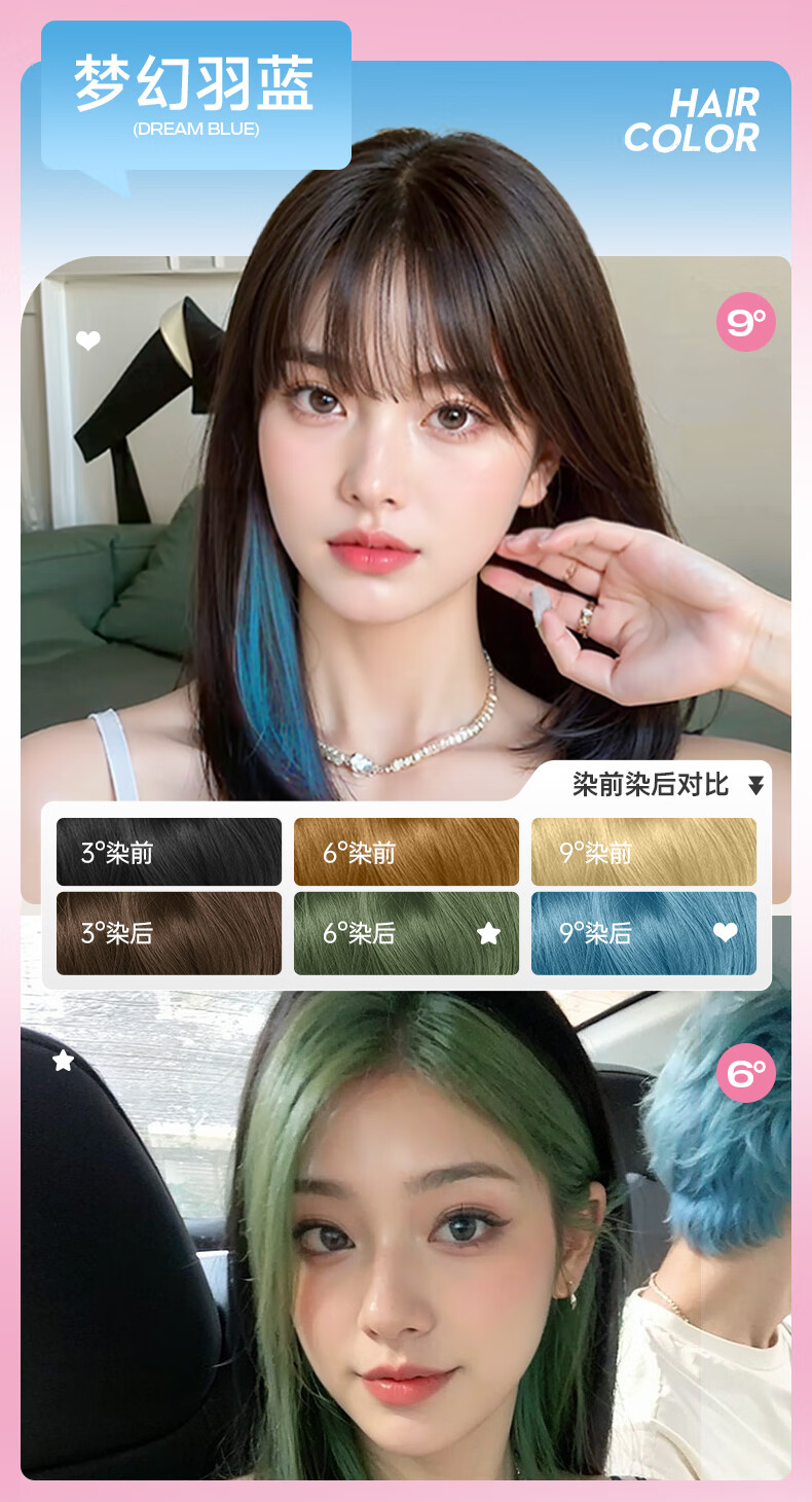忆丝芸染发膏挑染挂耳染发剂漂发剂褪色膏蓝色粉色绿色植物男女士专用 雾粉色(7度)D-9