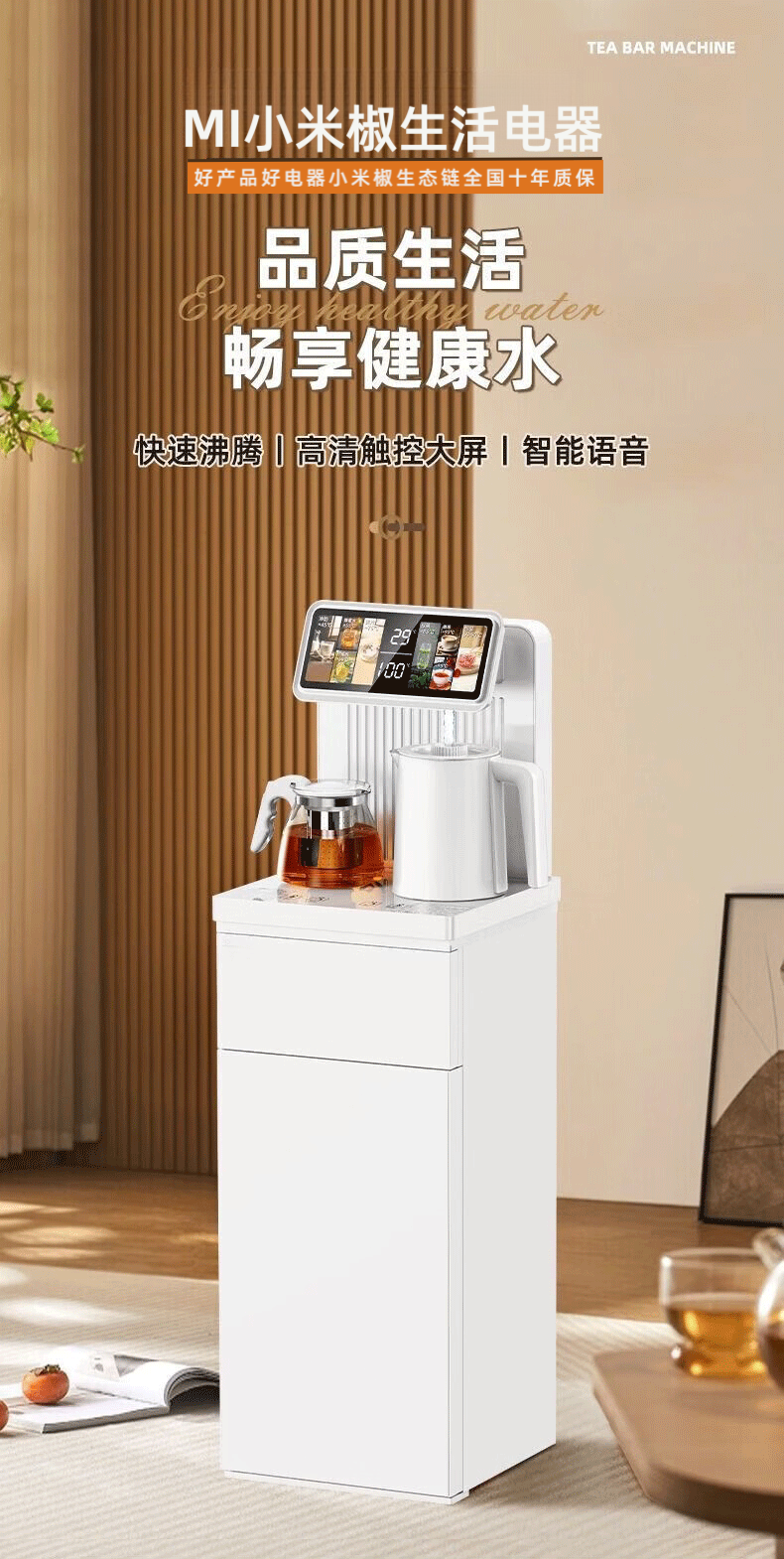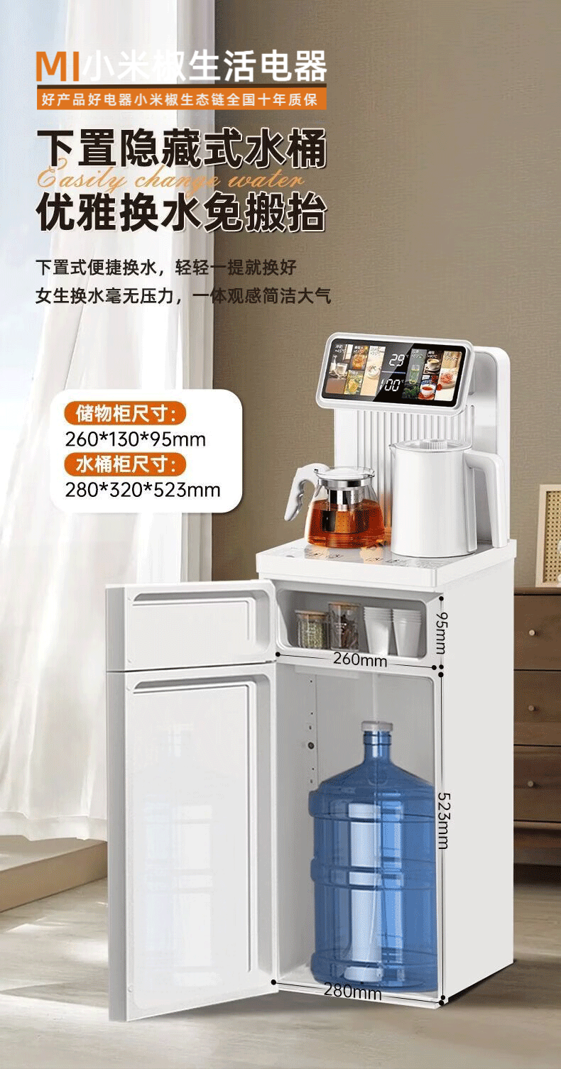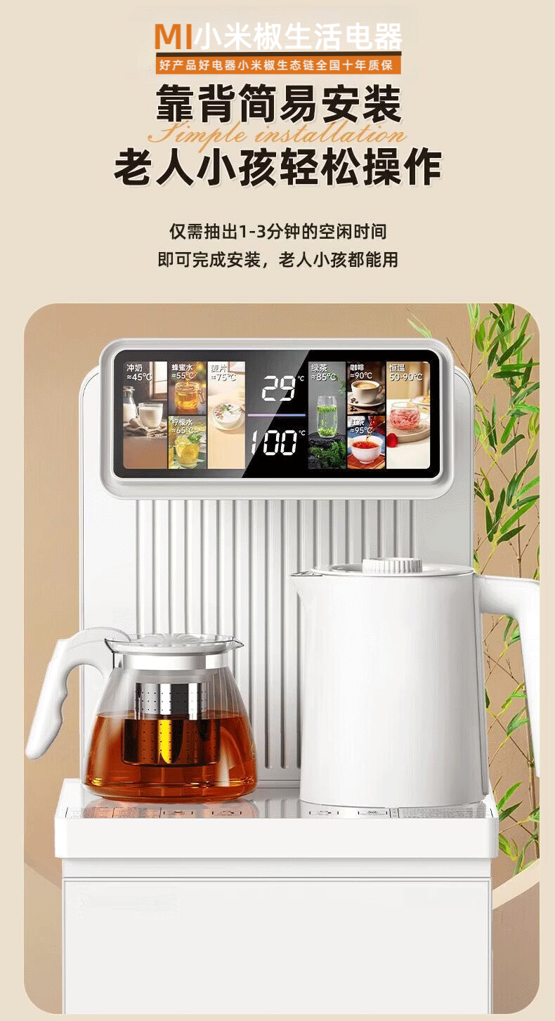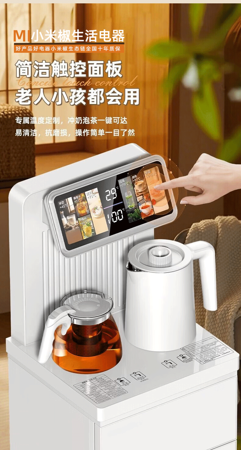 MI 小米椒智能茶吧机【3°C冰饮】若澜净饮家用立式高端客厅饮水机智能语音触控双显彩屏下置水桶防溢防干烧 【黑色】防溢水+语音+触控屏 即热制冷型