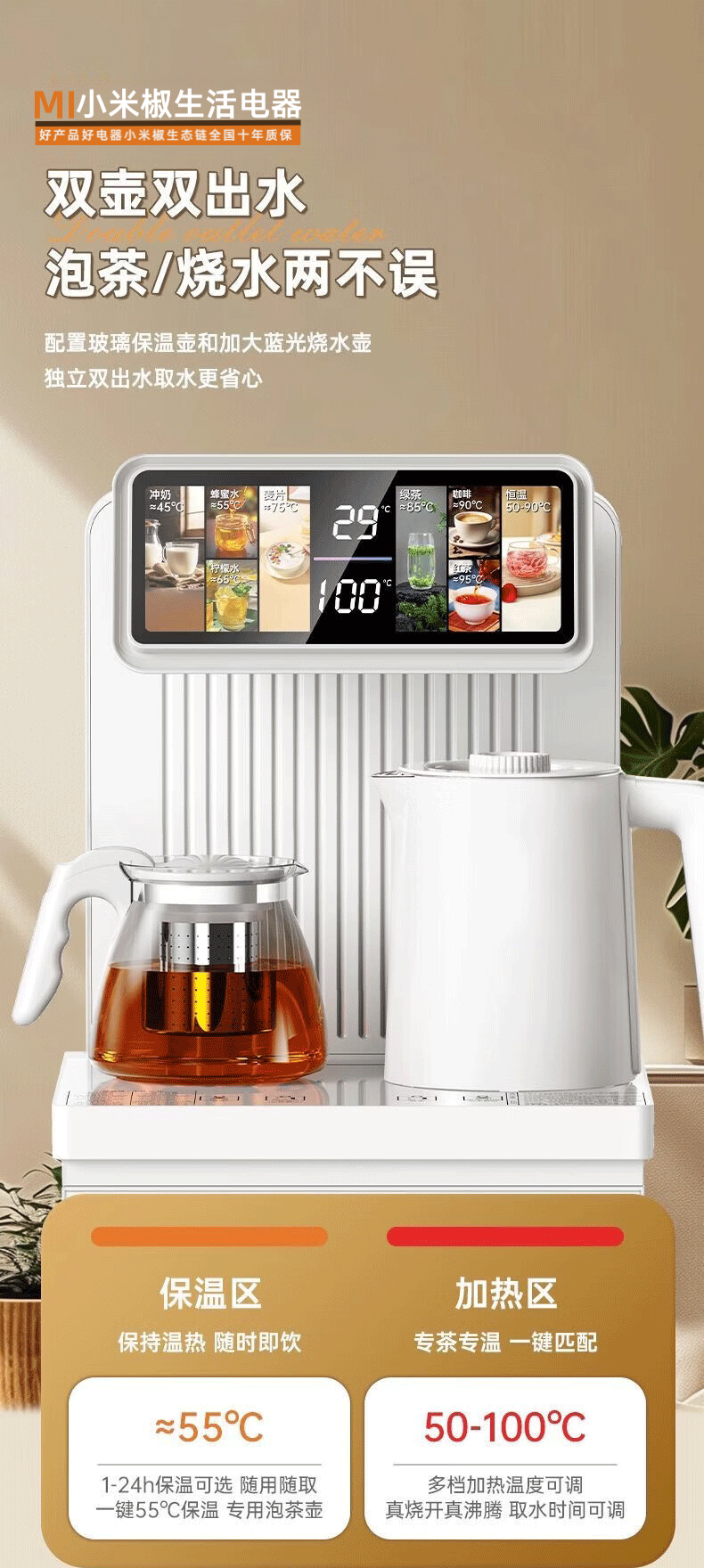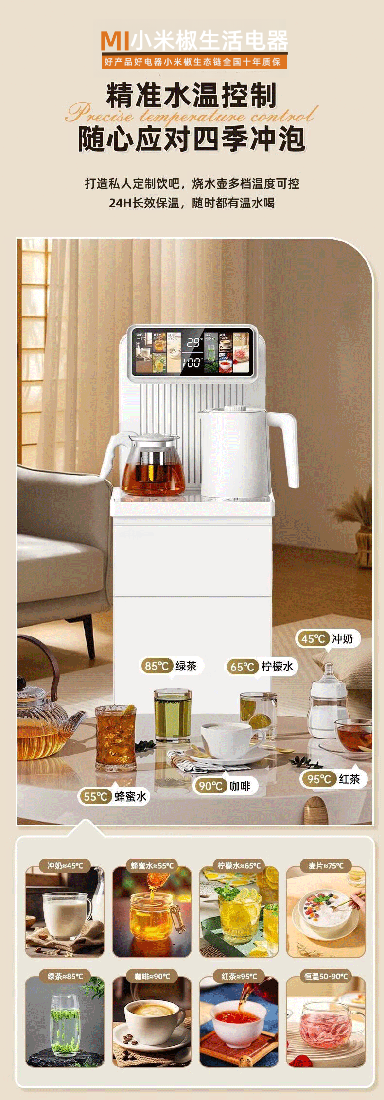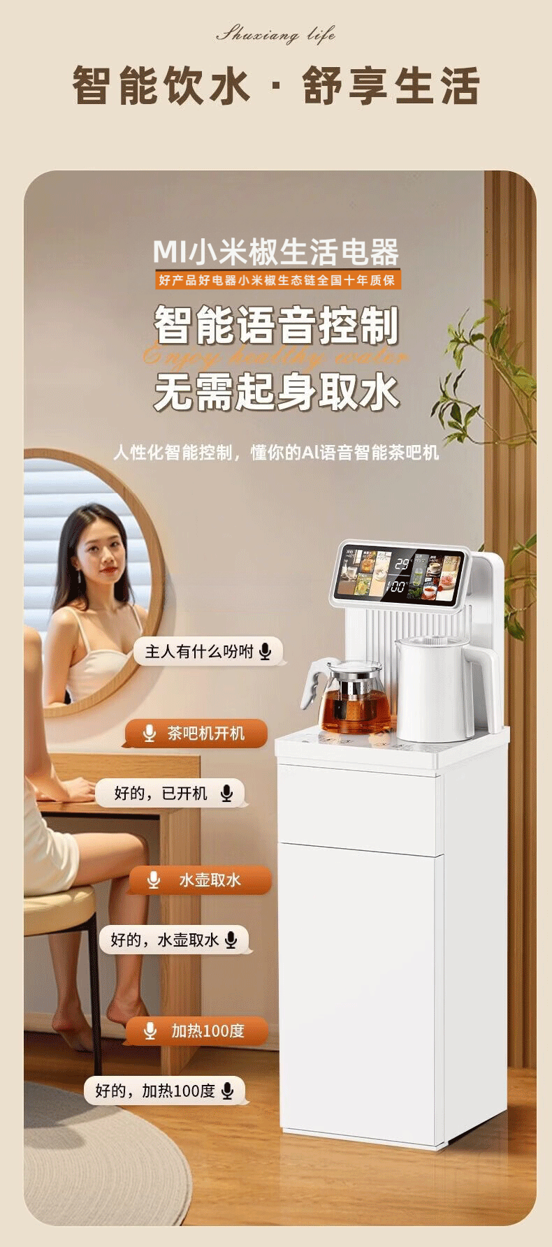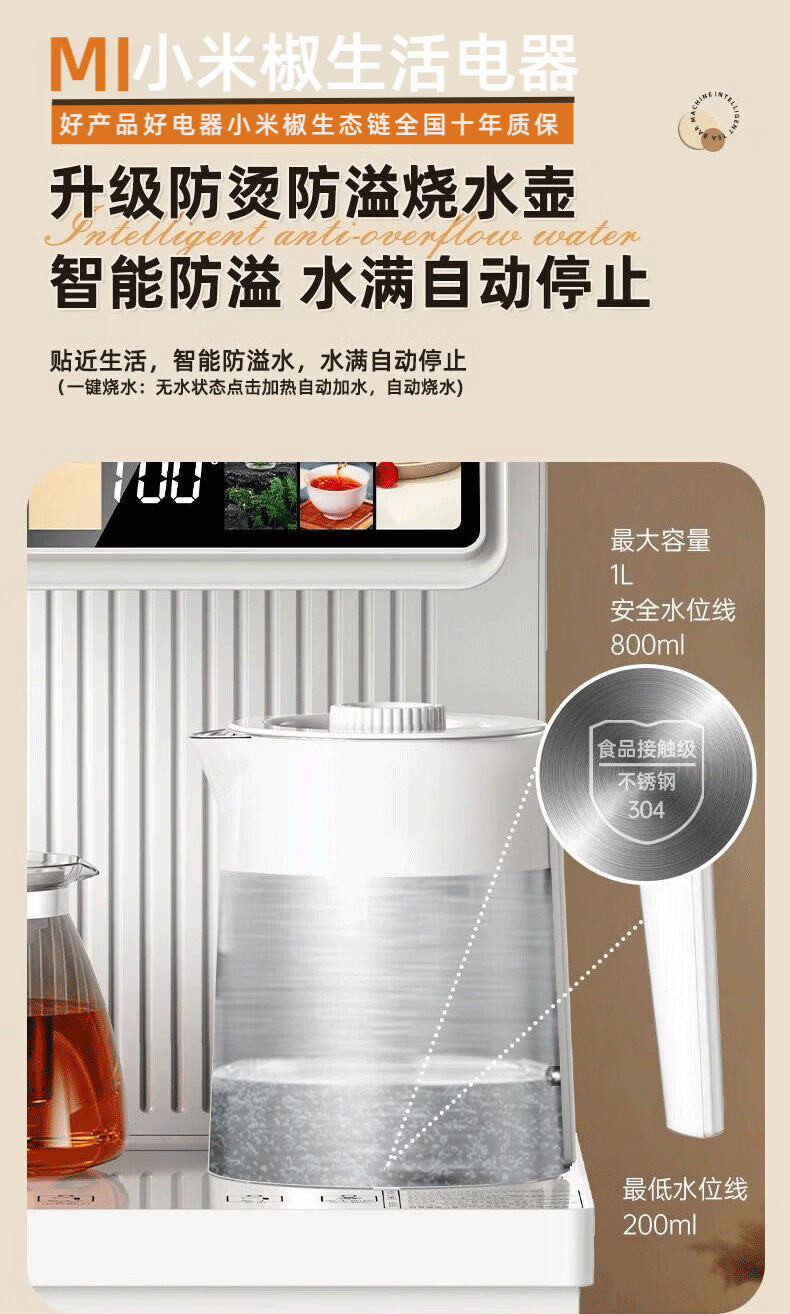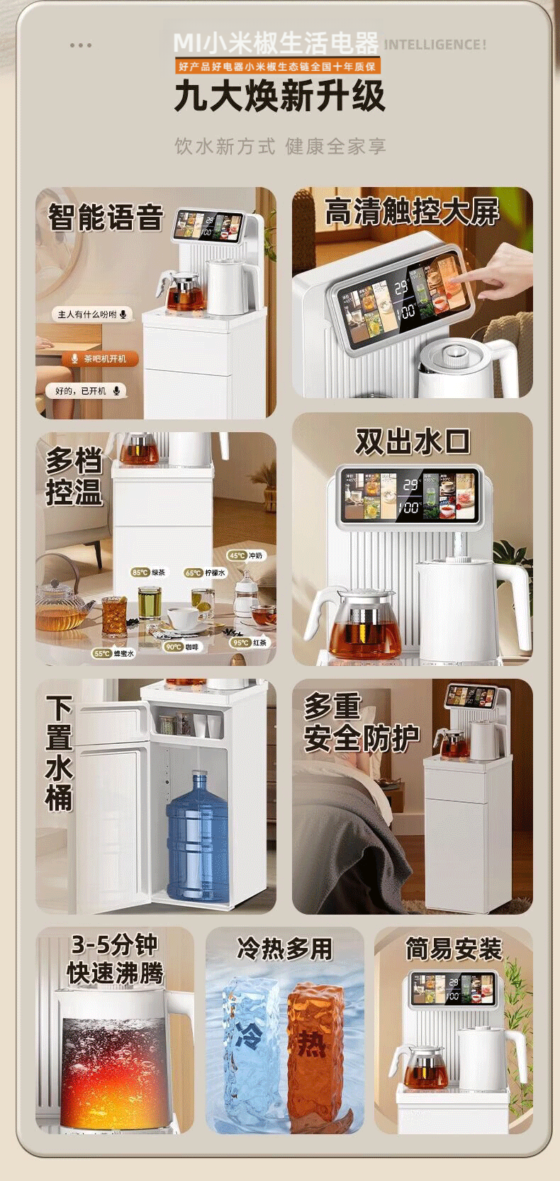 MI 小米椒智能茶吧机【3°C冰饮】若澜净饮家用立式高端客厅饮水机智能语音触控双显彩屏下置水桶防溢防干烧 【黑色】防溢水+语音+触控屏 即热制冷型