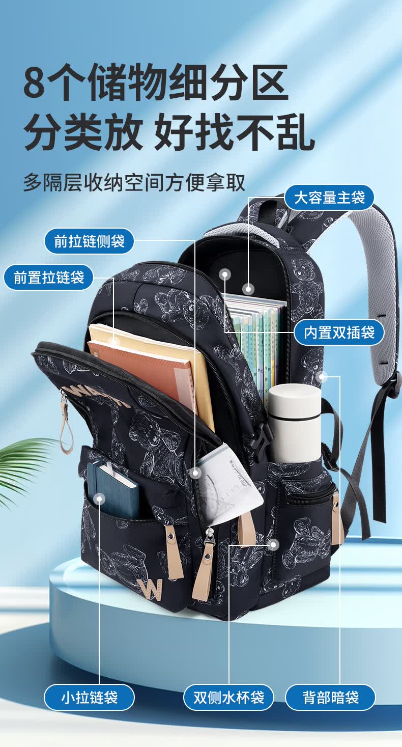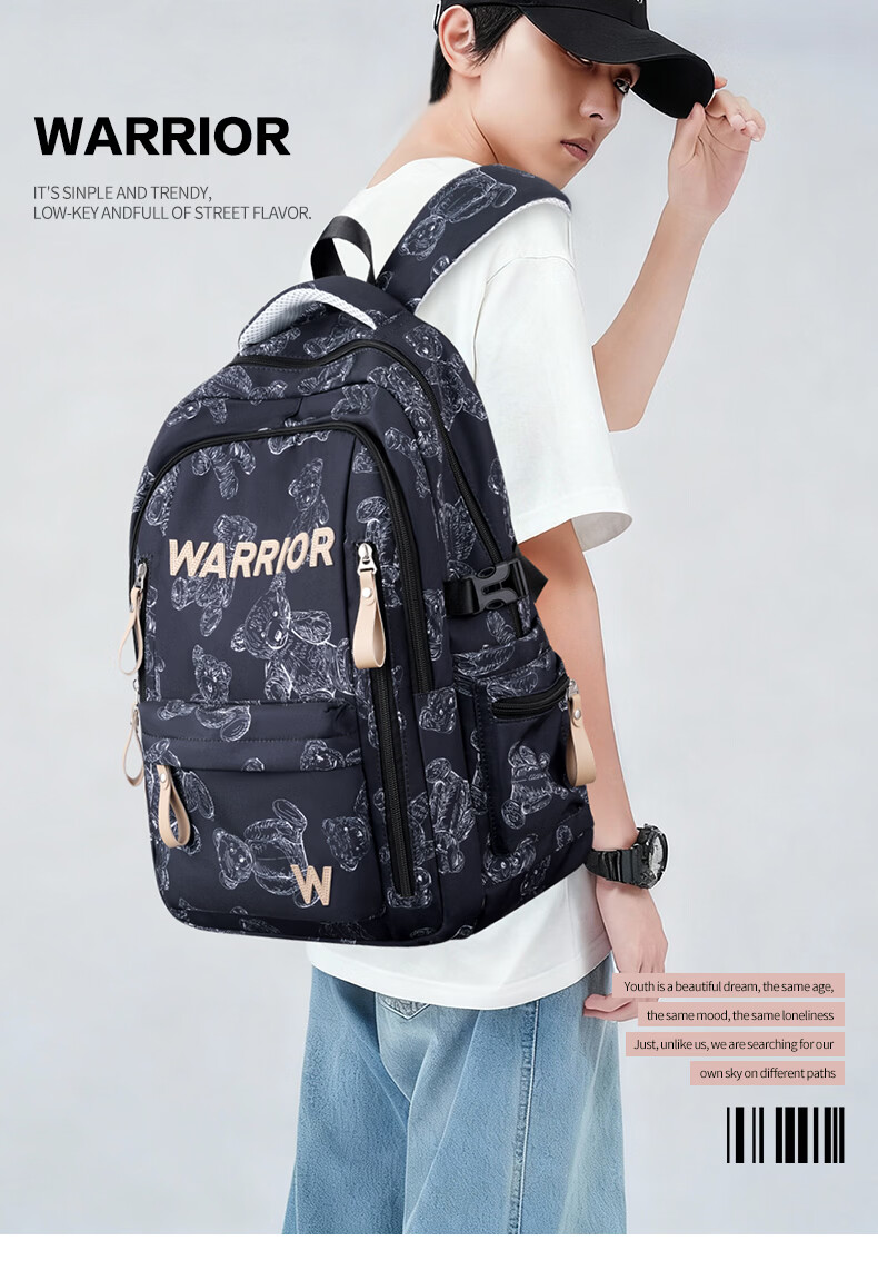 回力书包男生初中高中生大容量女生减负双肩包男款背包2026新款高颜值 黑色(2026年新款) 减负轻便