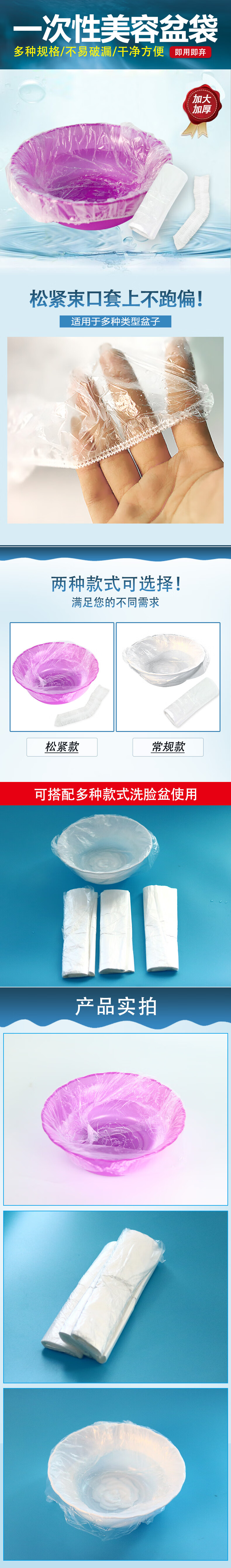 雅丽致一次性美容盆袋松紧套洗脸盆袋子盆套美容院一次性盆袋加厚塑料袋 洗脸盆平口袋1000只【长30*宽40】