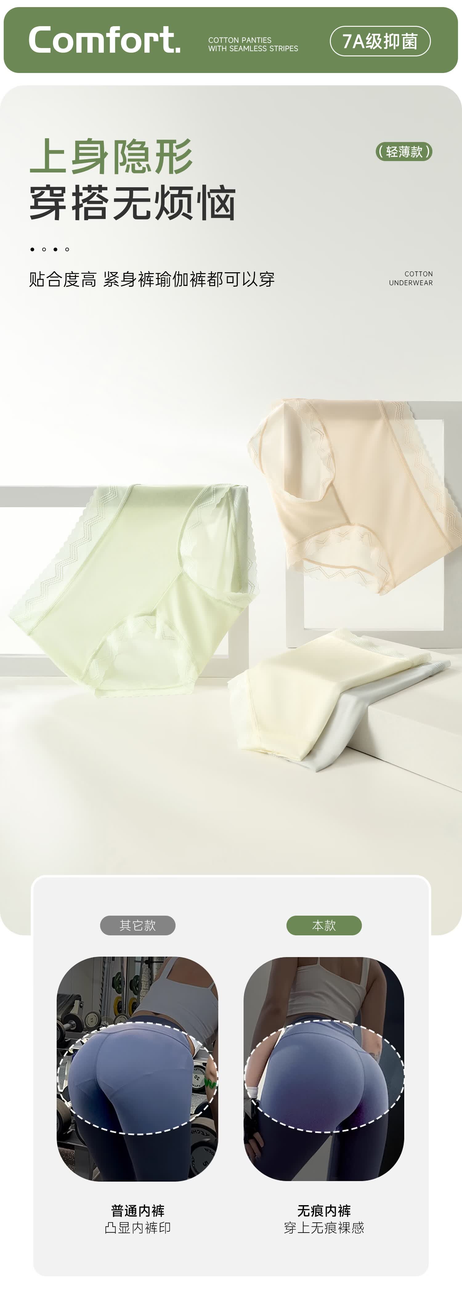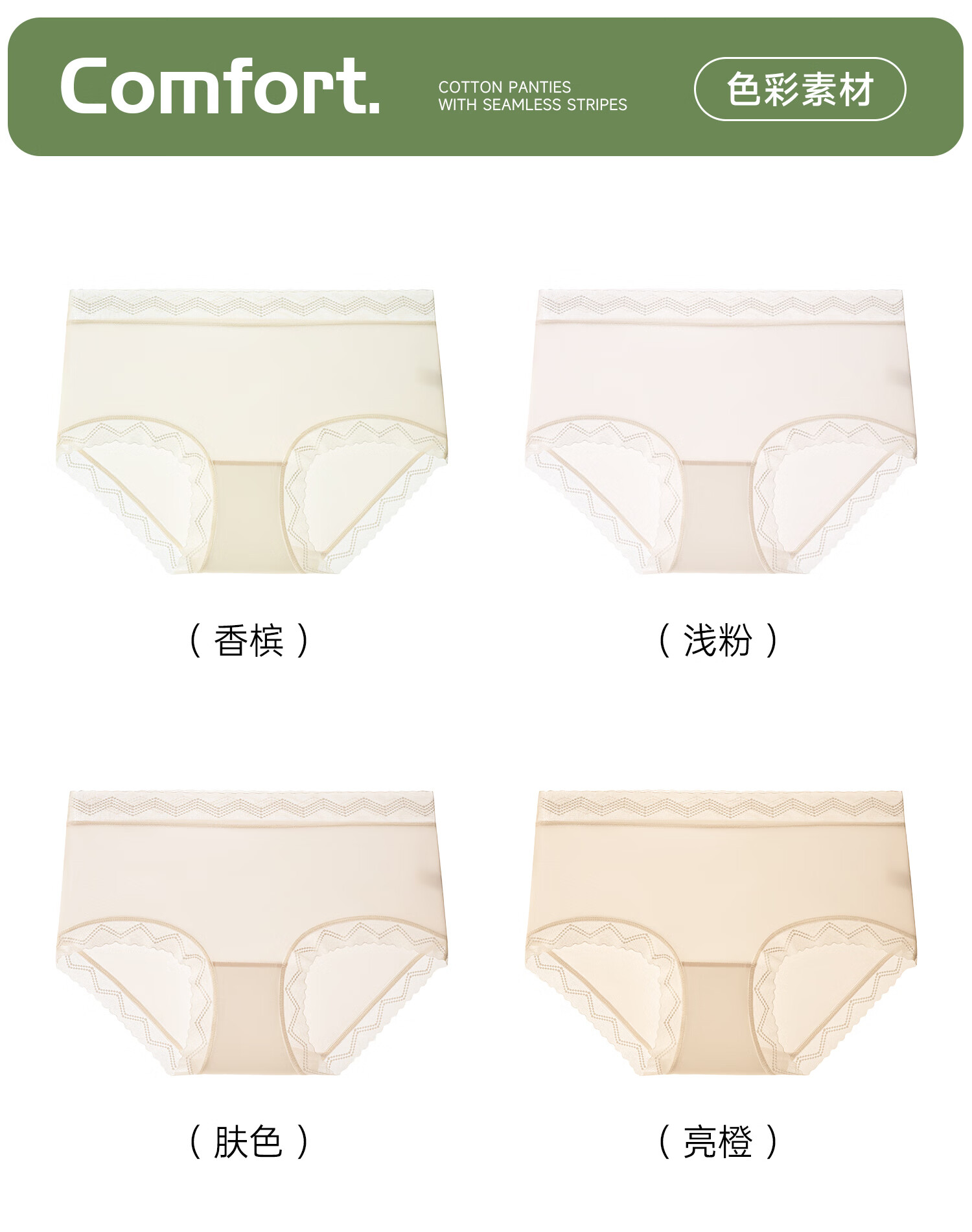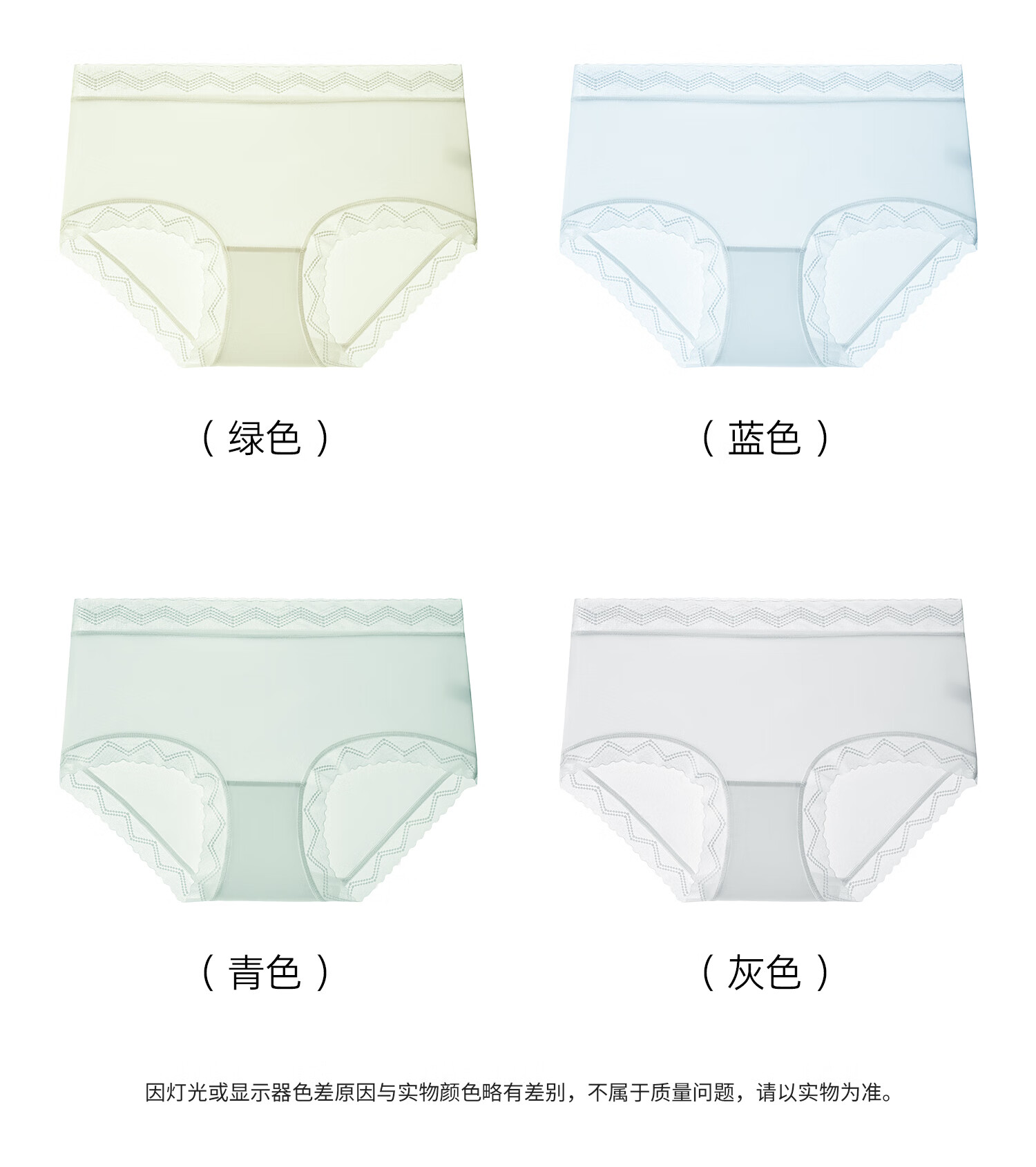 都市丽人女士内裤女7A抑菌底档亲肤舒适裸感无痕轻薄透气中腰甜美少女短裤 灰色+蓝色+肤色+绿色 L 建议【115-135斤】