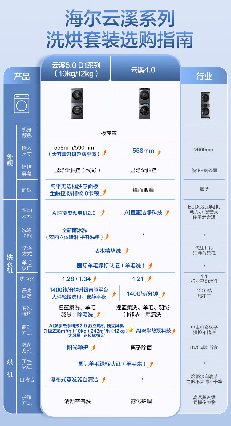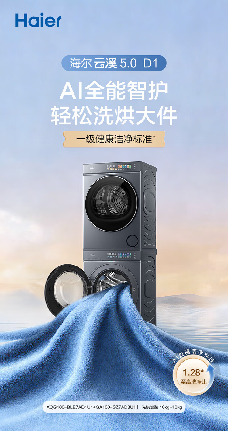 海尔(Haier)云溪5.0首发滚筒洗烘套装10/12公斤全自动滚筒洗衣机+双擎热泵烘干机AI直驱双效除菌家电补贴85折 洗烘套装 10kg |1.28洗净比+热泵烘干机