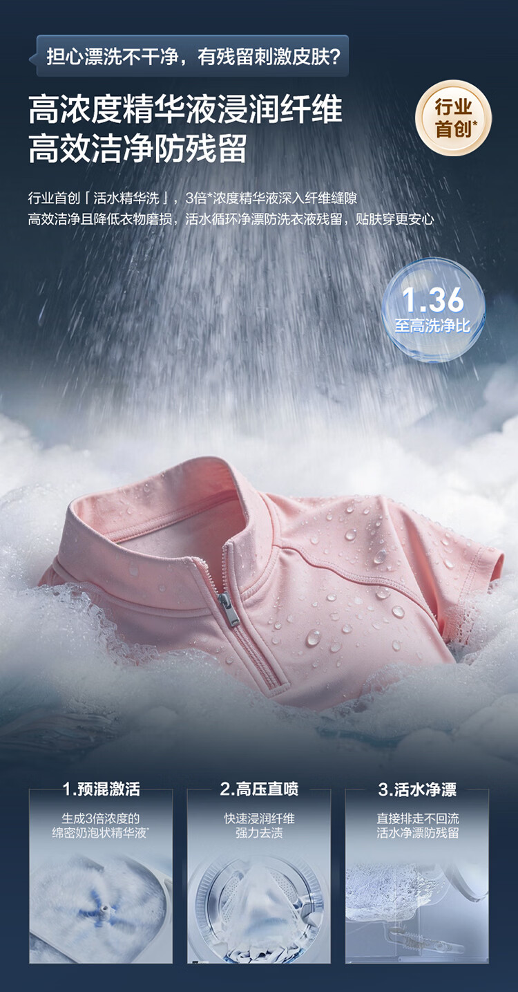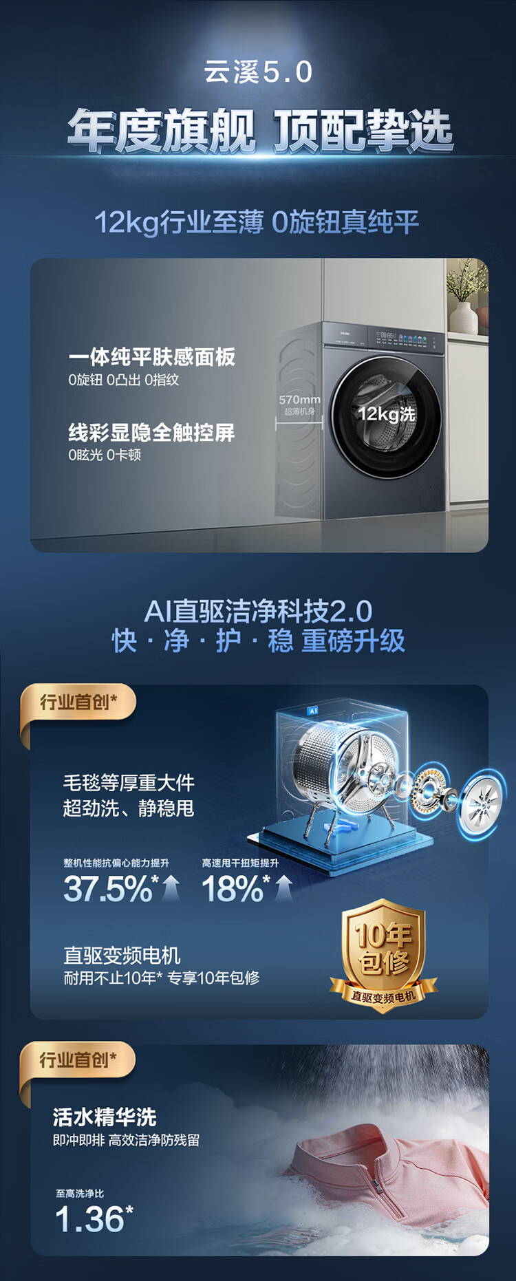海尔(Haier)云溪5.0滚筒洗衣机全自动10公斤/12公斤家用大容量超薄平嵌AI直驱变频双效除菌一级能效 国家补贴 【王炸新品】10公斤 1.36超高洗净比+精华洗 滚筒