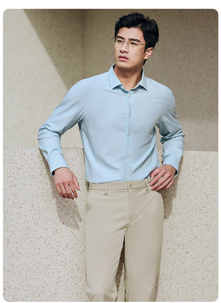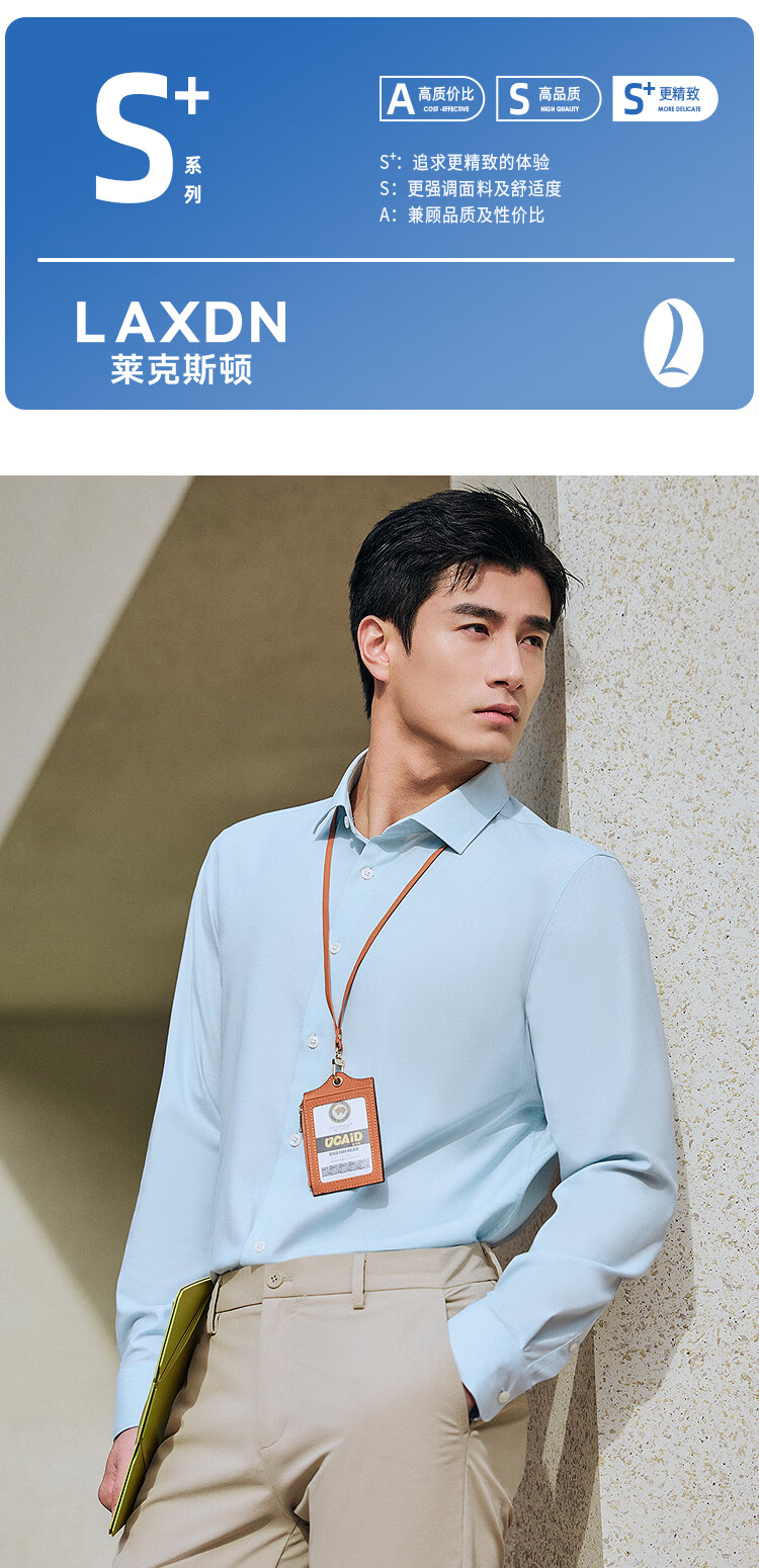 莱克斯顿(laxdn)长袖衬衫男春秋【竹纤维x桑蚕丝】吸湿排汗透气商务正装衬衫男 孔雀蓝 S