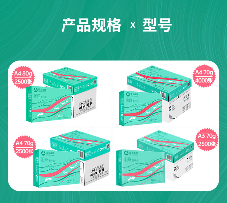 亚太森博派部落A4打印纸 80g 500张*8包 不卡纸 双面复印纸高性价比 整箱4000张【专业造纸厂牌】