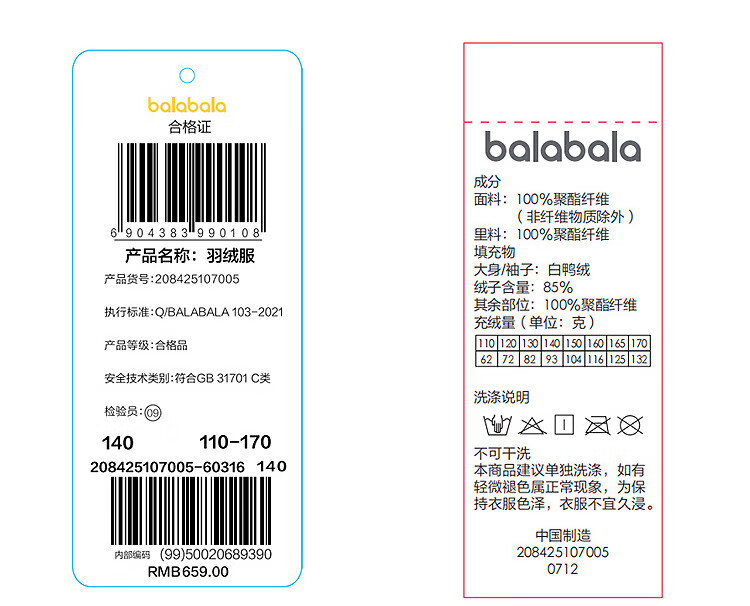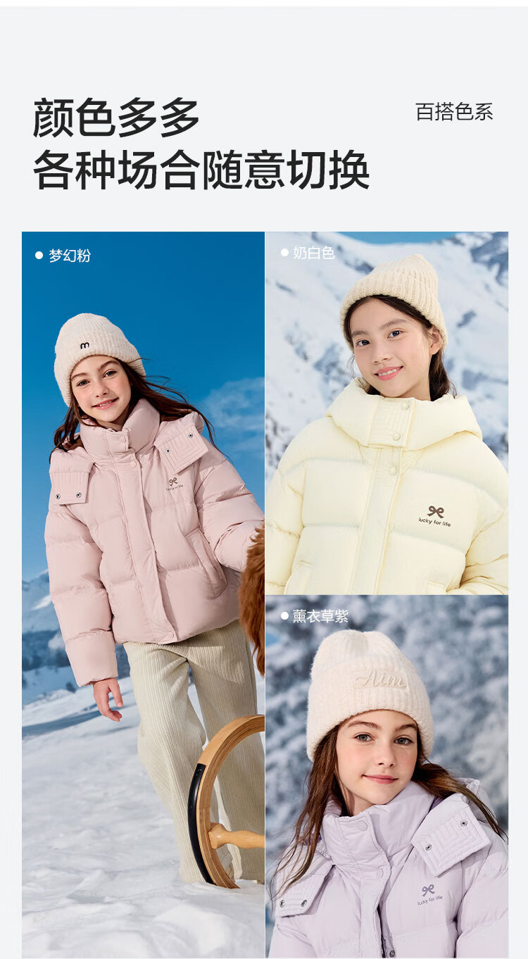 巴拉巴拉balaOne儿童羽绒服女童户外防风保暖冬外套2025撞色208425107005