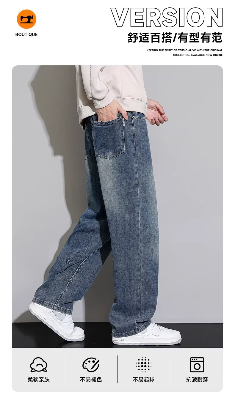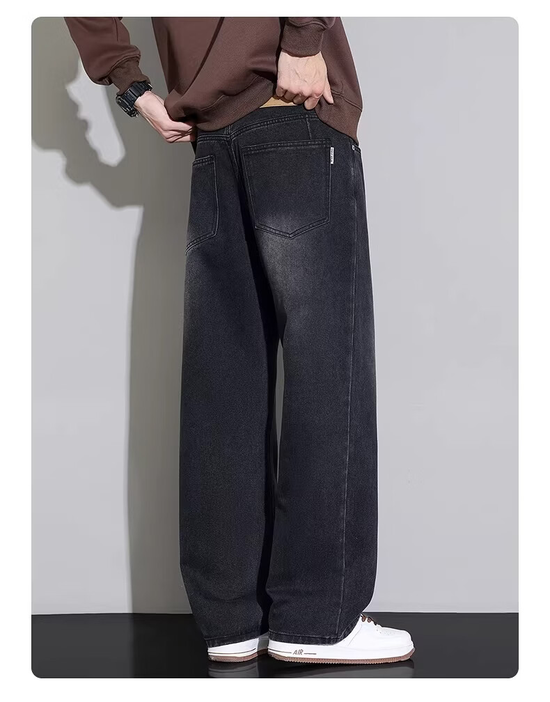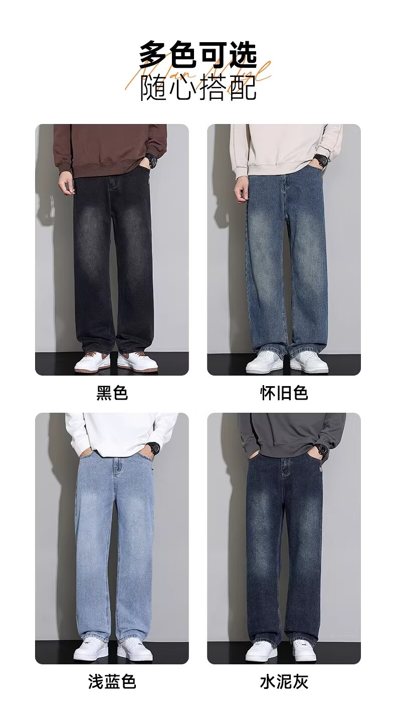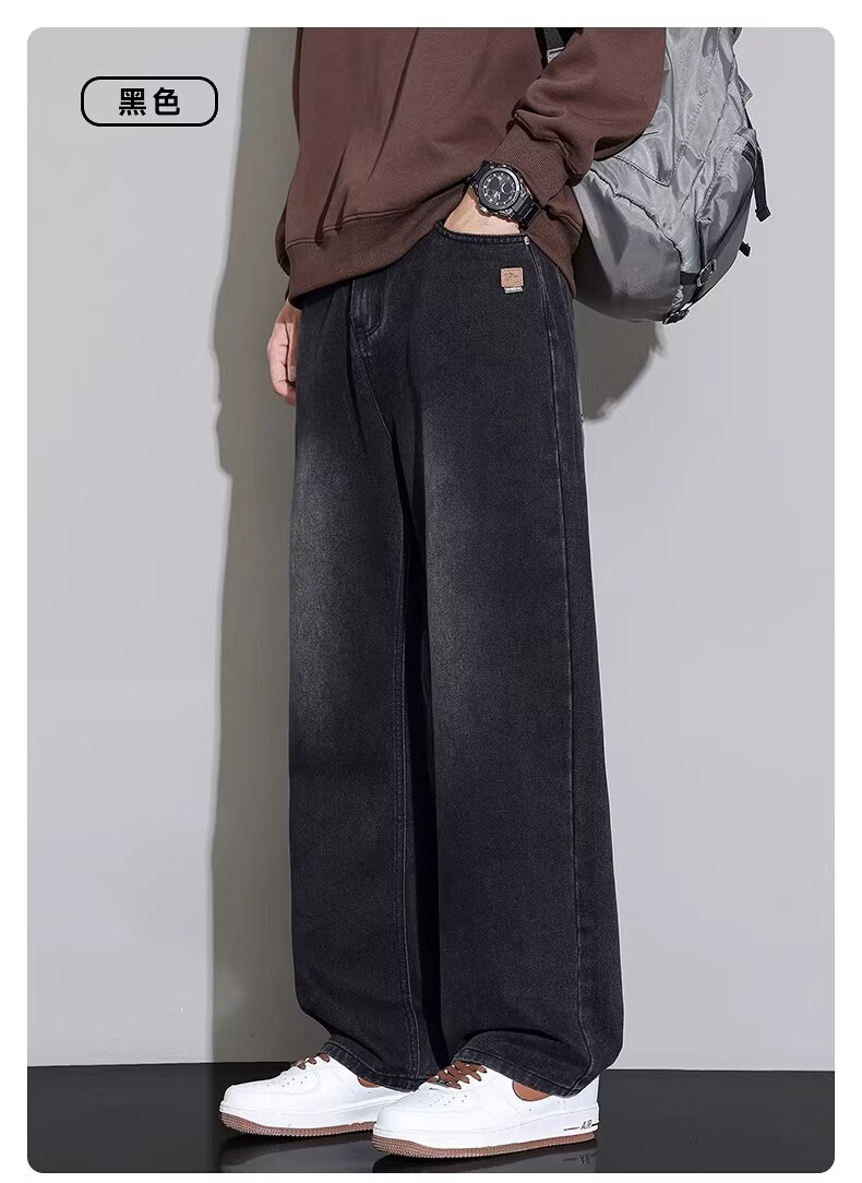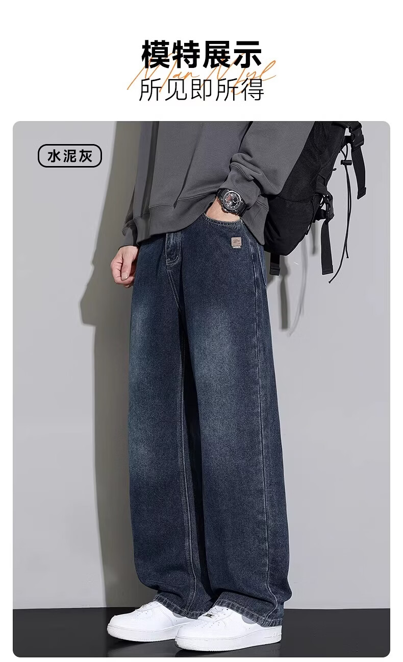 真维斯(Jeanswest)2026春季加绒牛仔裤男士青少年宽松直筒裤子休闲加肥加大码弯刀裤 水泥灰 28 【建议90-105斤】