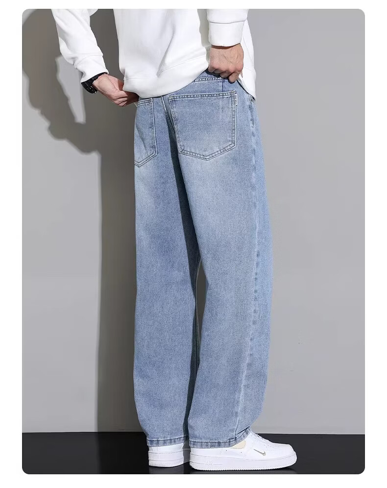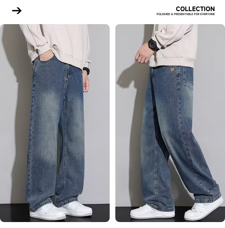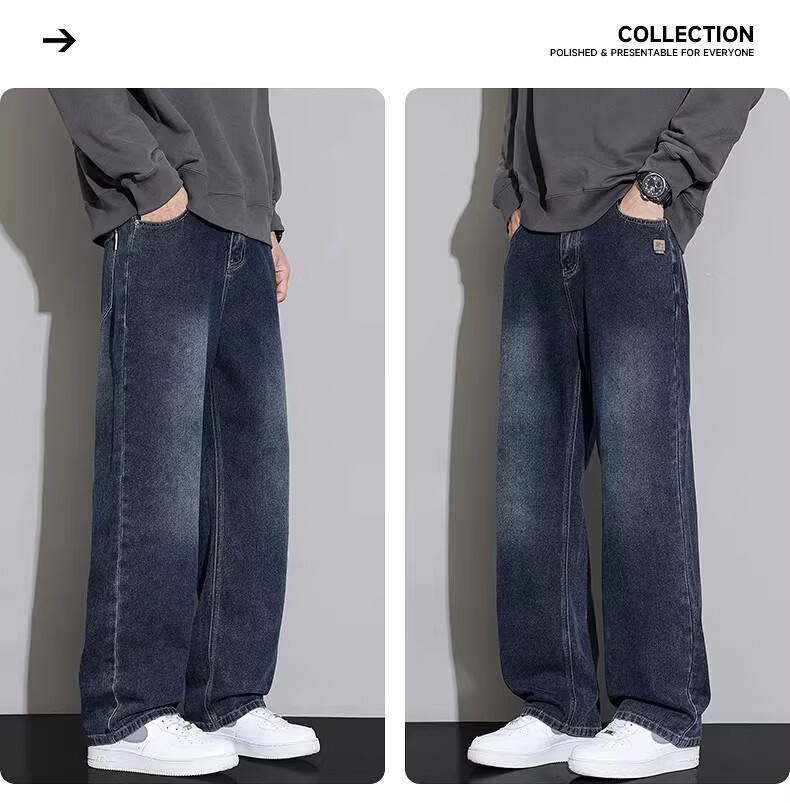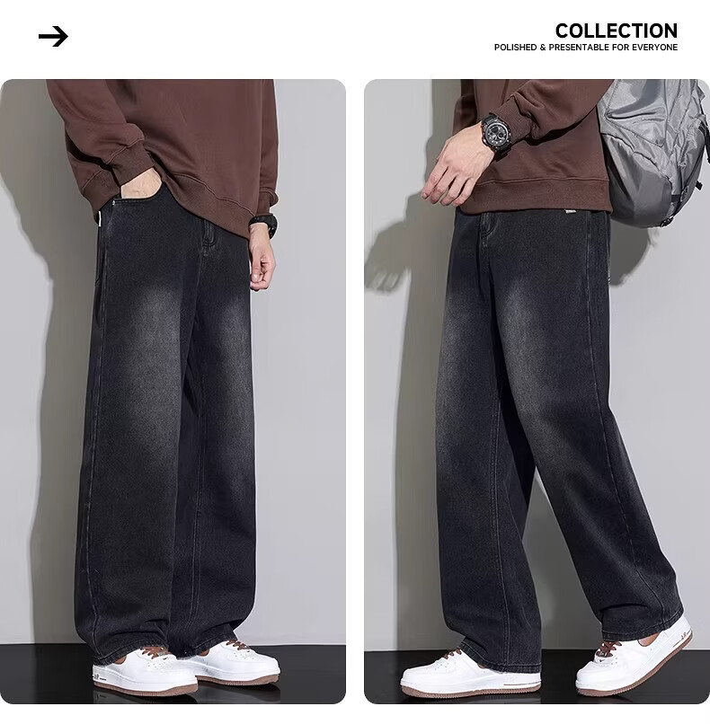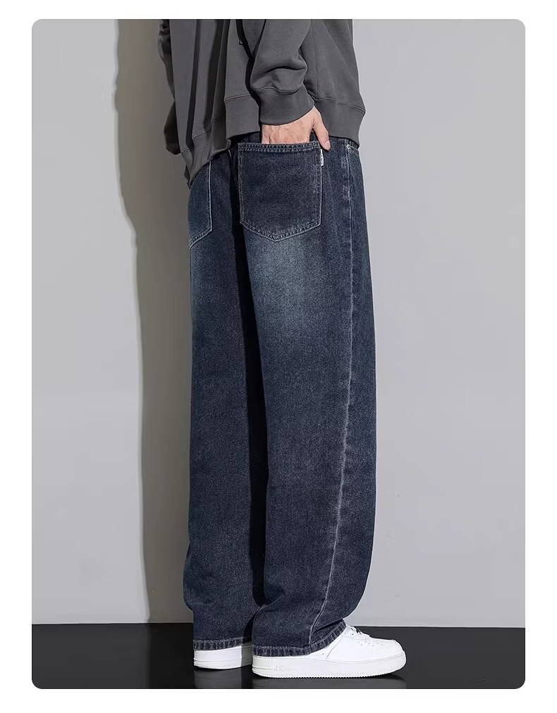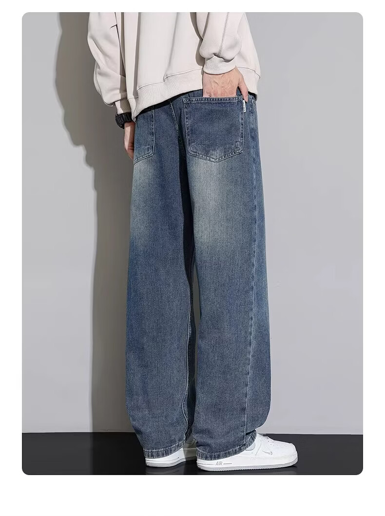 真维斯(Jeanswest)2026春季加绒牛仔裤男士青少年宽松直筒裤子休闲加肥加大码弯刀裤 水泥灰 28 【建议90-105斤】