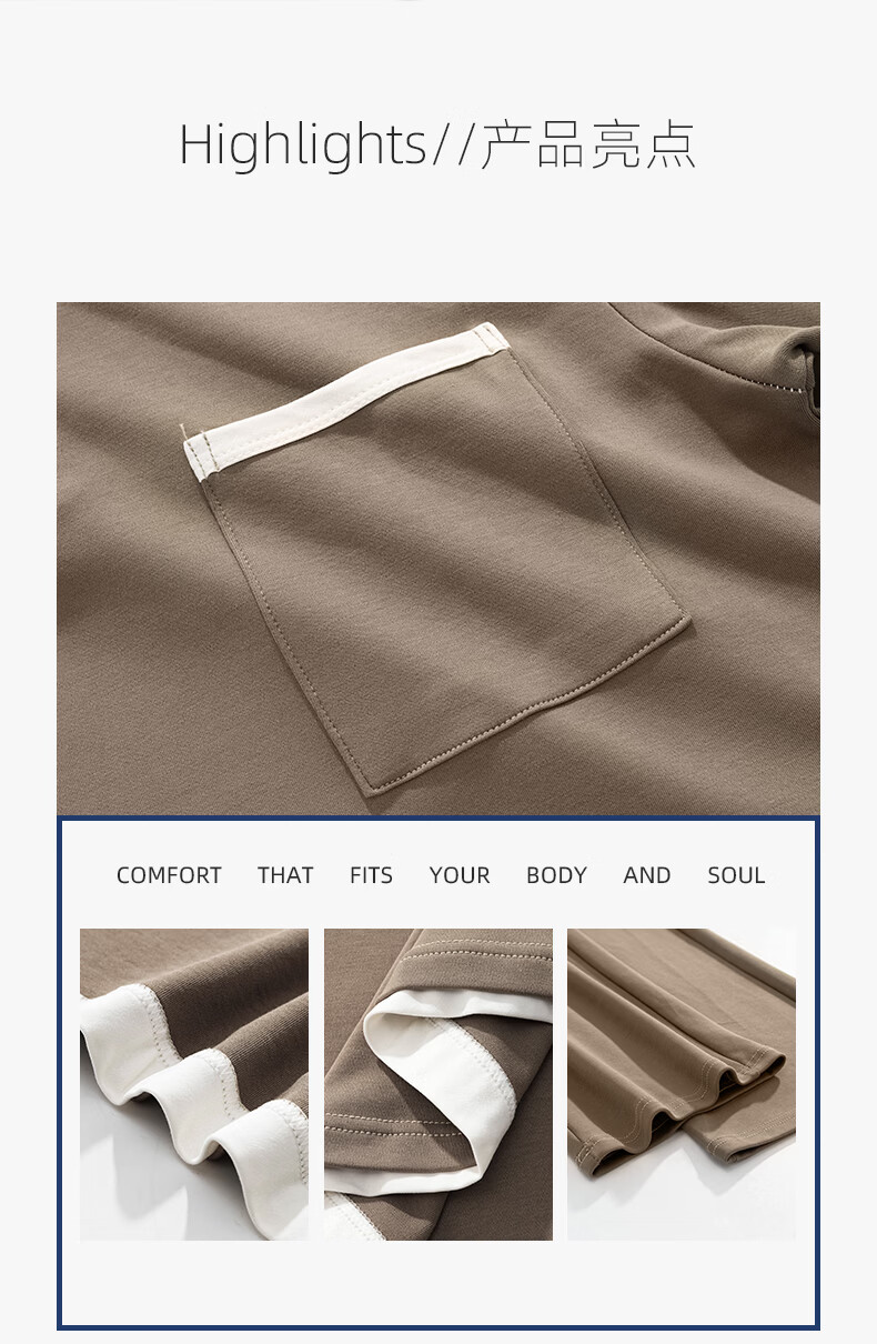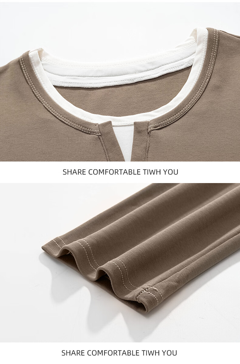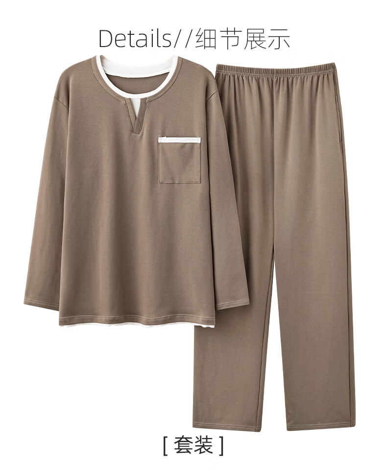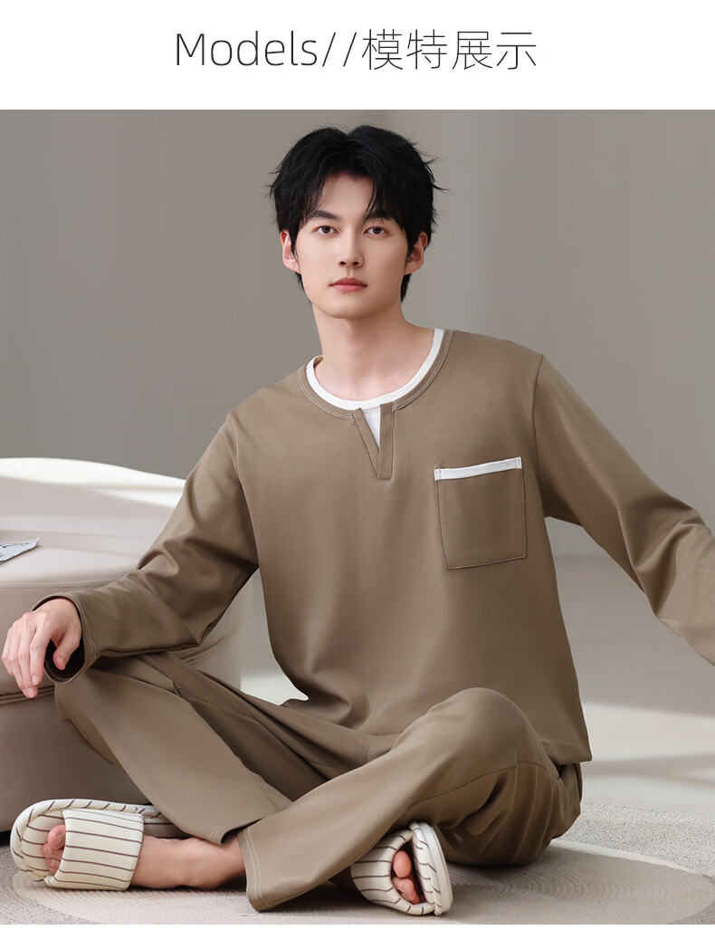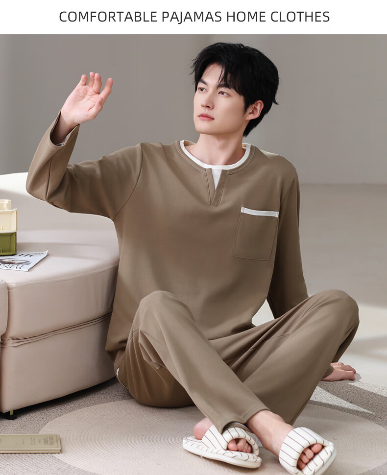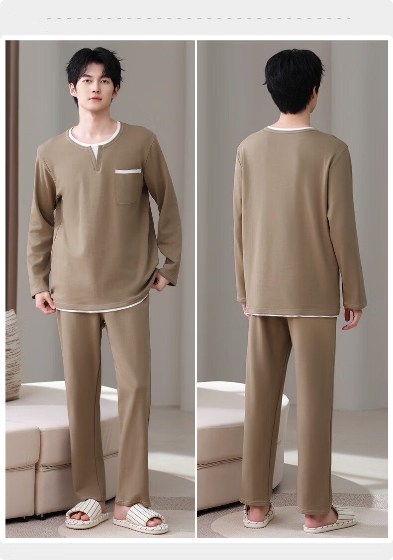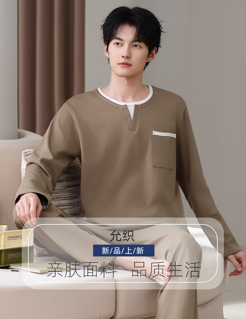 允织莱卡纯棉睡衣男士秋季长袖简约休闲宽松男款运动可外穿家居服套装 8603-浅咖 L (170) :建议100-135斤穿着