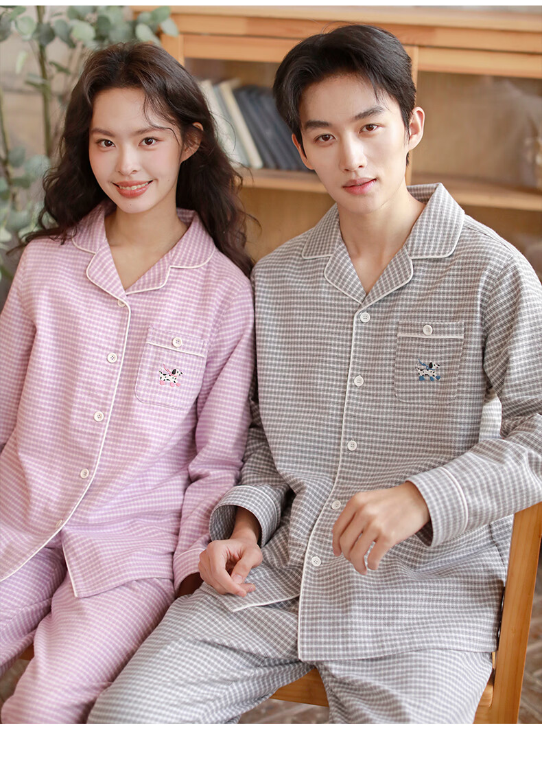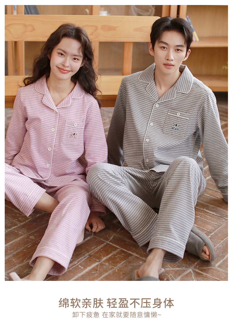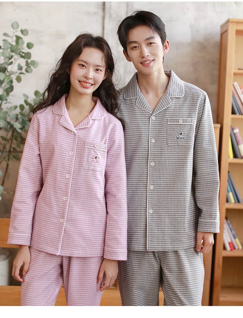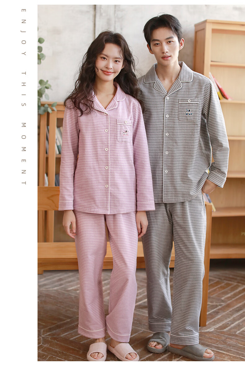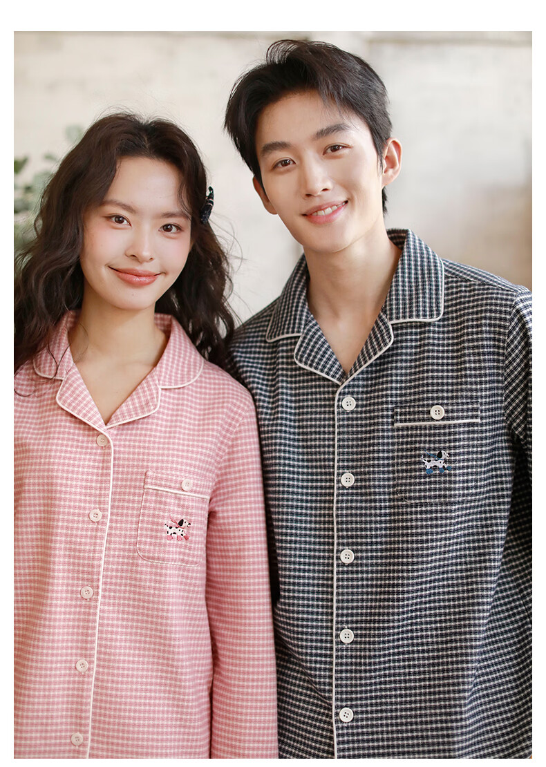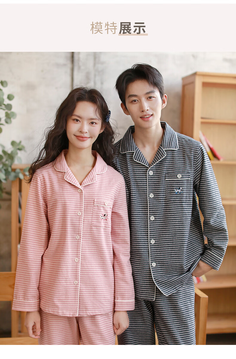 蔓秋 MEJU靴子狗情侣男士女士磨毛长袖长裤家居服套装 粉色 女 M 男士140斤以内 女士110斤以内