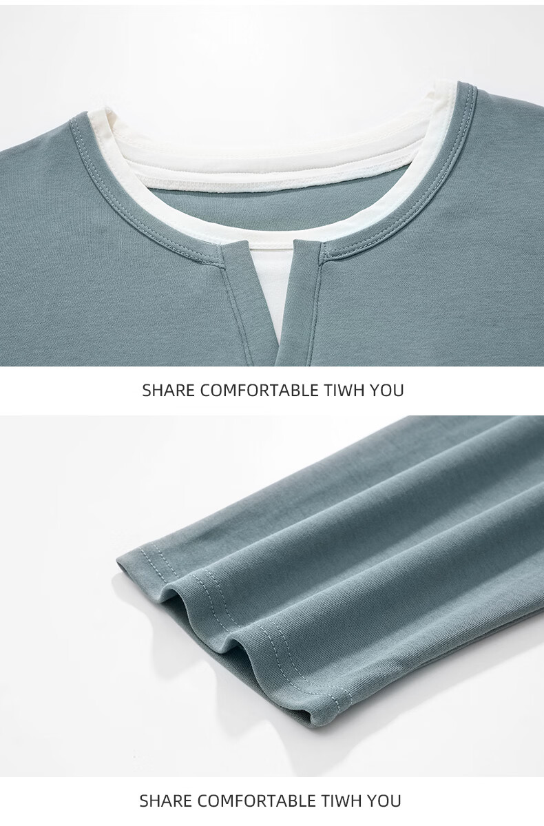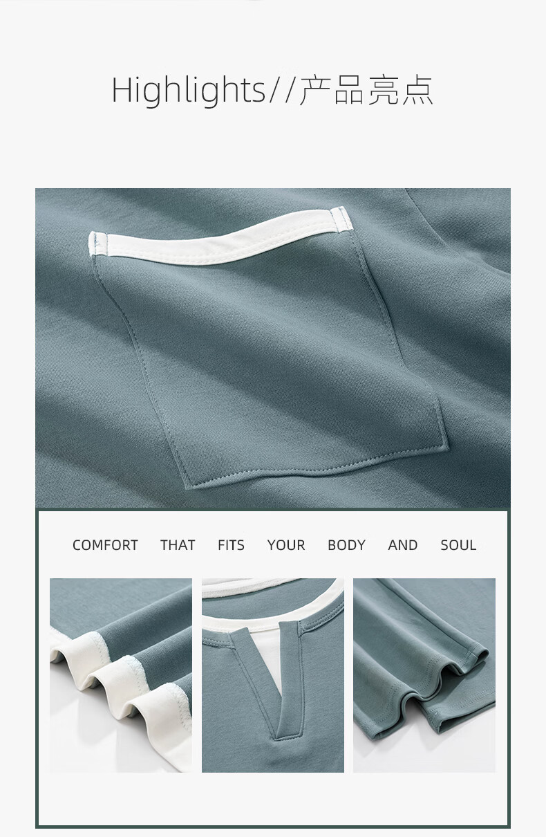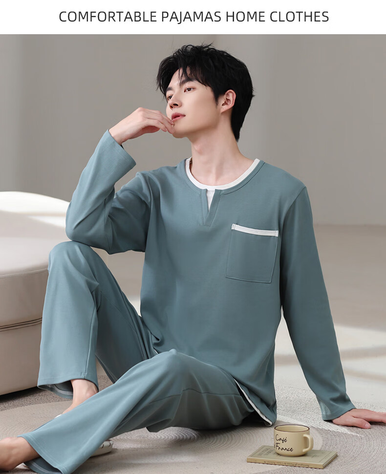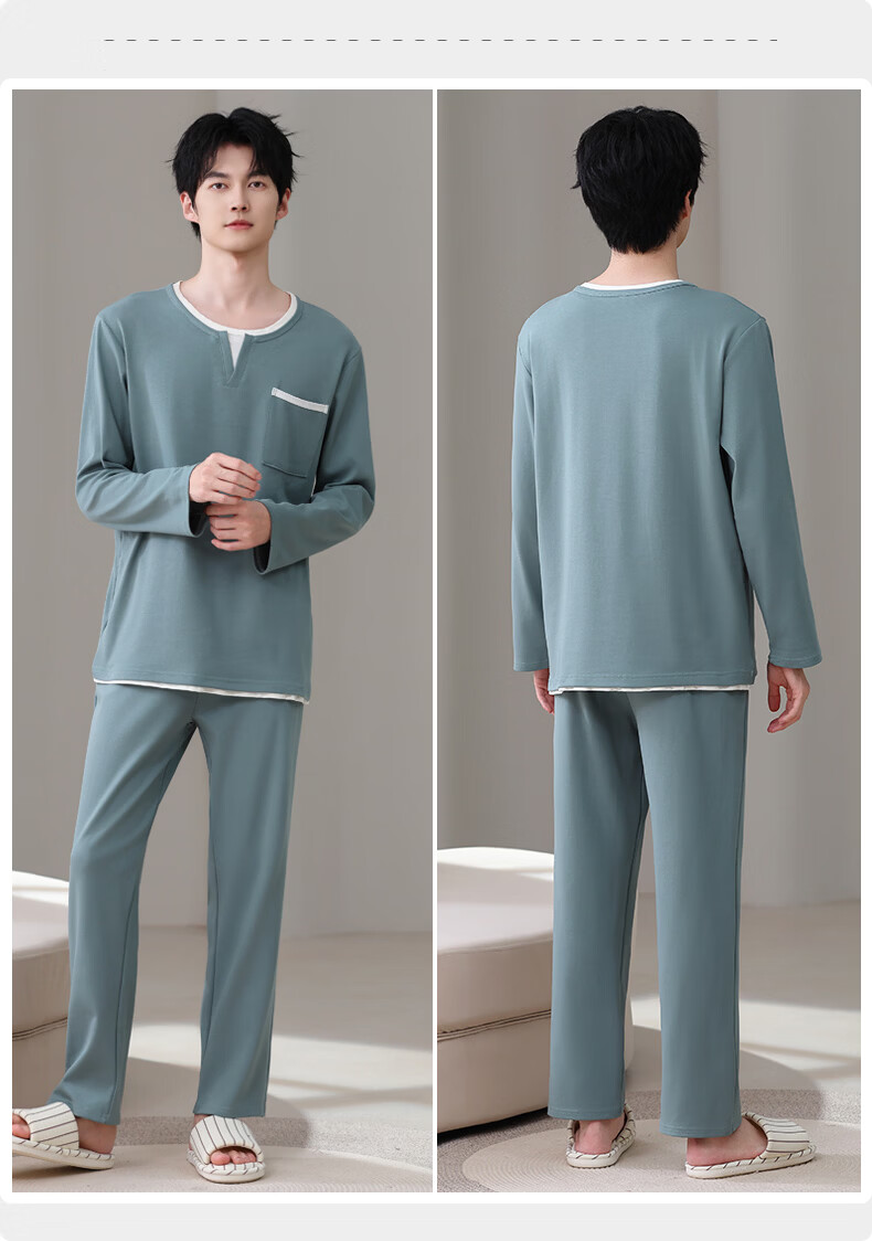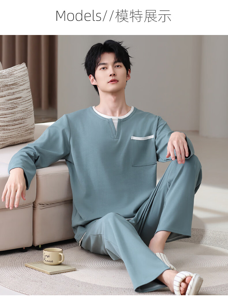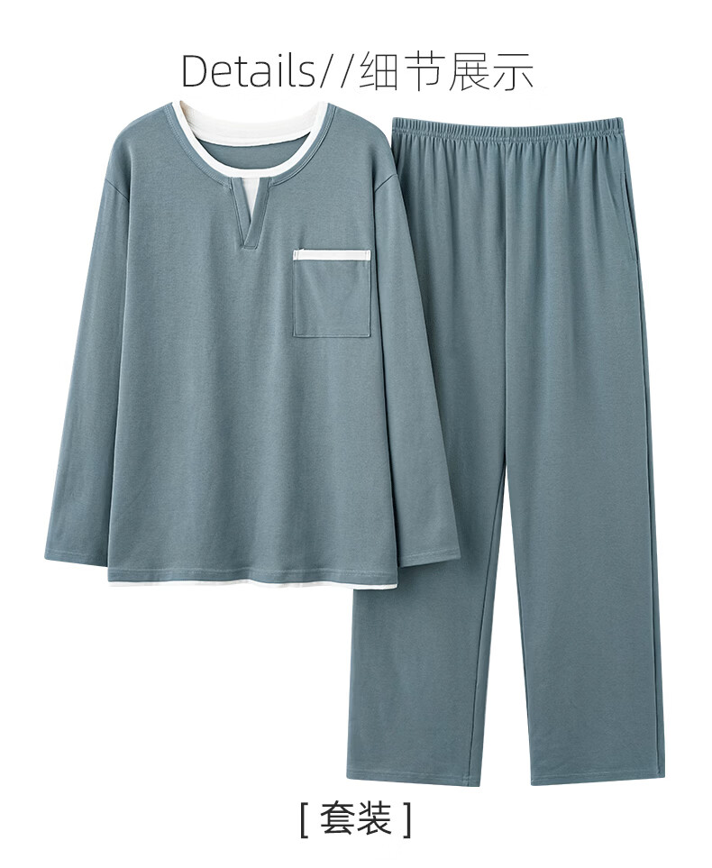 叶盼(yepan)【柔软】莱卡纯棉睡衣男士春秋长袖套头男款大码可外穿家居服套装 8604-青灰 L (170) :建议100-135斤穿着